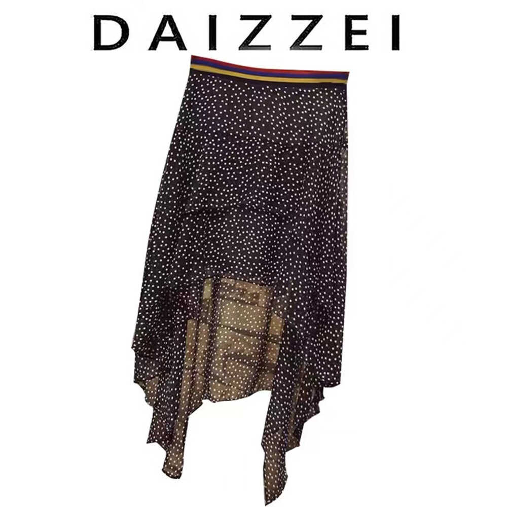 Daizzei~Summer A-Line Design Polka-Dot Chiffon Asymmetrical Elastic Waist Skirt for Women with Short Front and Long Back