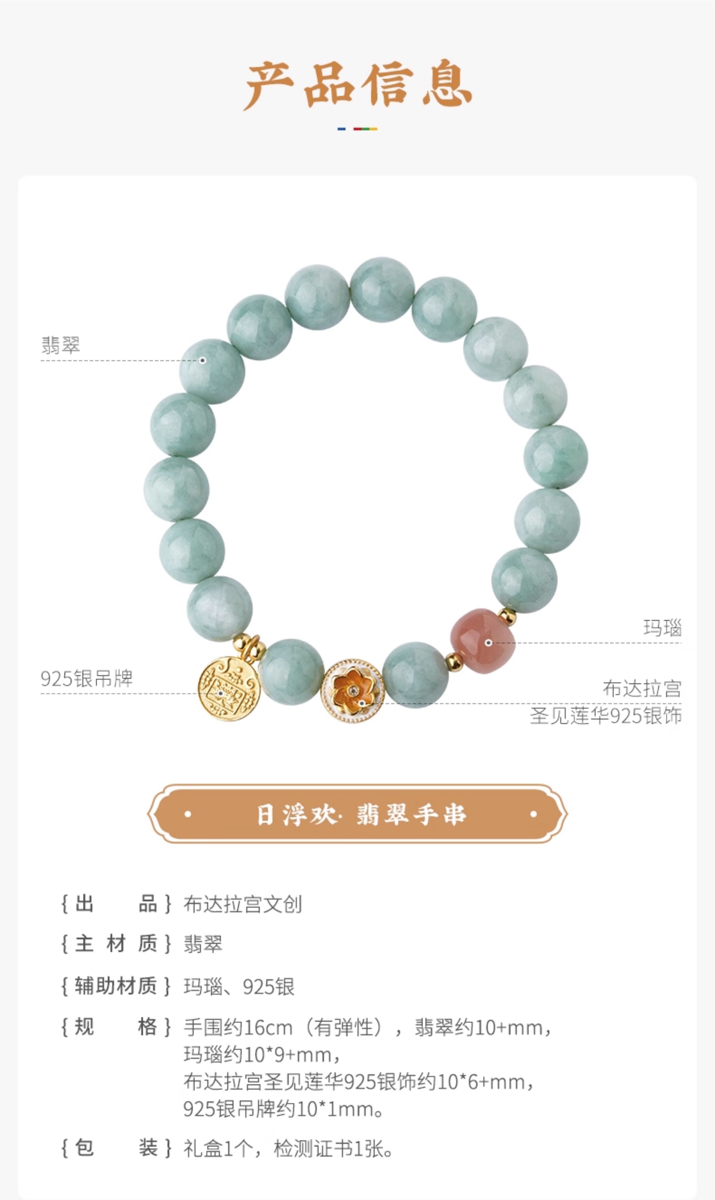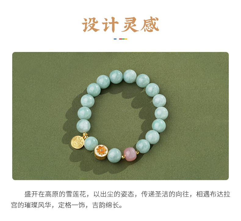 Potala Palace Jade Agate Bracelet for Women, Waxy Jade Round Beads about 10mm, Light Green Beads Bracelet for Women