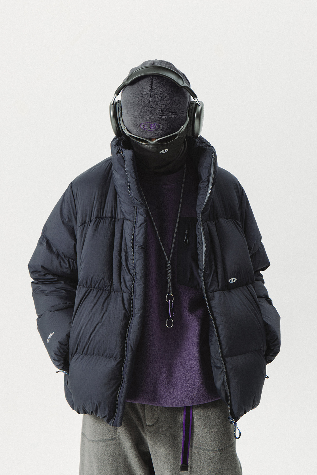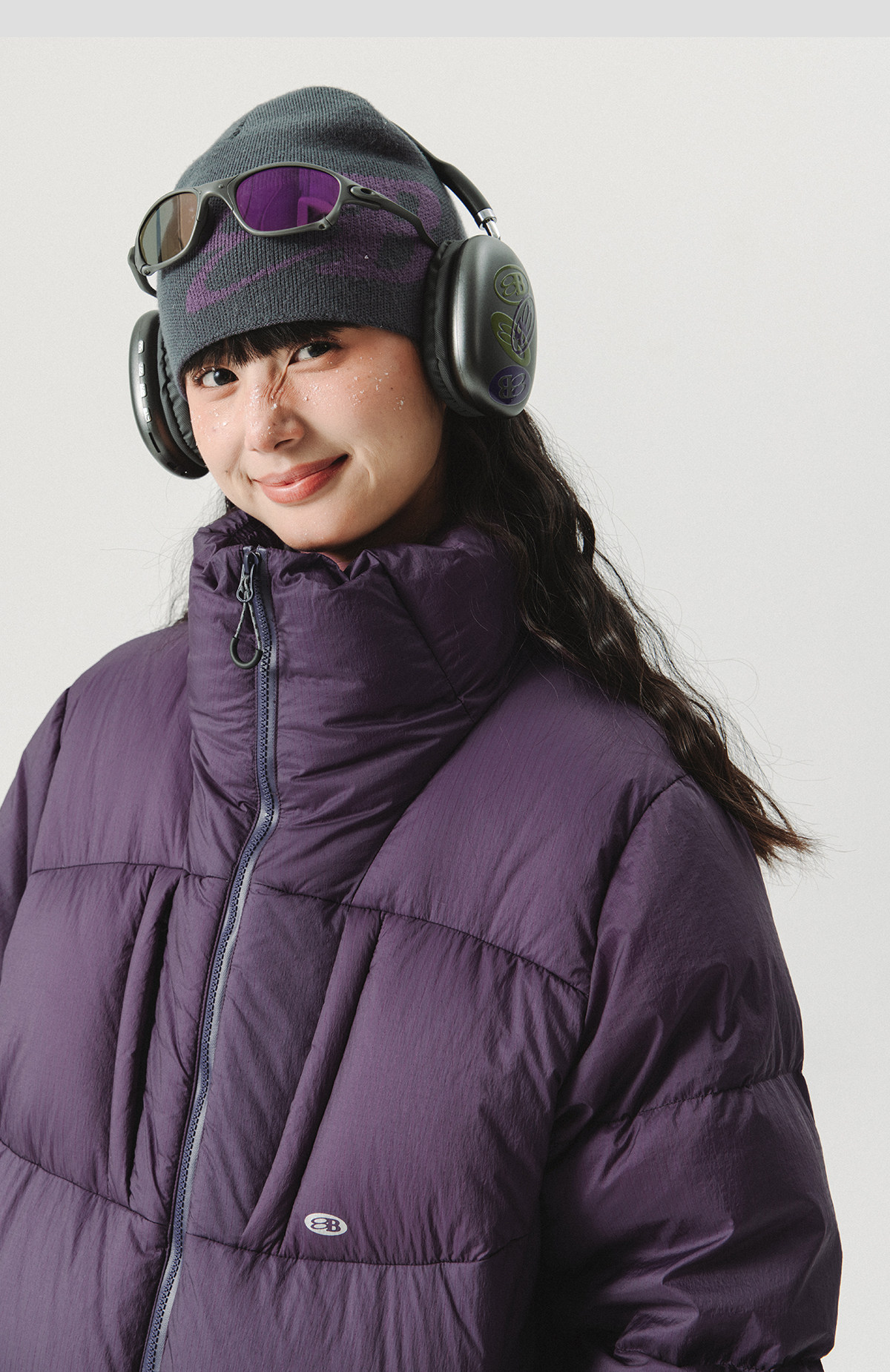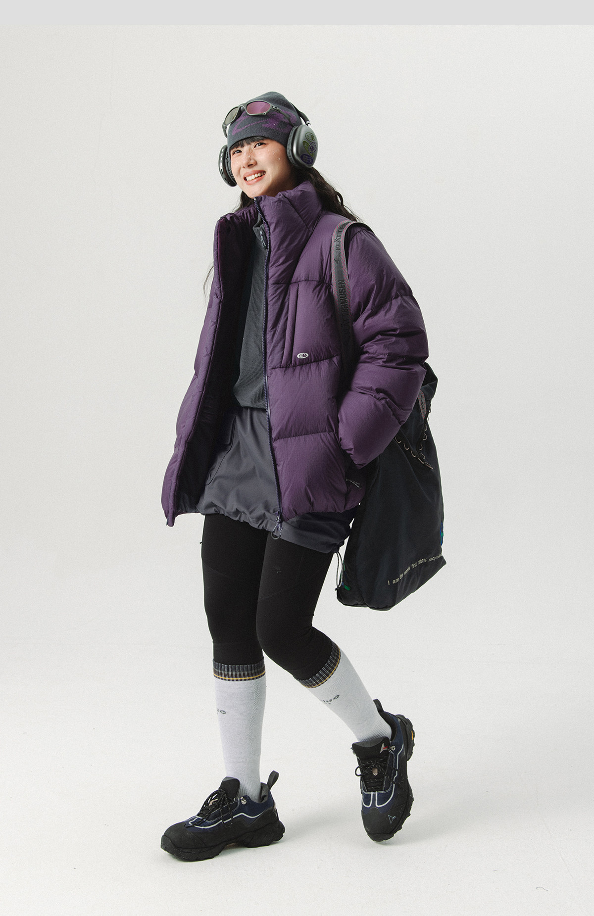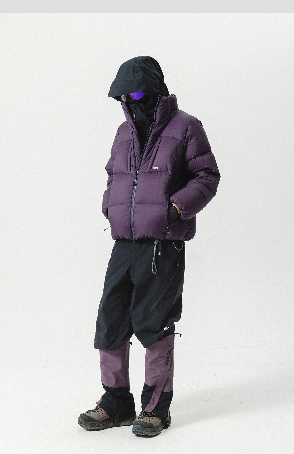 Lanqi Winter Outdoor Four-Pocket 95% White Goose down Purple Puffer Jacket for Women, Three-Proof Loose Stand-Up Collar down Jacket for Men