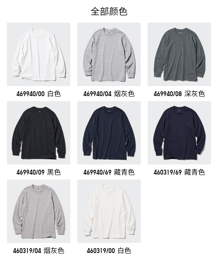 Uniqlo Men's and Women's Soft Round Neck T-Shirt Long sleeves pure color pure cotton Casual Tops Base 469940 460319