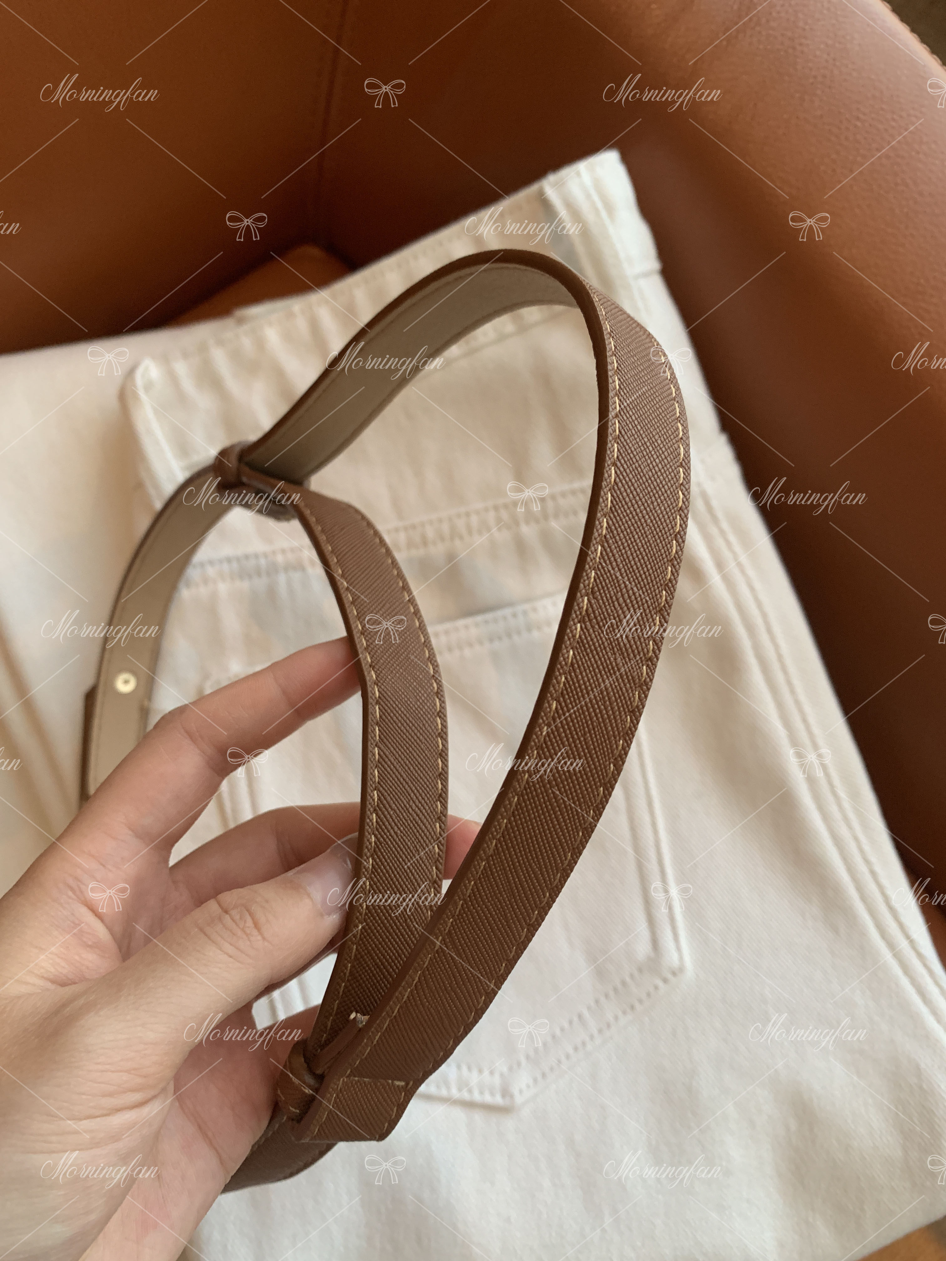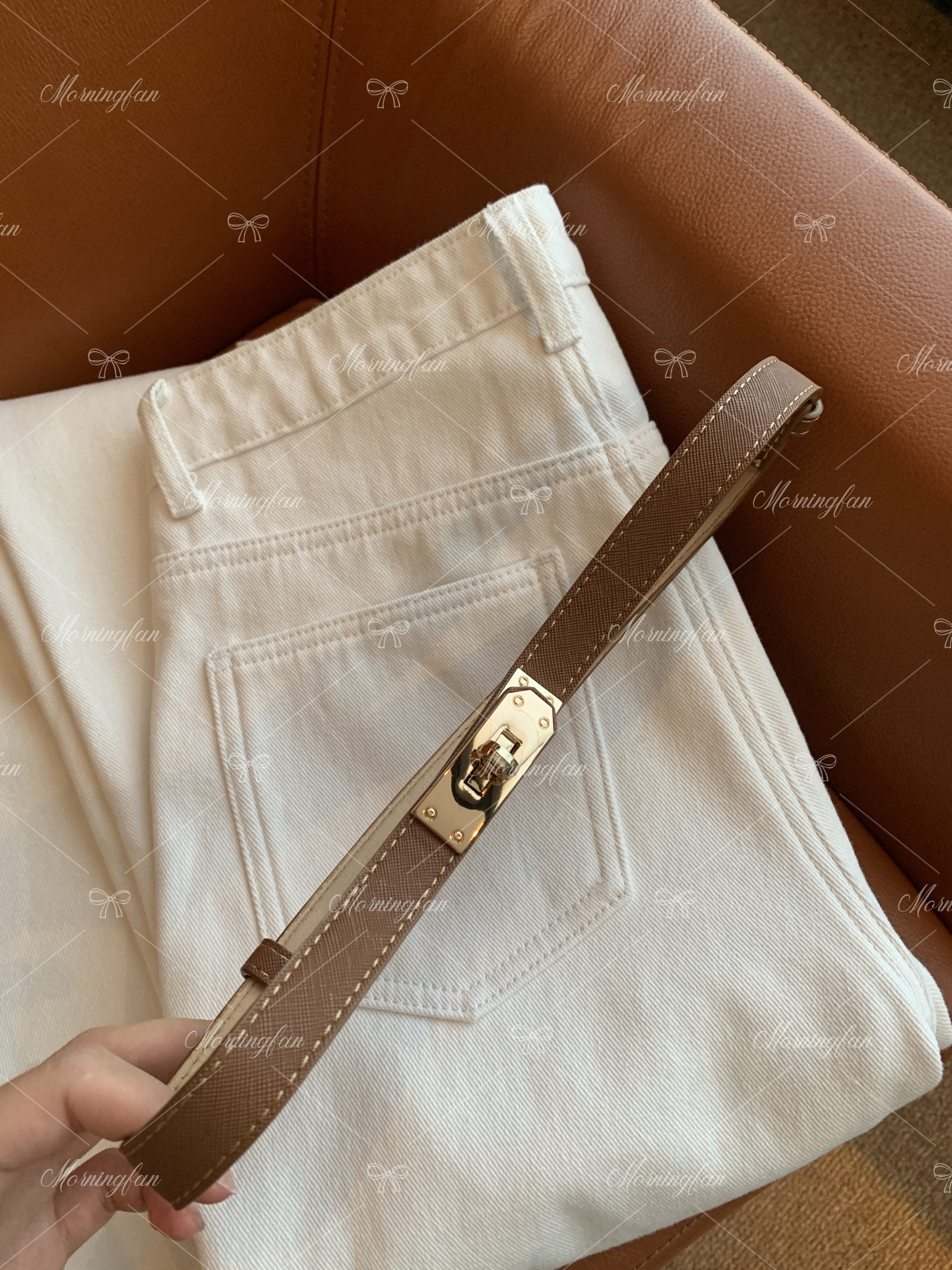 自带咖色皮质腰带腰头锁扣采用了金色的五金配件
