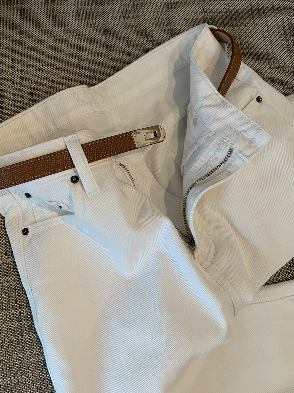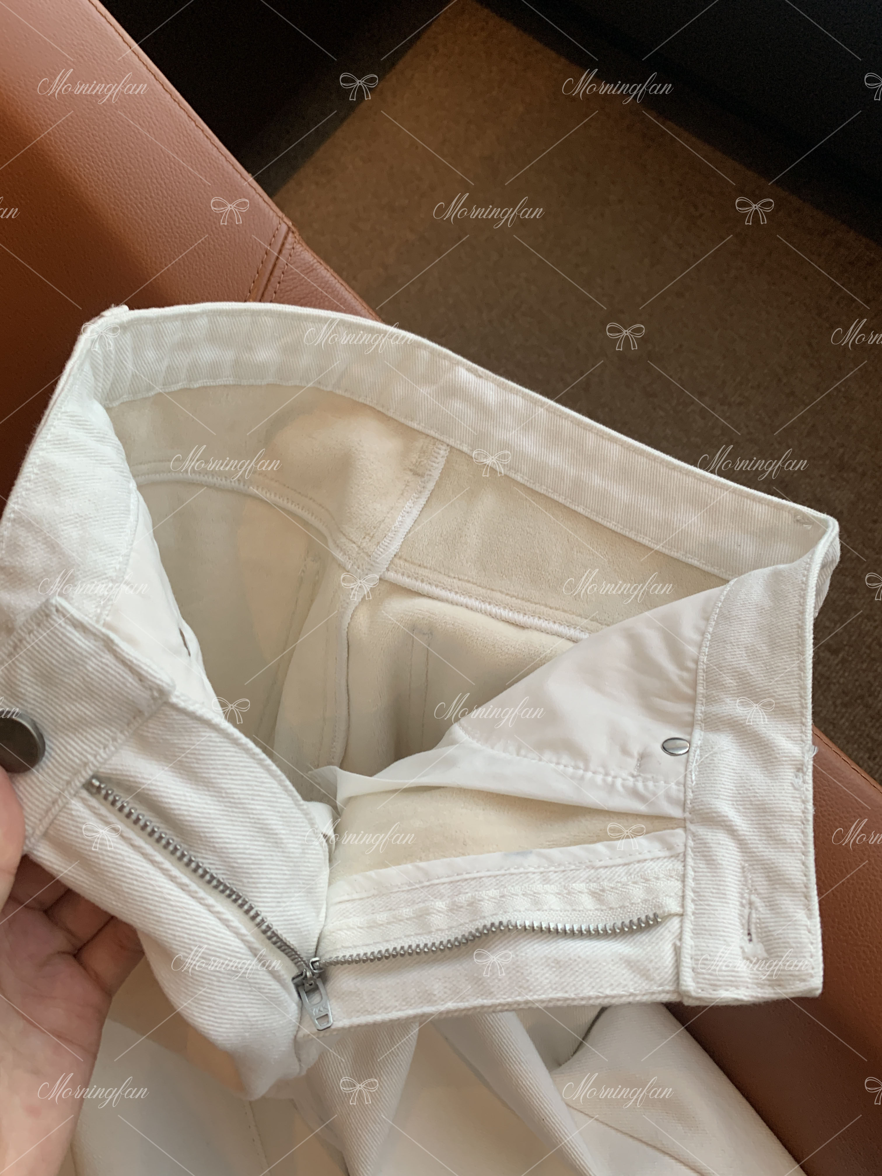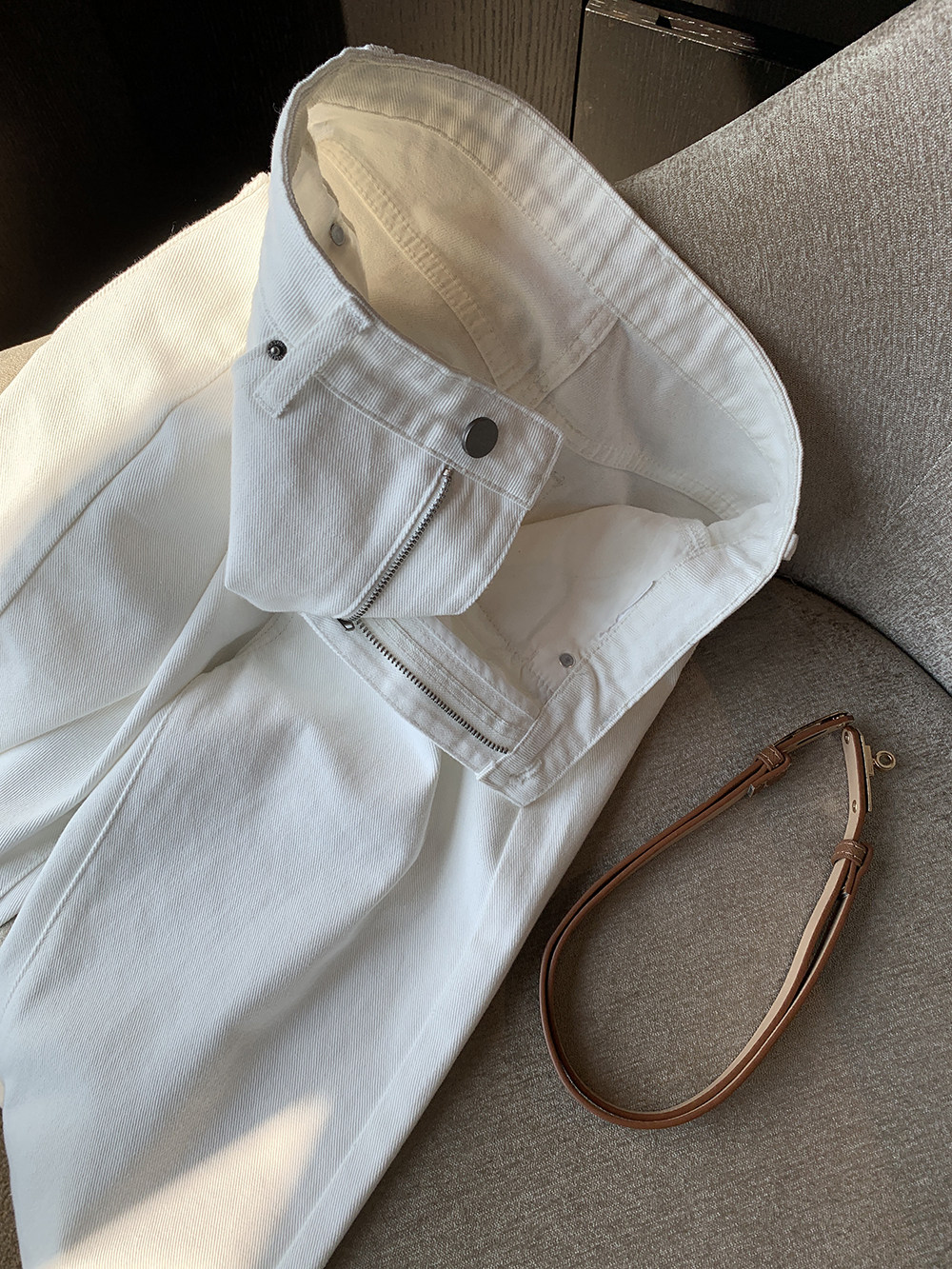 腰头做了扣子和拉链的搭配很服帖不显小肚子