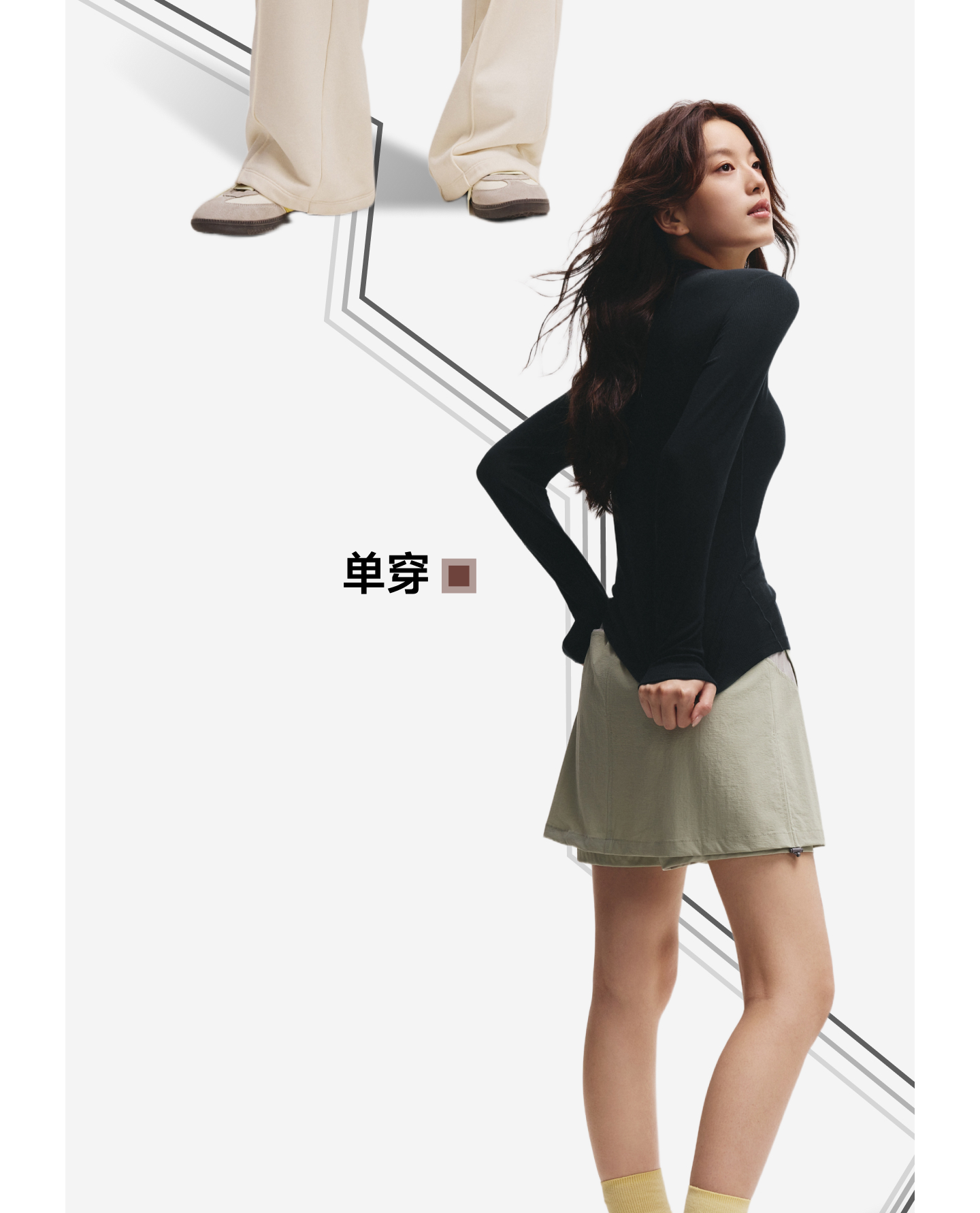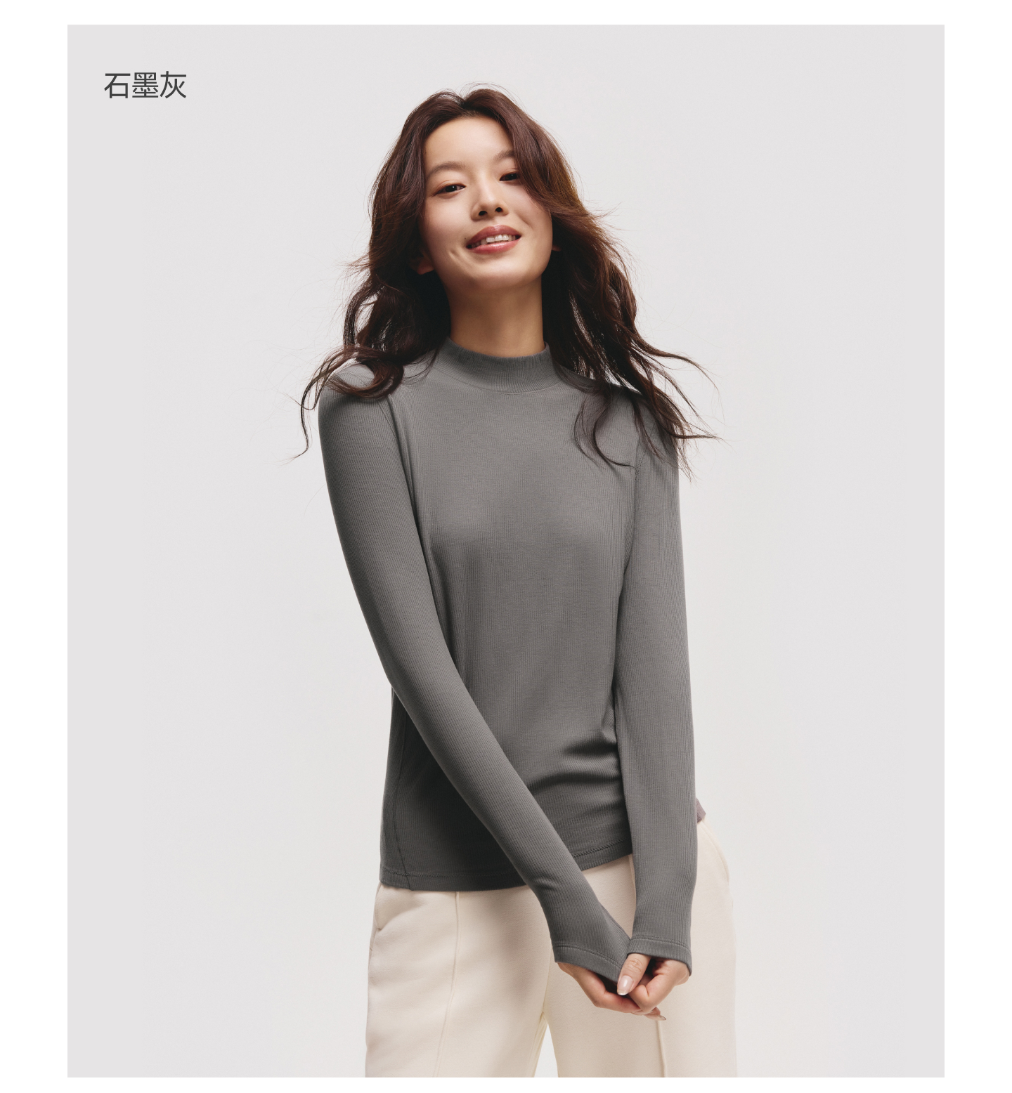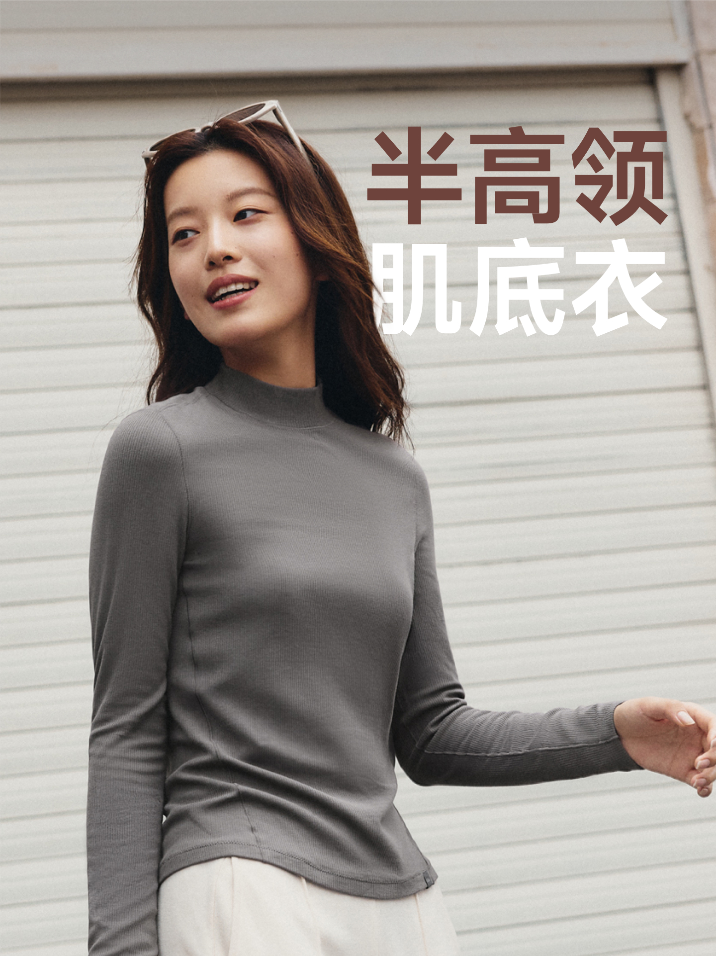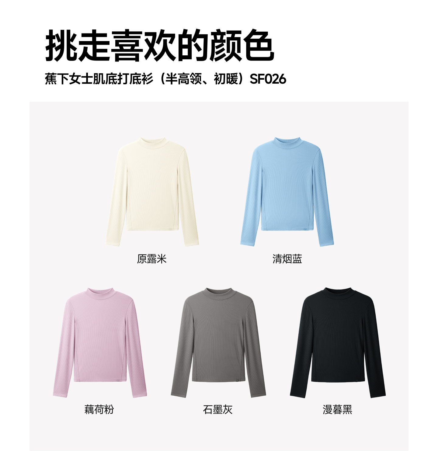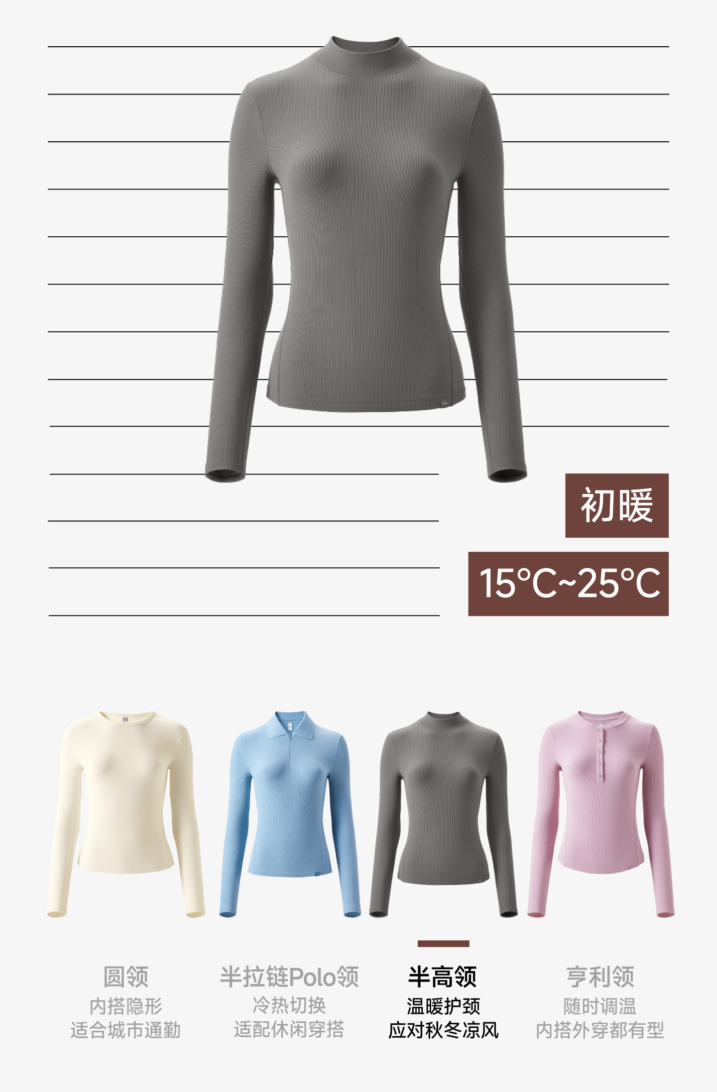 Banana Henry Shirt for Women, Long-Sleeved T-Shirt, V-Neck, Autumn and Winter, Slim Fit, Warm, Low-Neck Base Shirt, Half-Open Collar, White Top