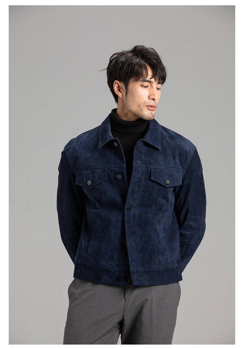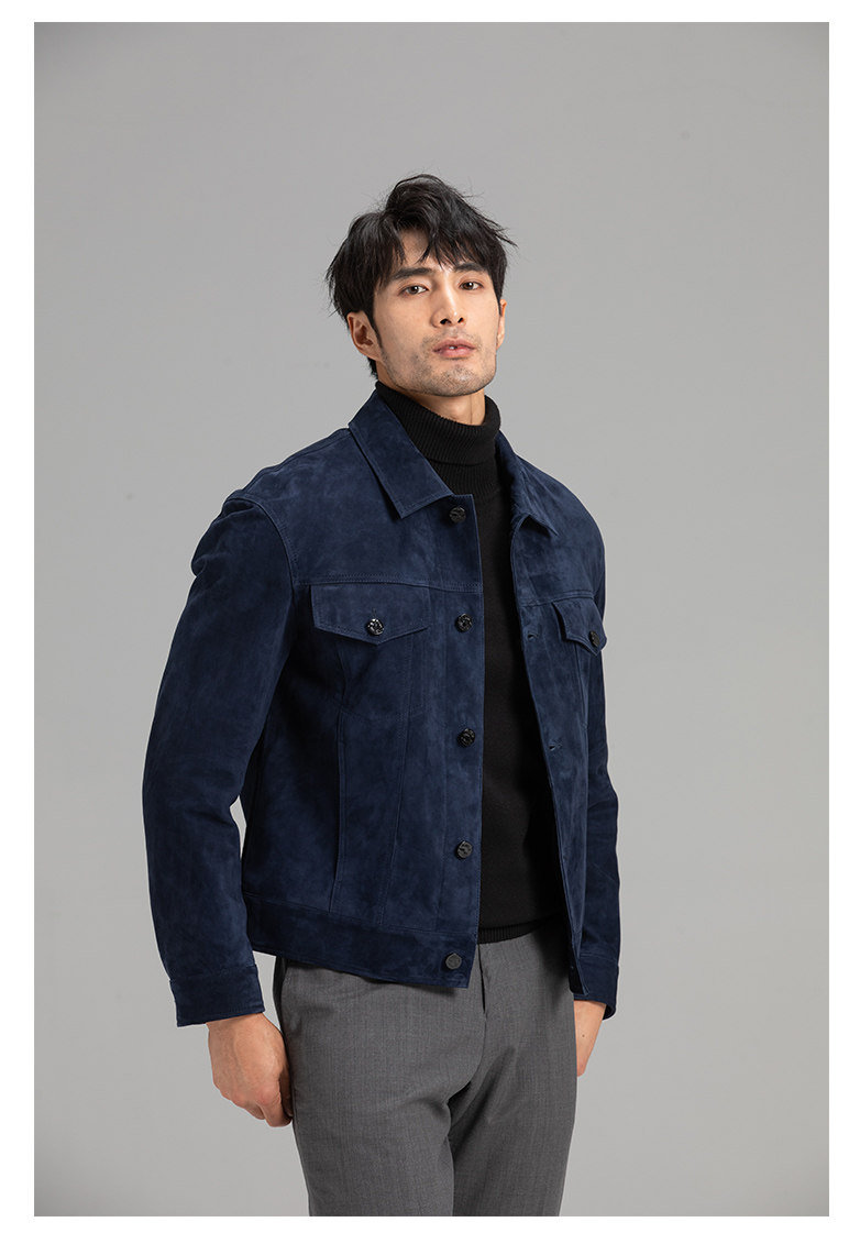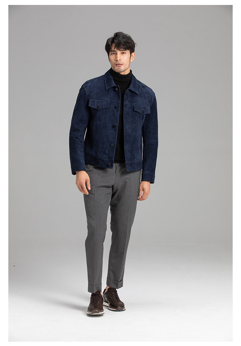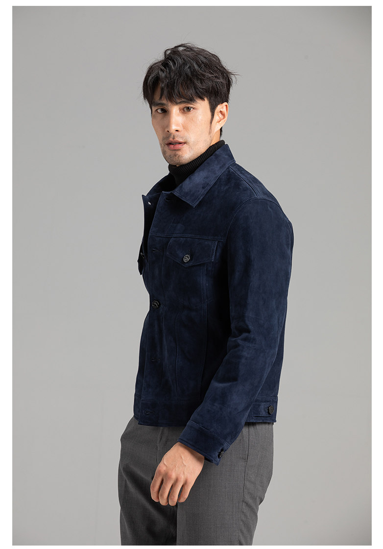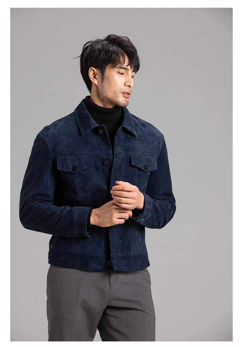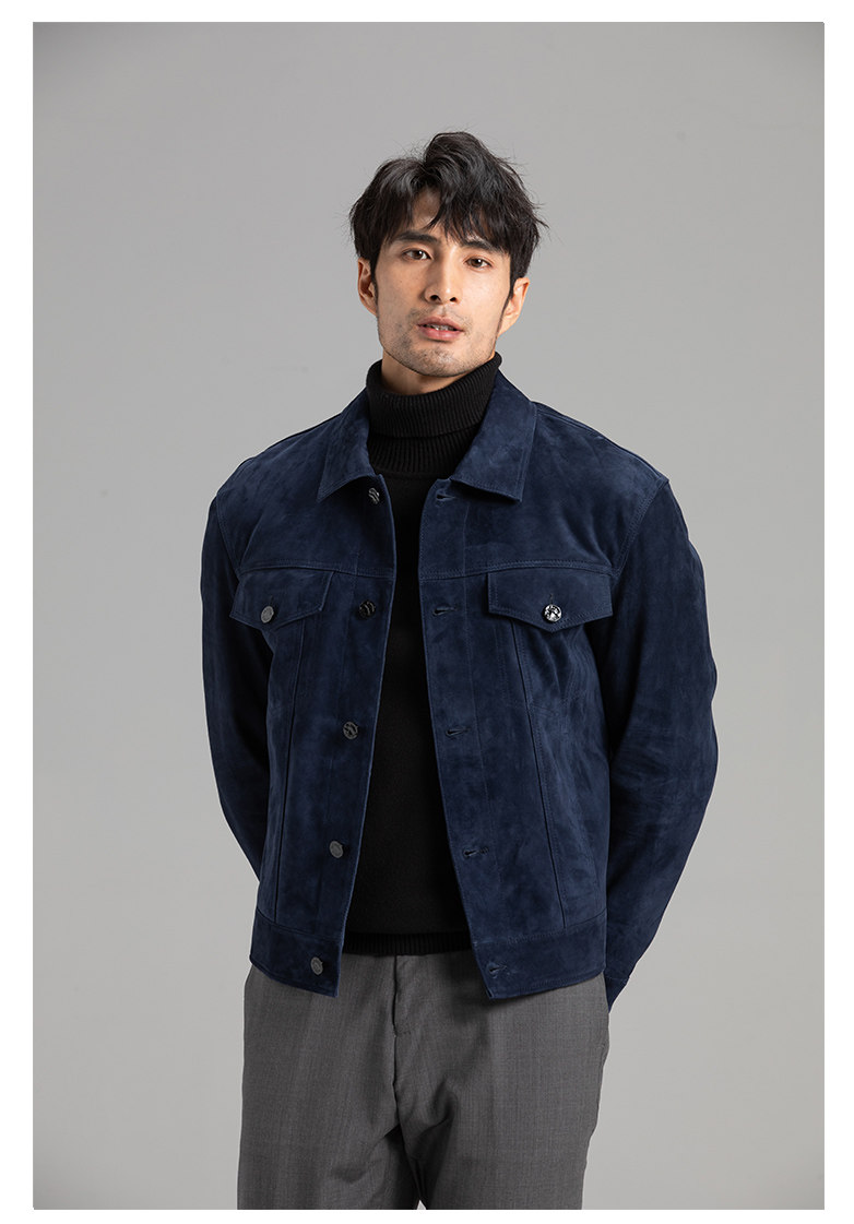 Tf Style Imported Mixed Goat Leather Suede Denim Leather Jacket Genuine Leather Coat Men's Casual Fashion