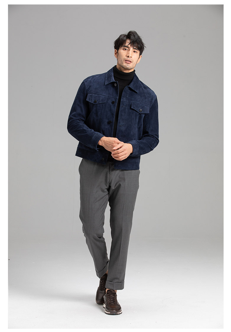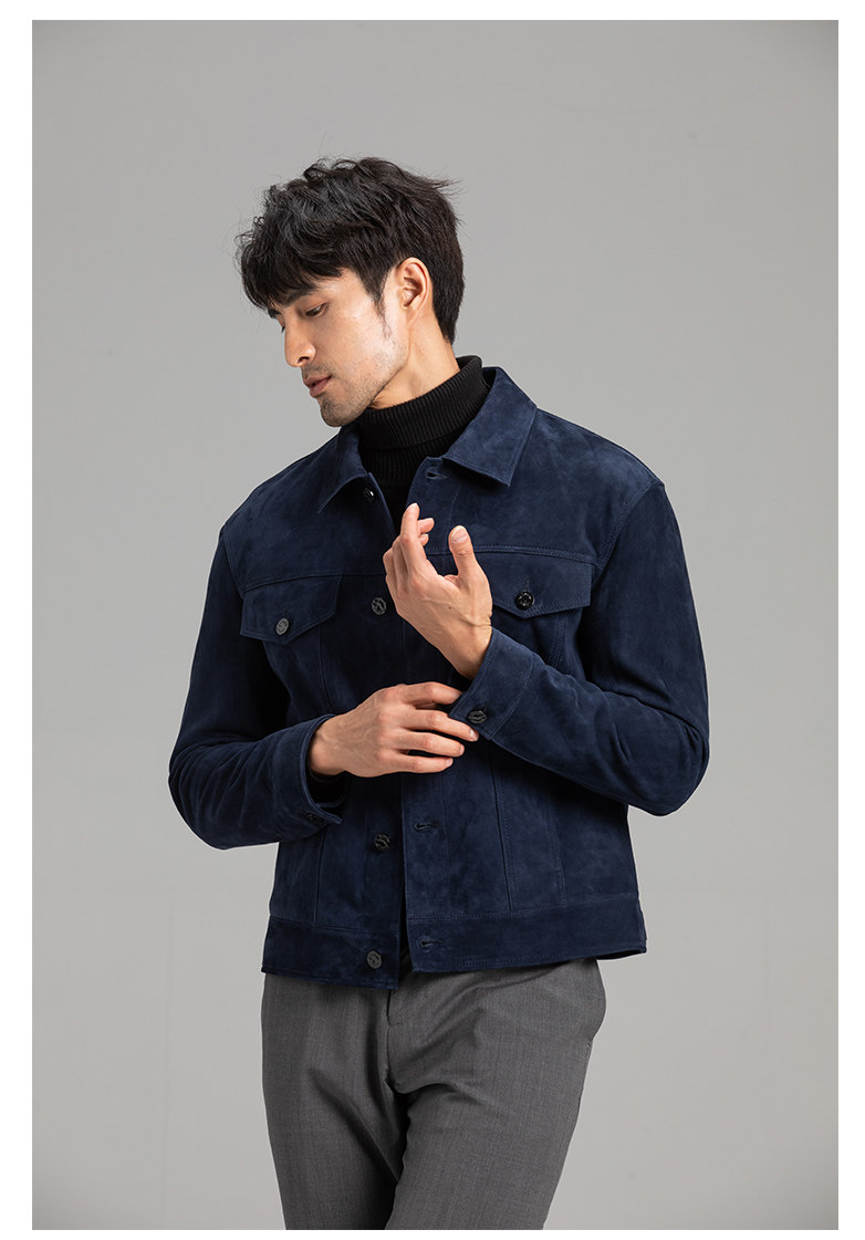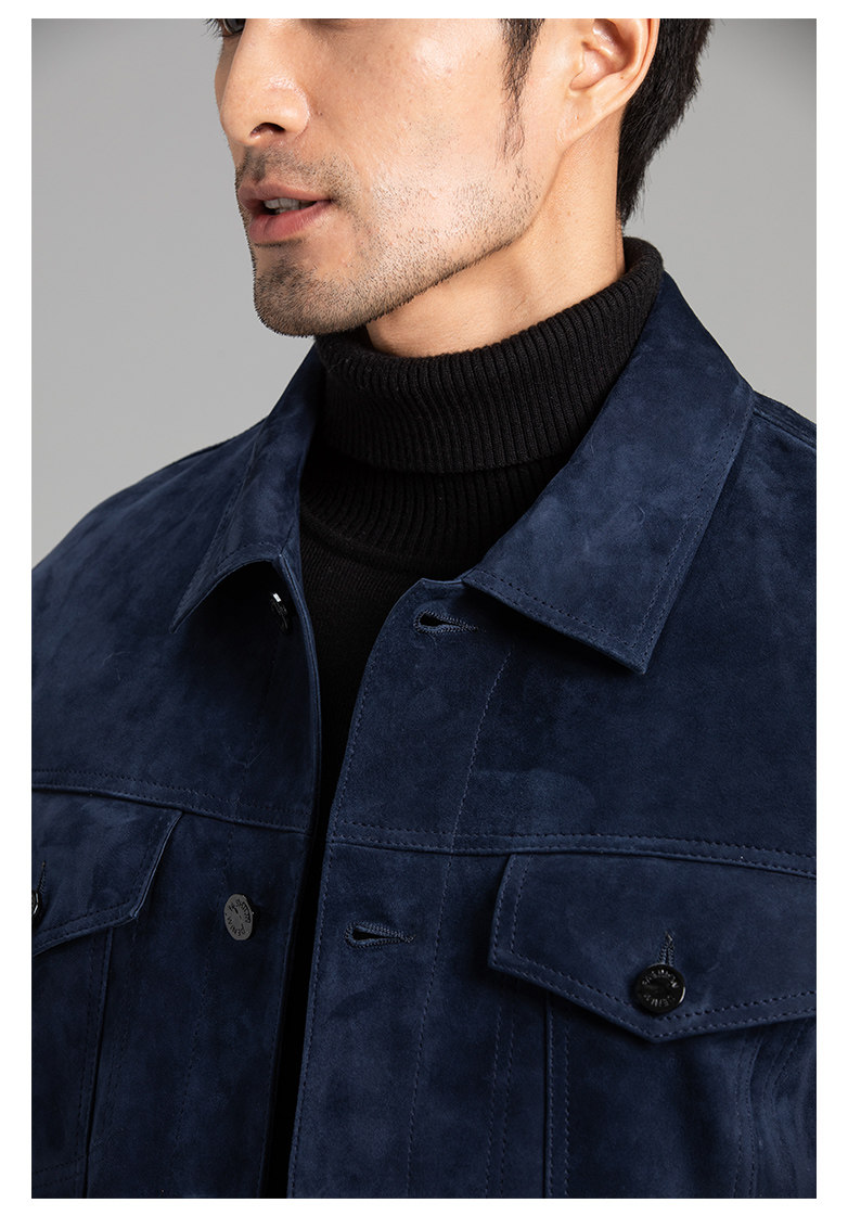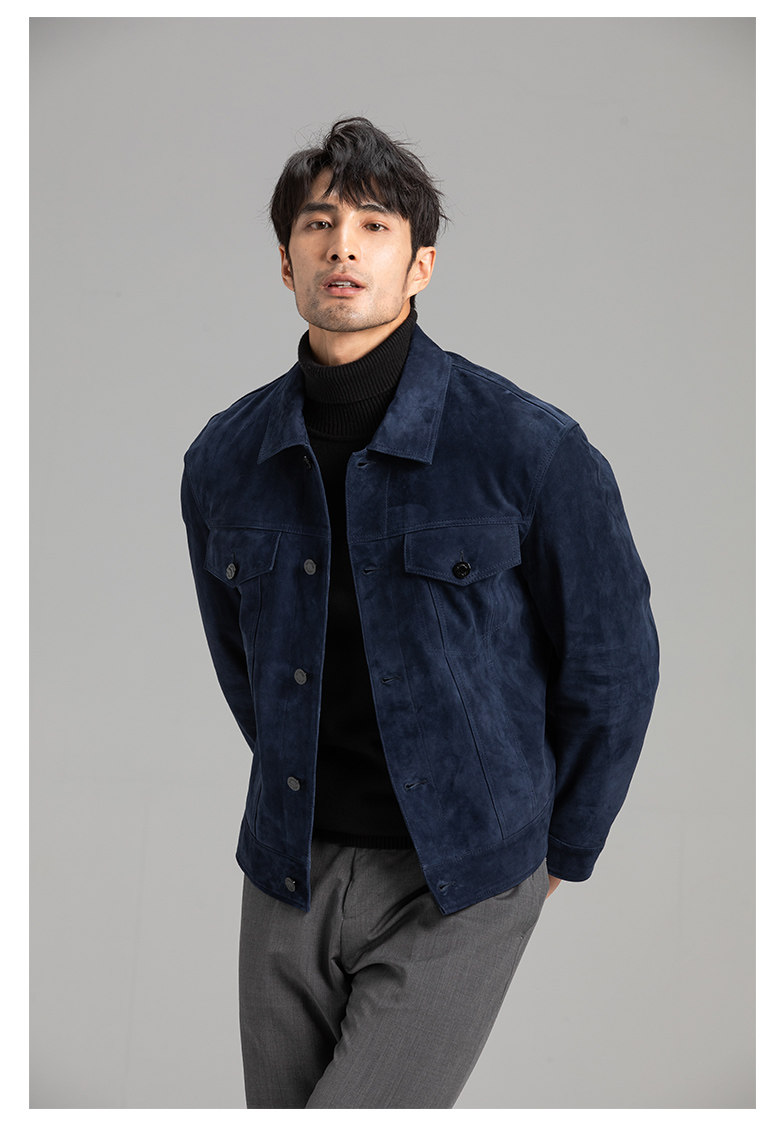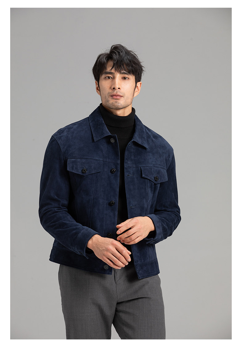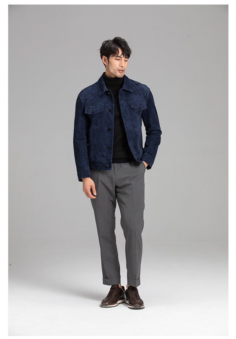 Tf Style Imported Mixed Goat Leather Suede Denim Leather Jacket Genuine Leather Coat Men's Casual Fashion