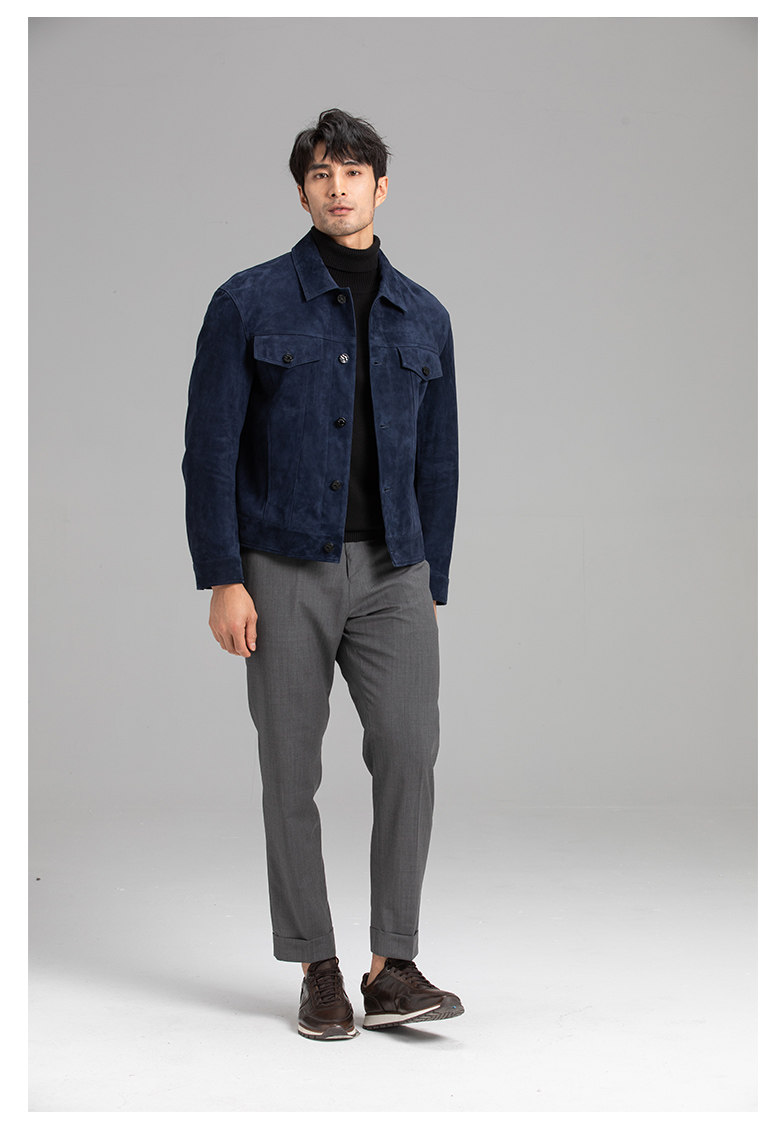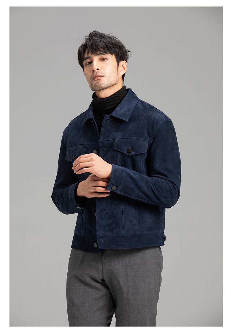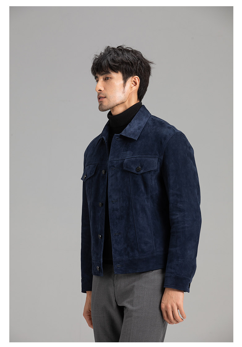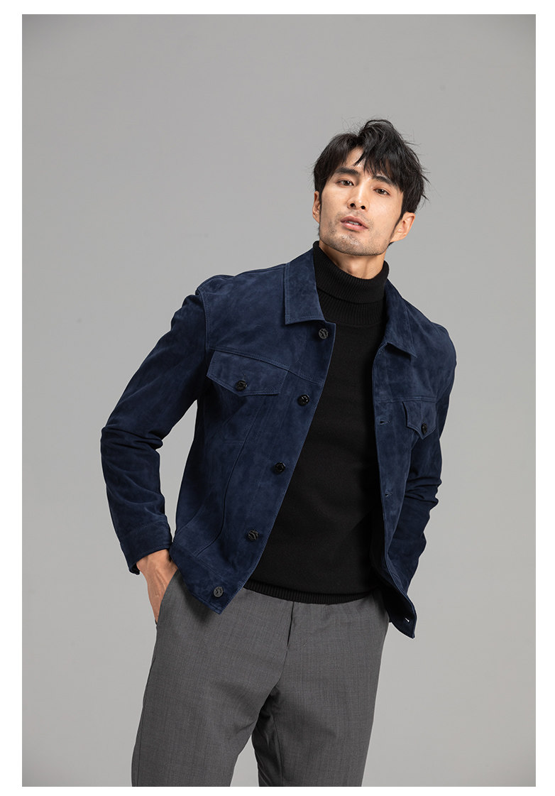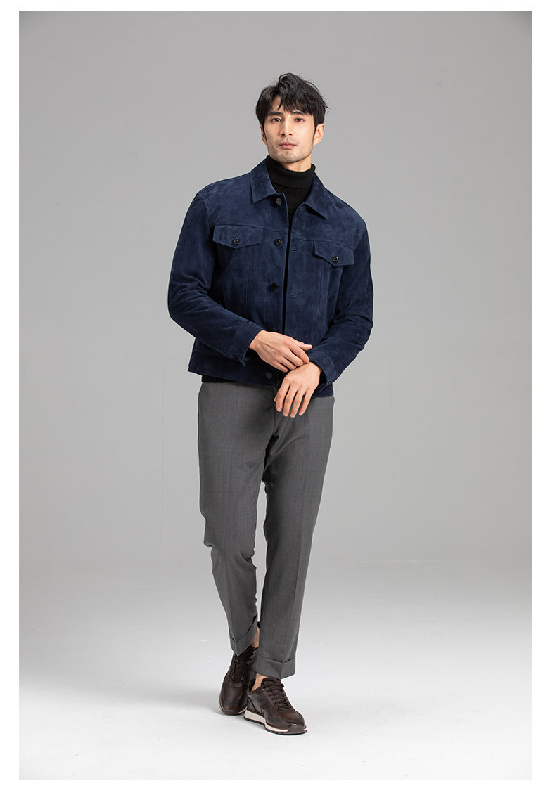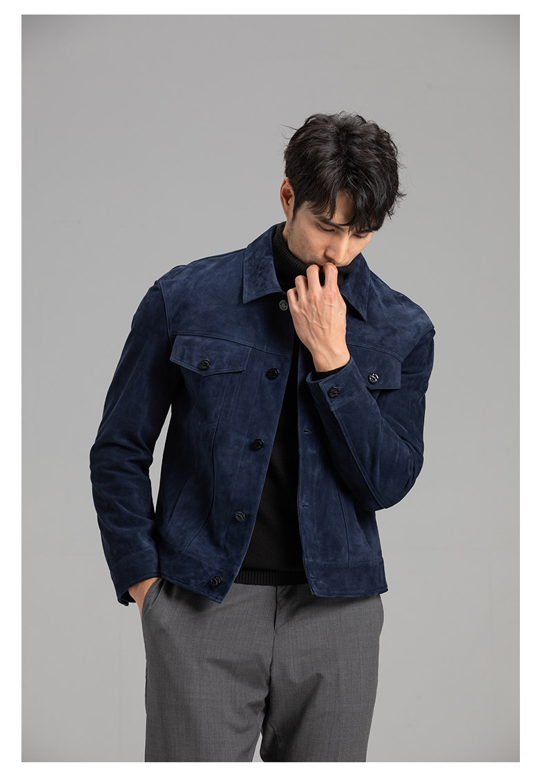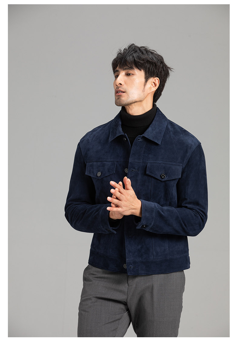 Tf Style Imported Mixed Goat Leather Suede Denim Leather Jacket Genuine Leather Coat Men's Casual Fashion