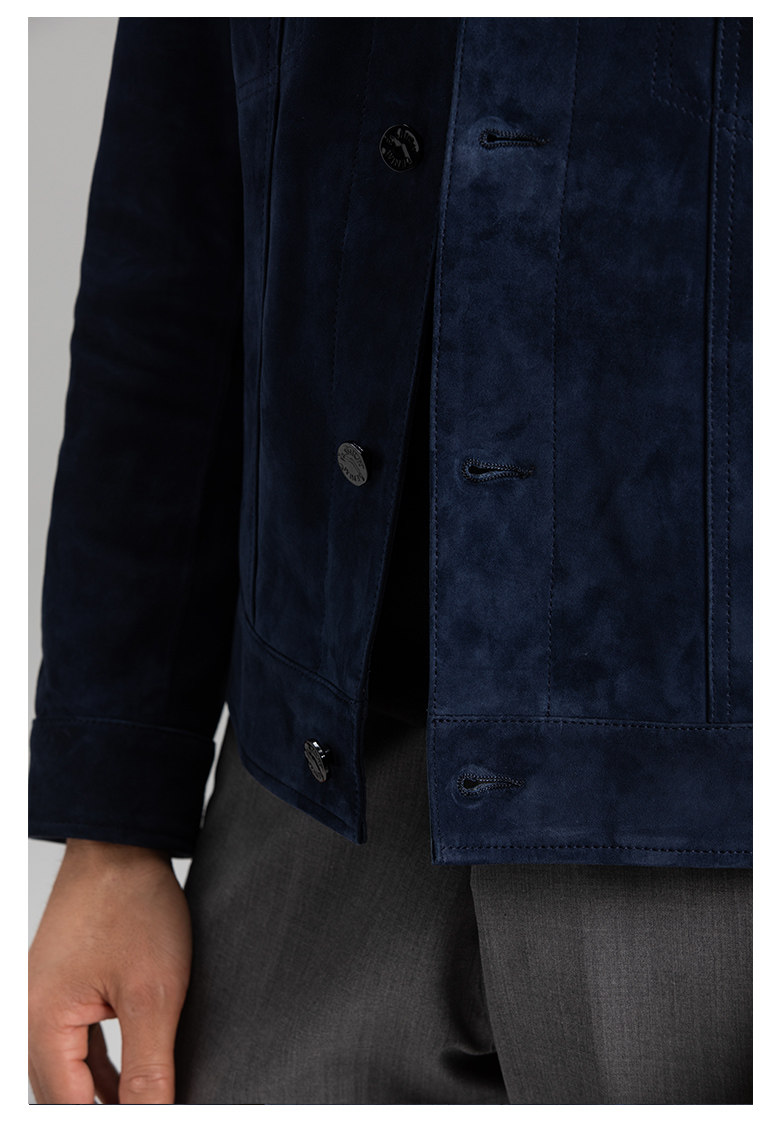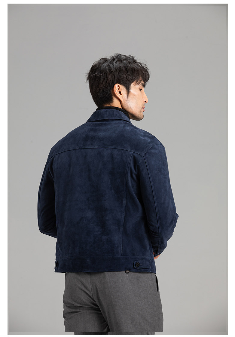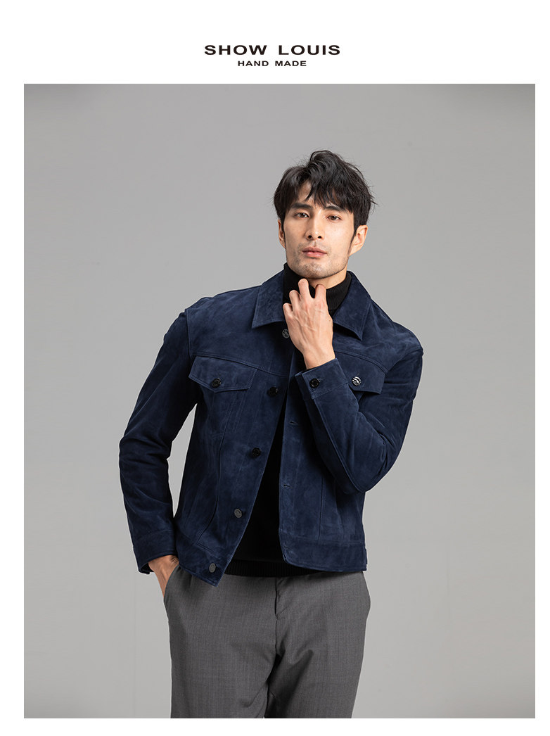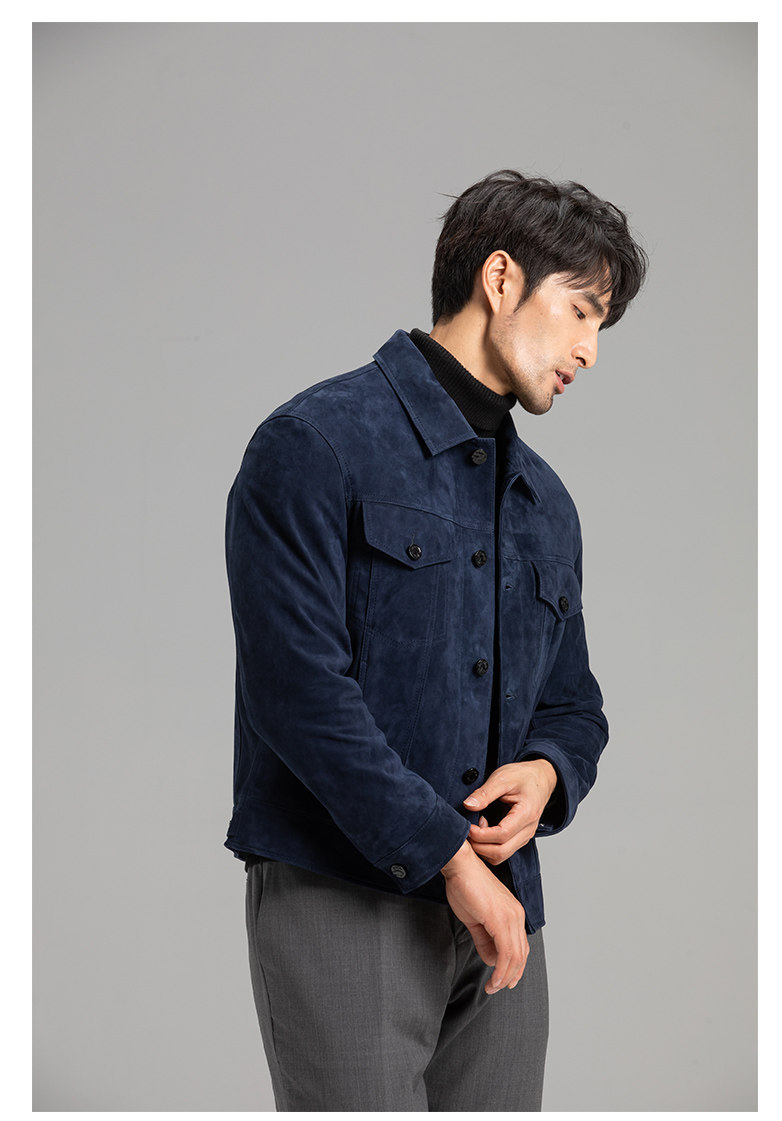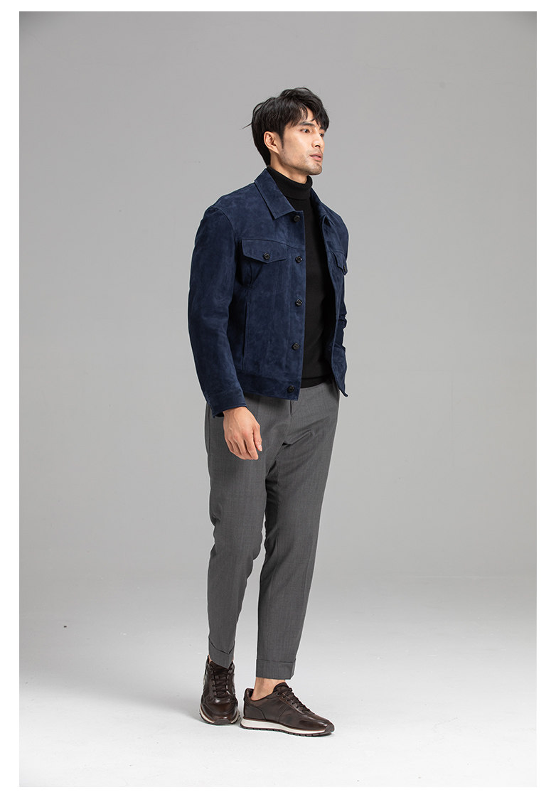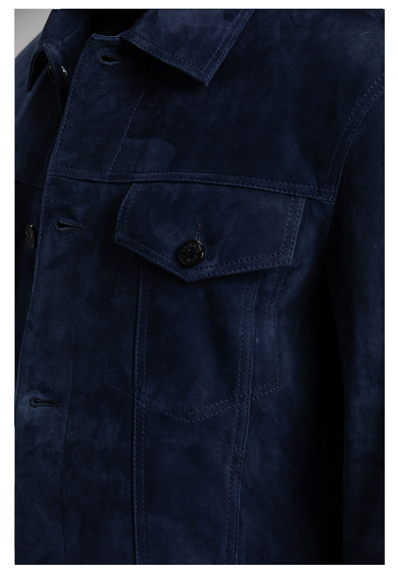 Tf Style Imported Mixed Goat Leather Suede Denim Leather Jacket Genuine Leather Coat Men's Casual Fashion