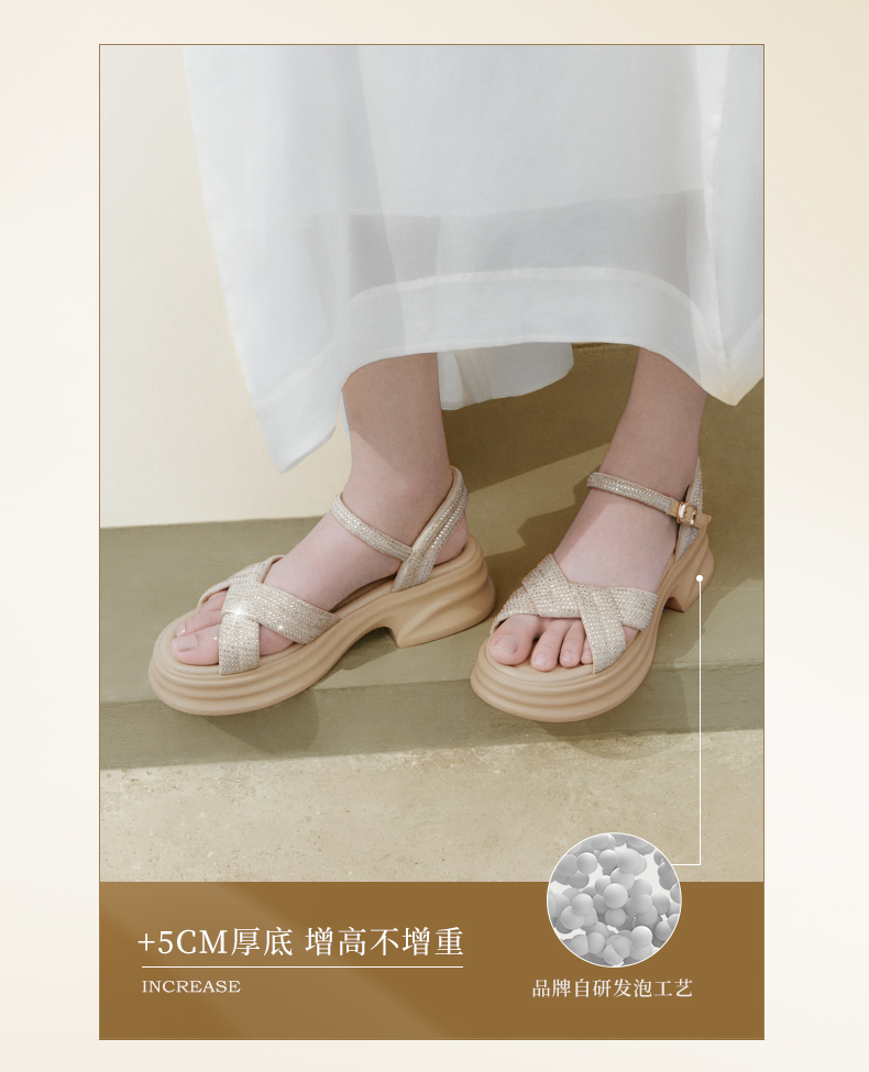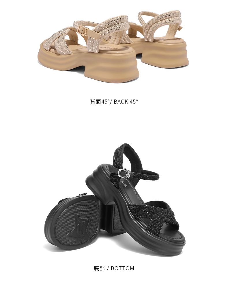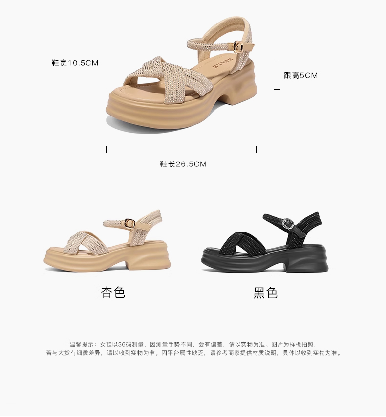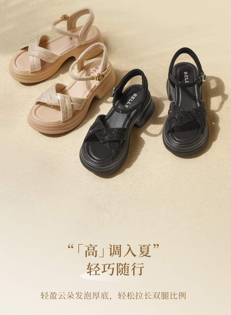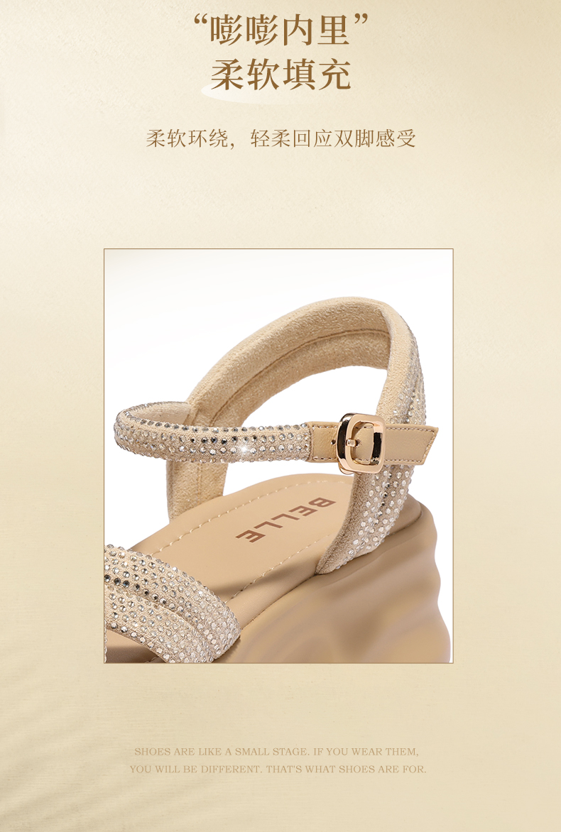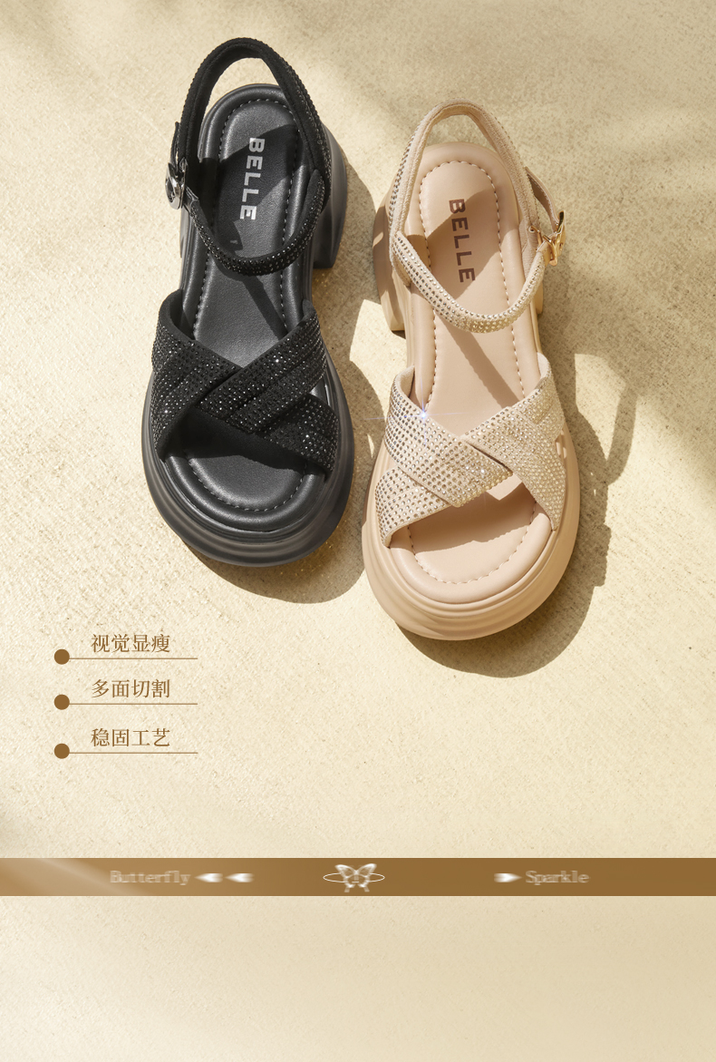 Belle Women's Shoes Thick-Soled High-Heeled Sports Sandals Women's New Starry Summer Casual Sandals A9S2Dbl4