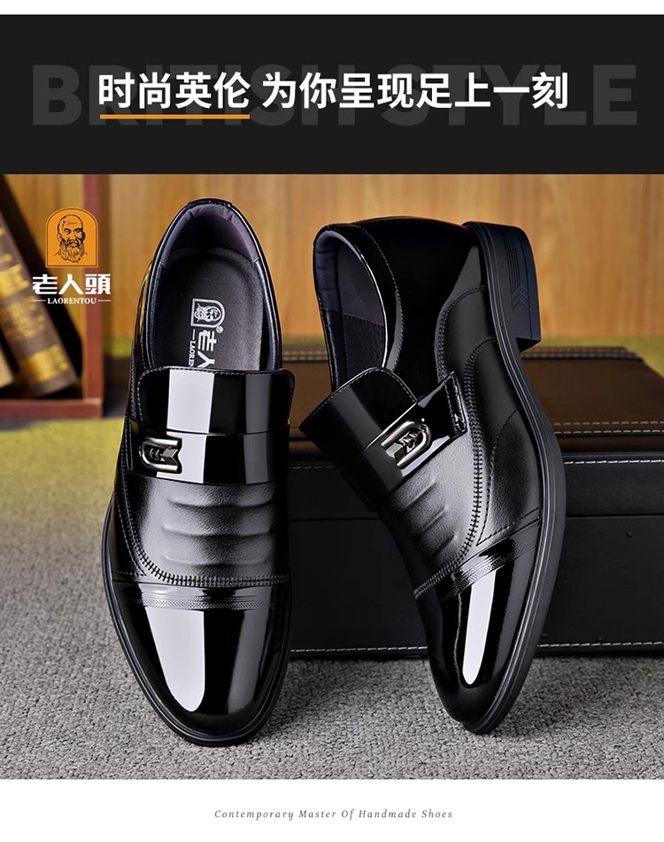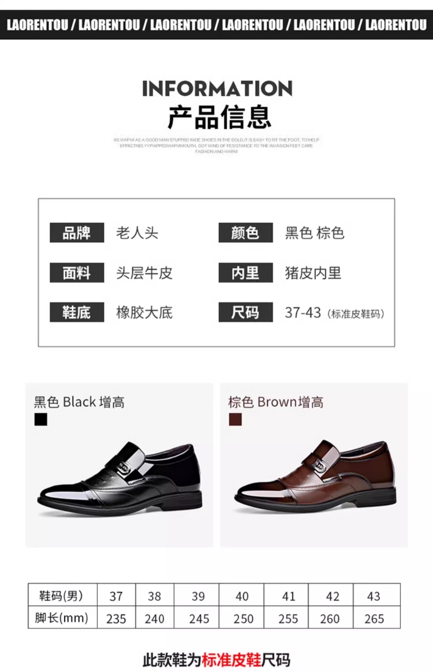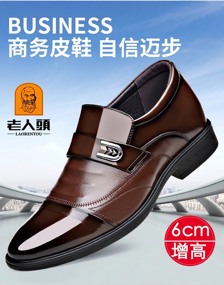 Old Man's Head Men's Shoes 2025 New High-End Genuine Leather Business Formal Wear Men's Leather Shoes with Increased Height for Middle-Aged and Elderly Dads
