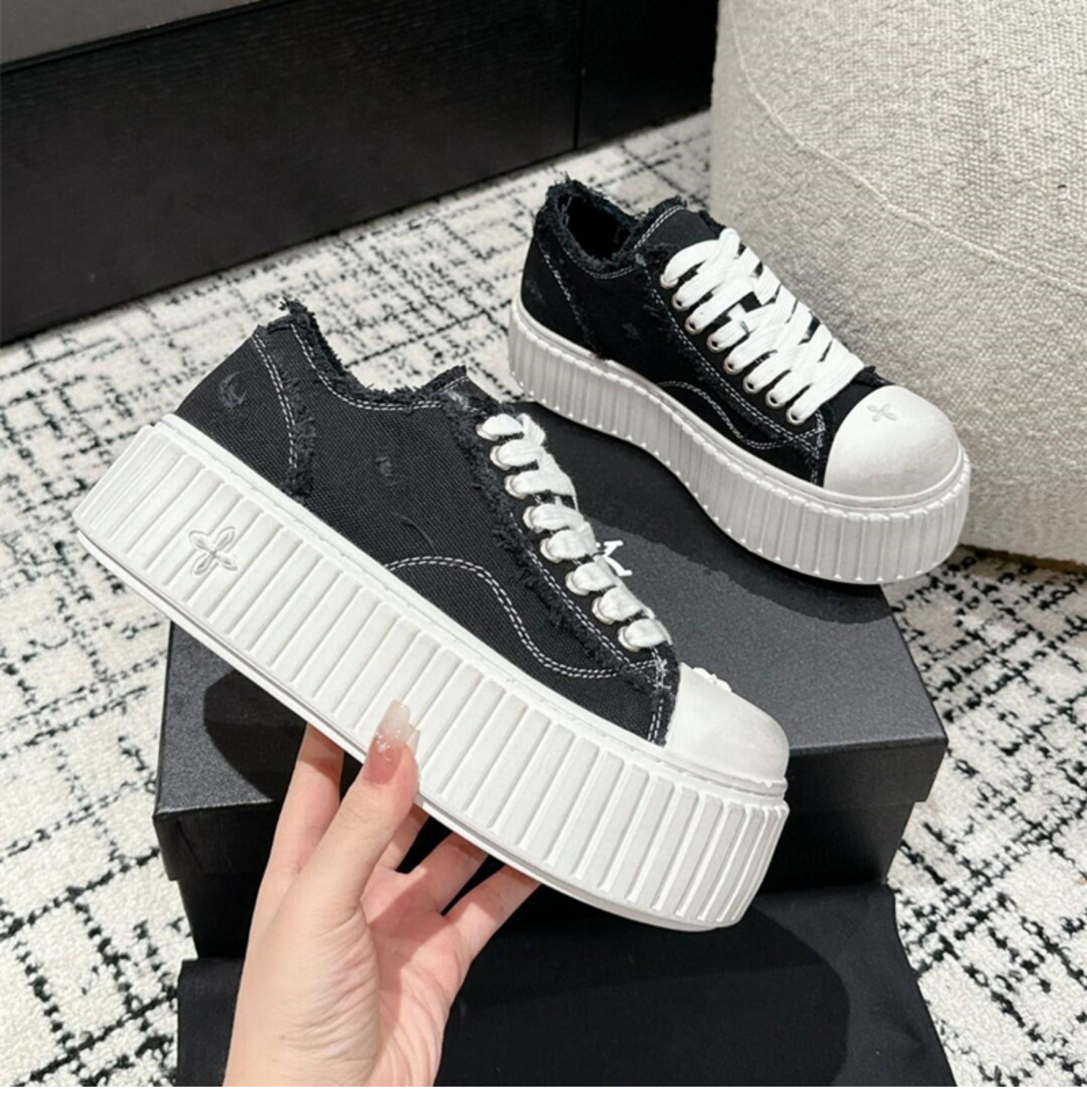 Cross-Pattern Distressed Dirty Shoes for Women, 2025 Spring New Low-Top Thick-Soled Height-Increasing Canvas Shoes, Retro Lace-Up Skateboard Shoes