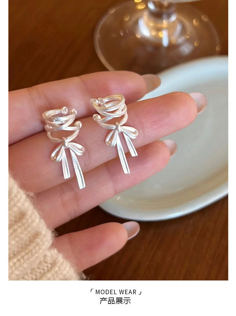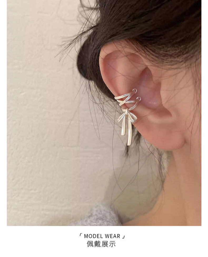Ballet-Style Bow Ear Clips, Ear Cuffs for Non-Pierced Ears, New High-End Earrings for Women, Light Luxury Niche Ear Accessories