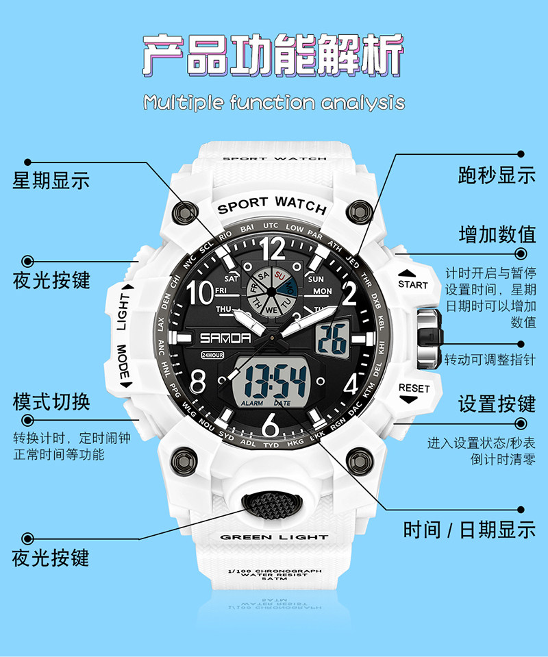 Luminous Anti-Fall Children's Watch for Boys, Middle School Students, Trendy Multi-Functional Youth Boys' Waterproof Watch for Elementary School Students and Girls