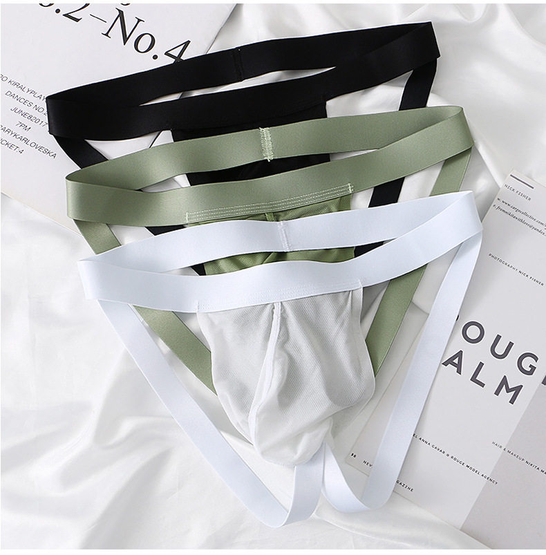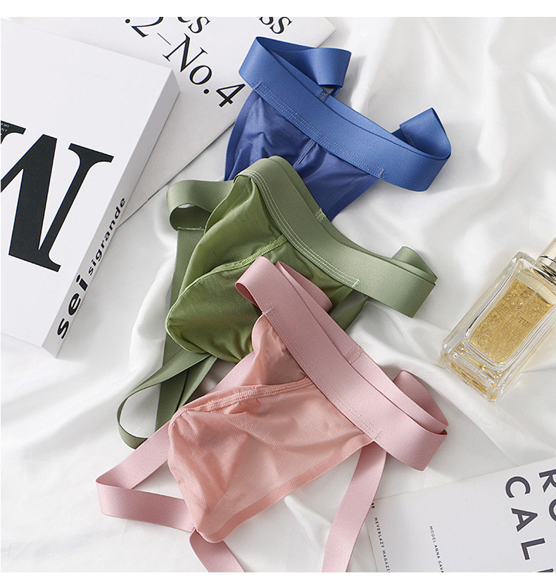 Men's Large Pouch Double Thong Underwear, Ice Silk Mesh, Sexy Transparent Thong, T-Back, U-Convex, Revealing Buttocks, Backless Shorts