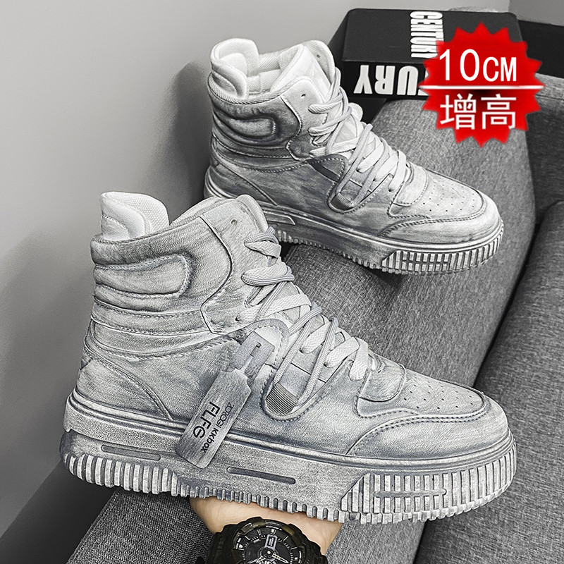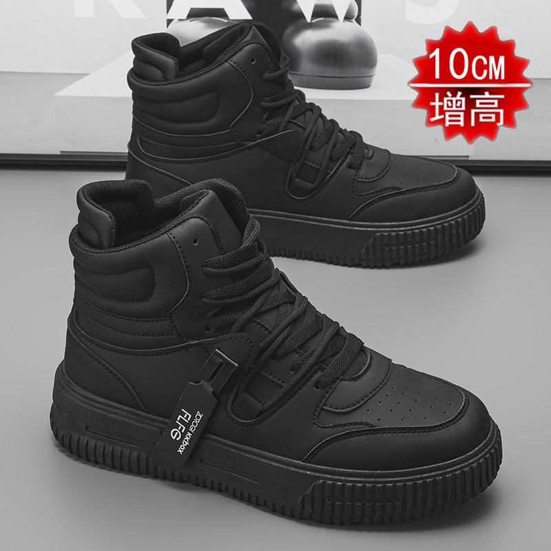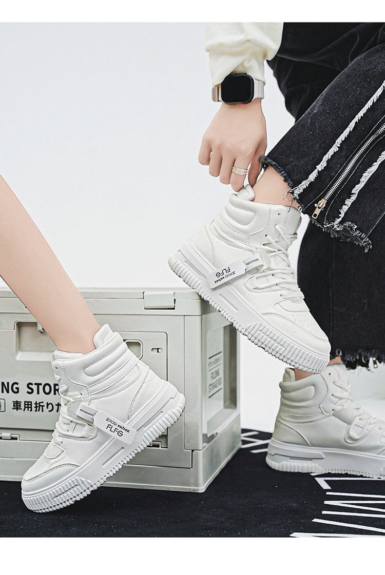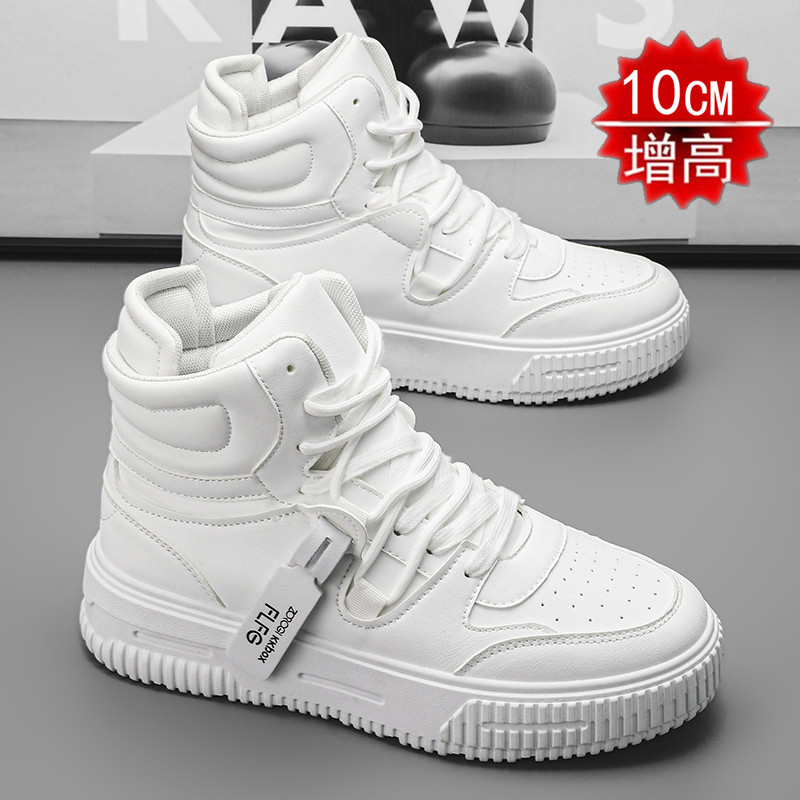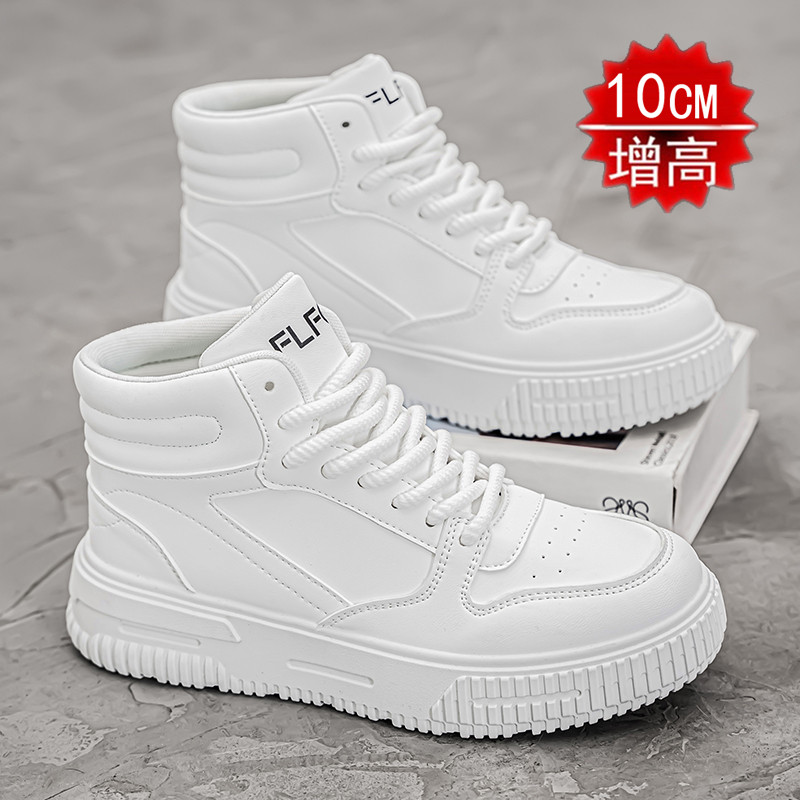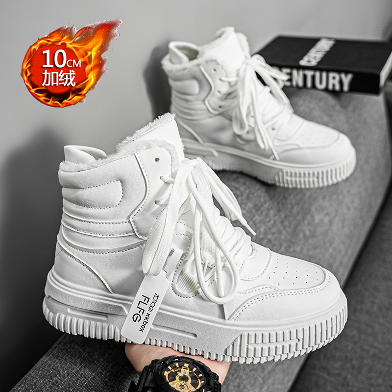 Autumn and Winter Large Size High-Top Sneakers for Men, 10cm Thick Sole, Height-Increasing, Versatile Couple's White Shoes, Breathable Casual Shoes, Cotton Shoes