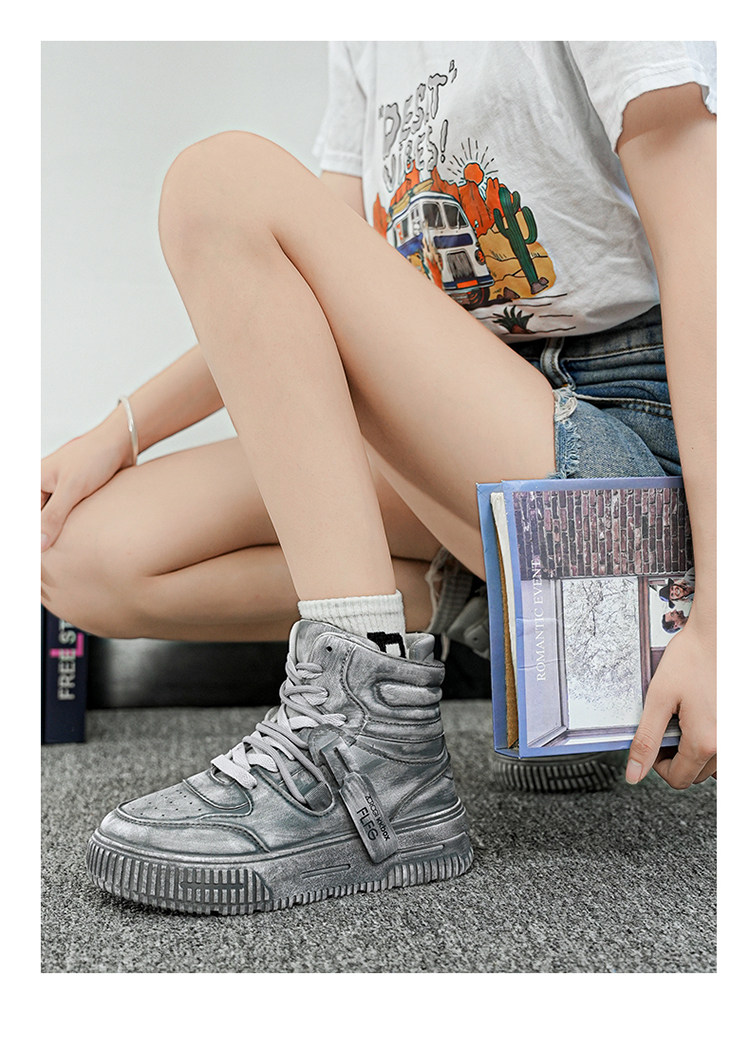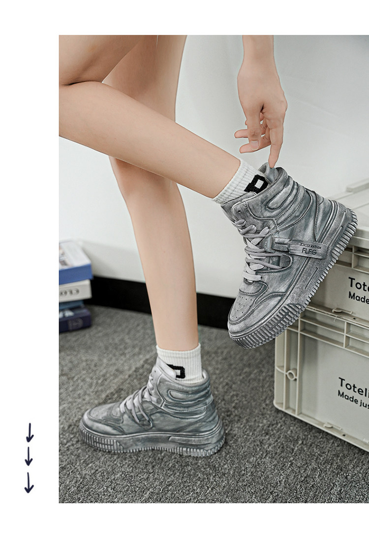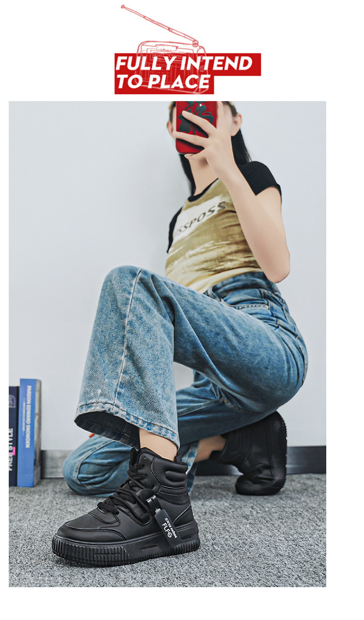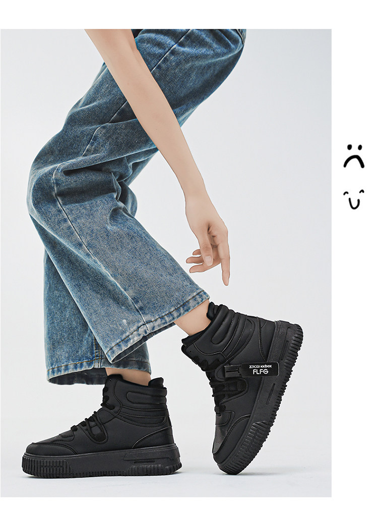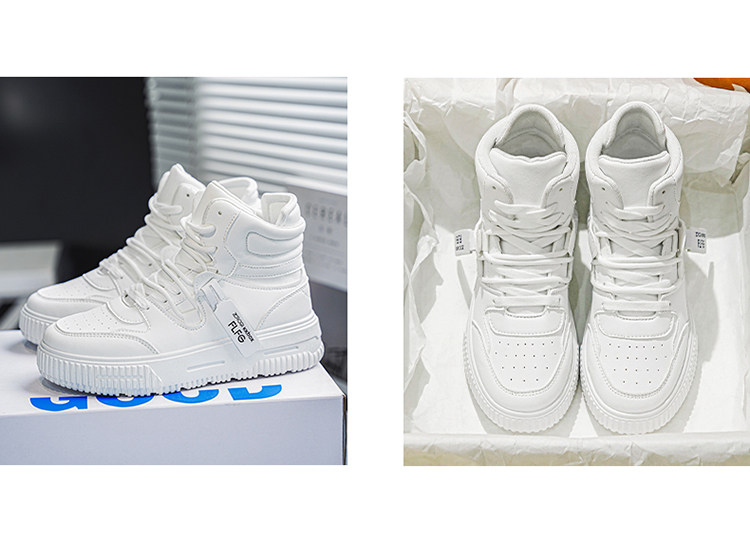 Autumn and Winter Large Size High-Top Sneakers for Men, 10cm Thick Sole, Height-Increasing, Versatile Couple's White Shoes, Breathable Casual Shoes, Cotton Shoes