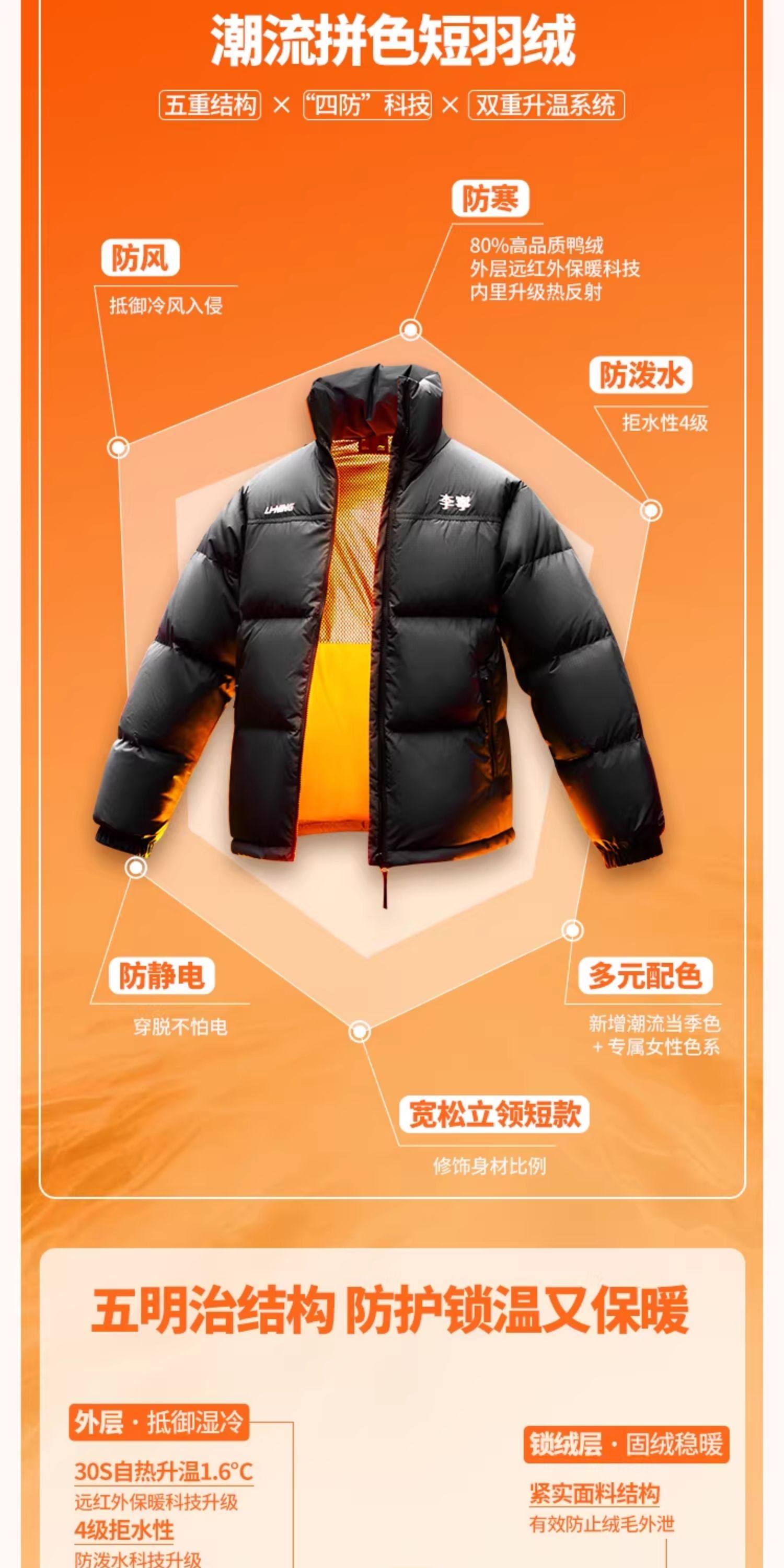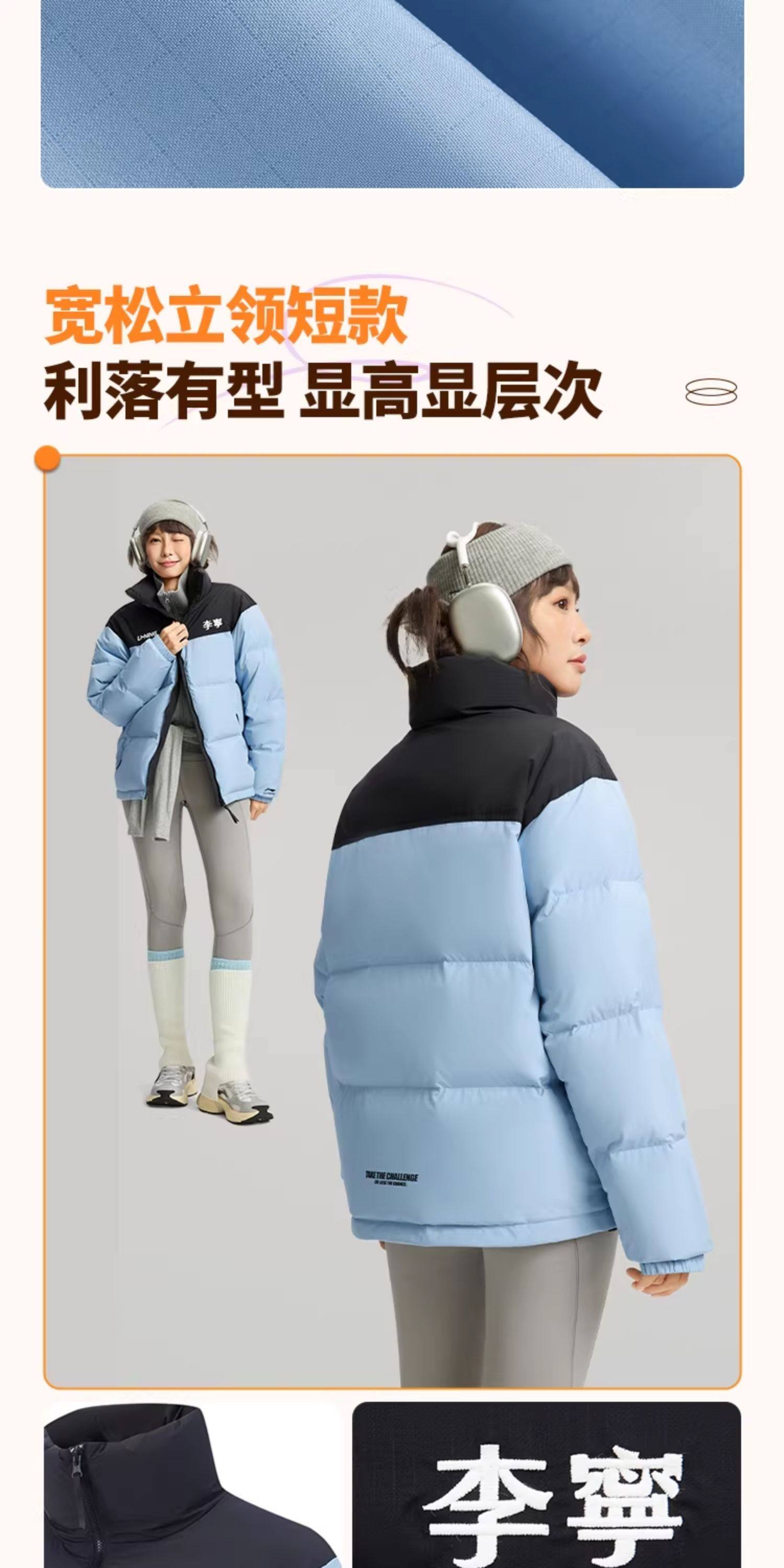Li-Ning Hot Pot down Jacket | Men's Winter Duck down Short Coat Couple's Top Warm Thickened Stand Collar Sports Jacket for Women
