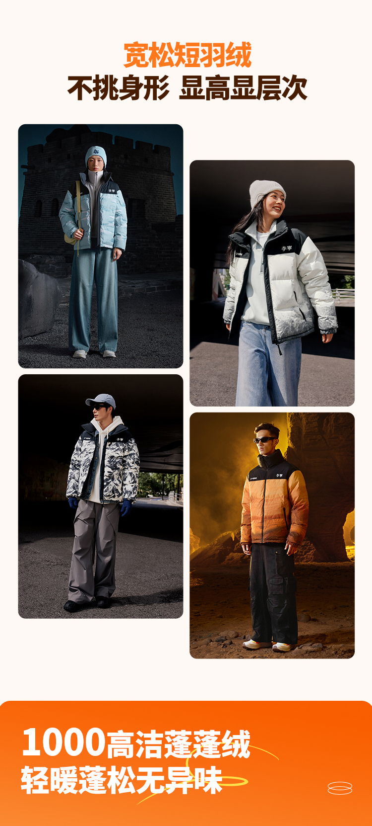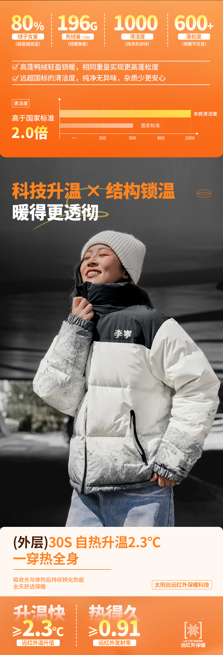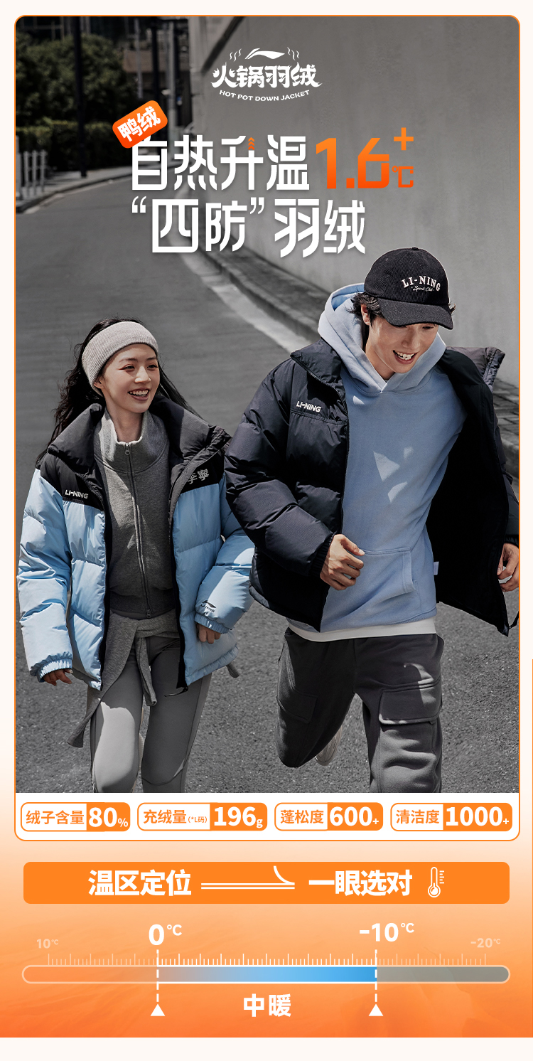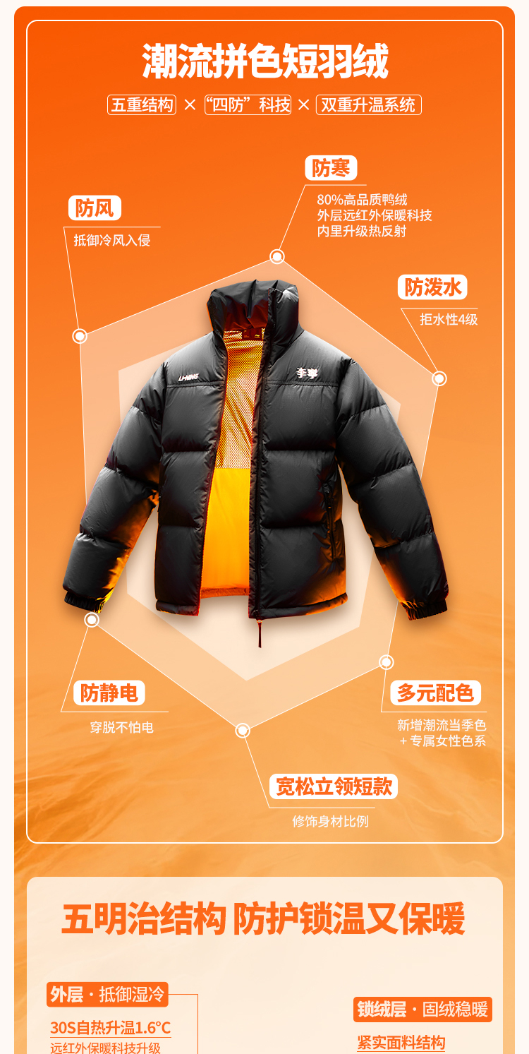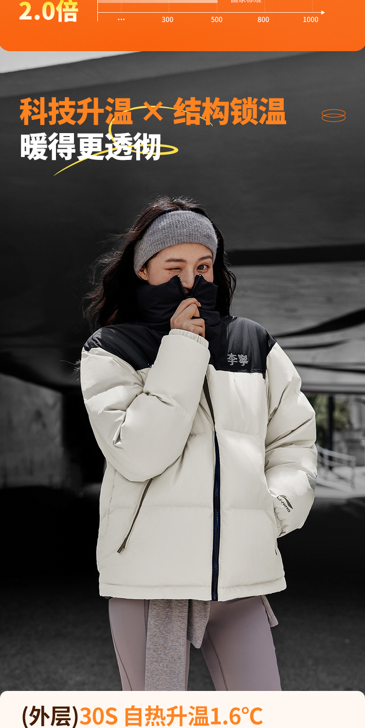 Li-Ning Hot Pot down Jacket | Men's Winter Duck down Short Jacket Couple's Warm Clothing Stand Collar Sports Coat for Women