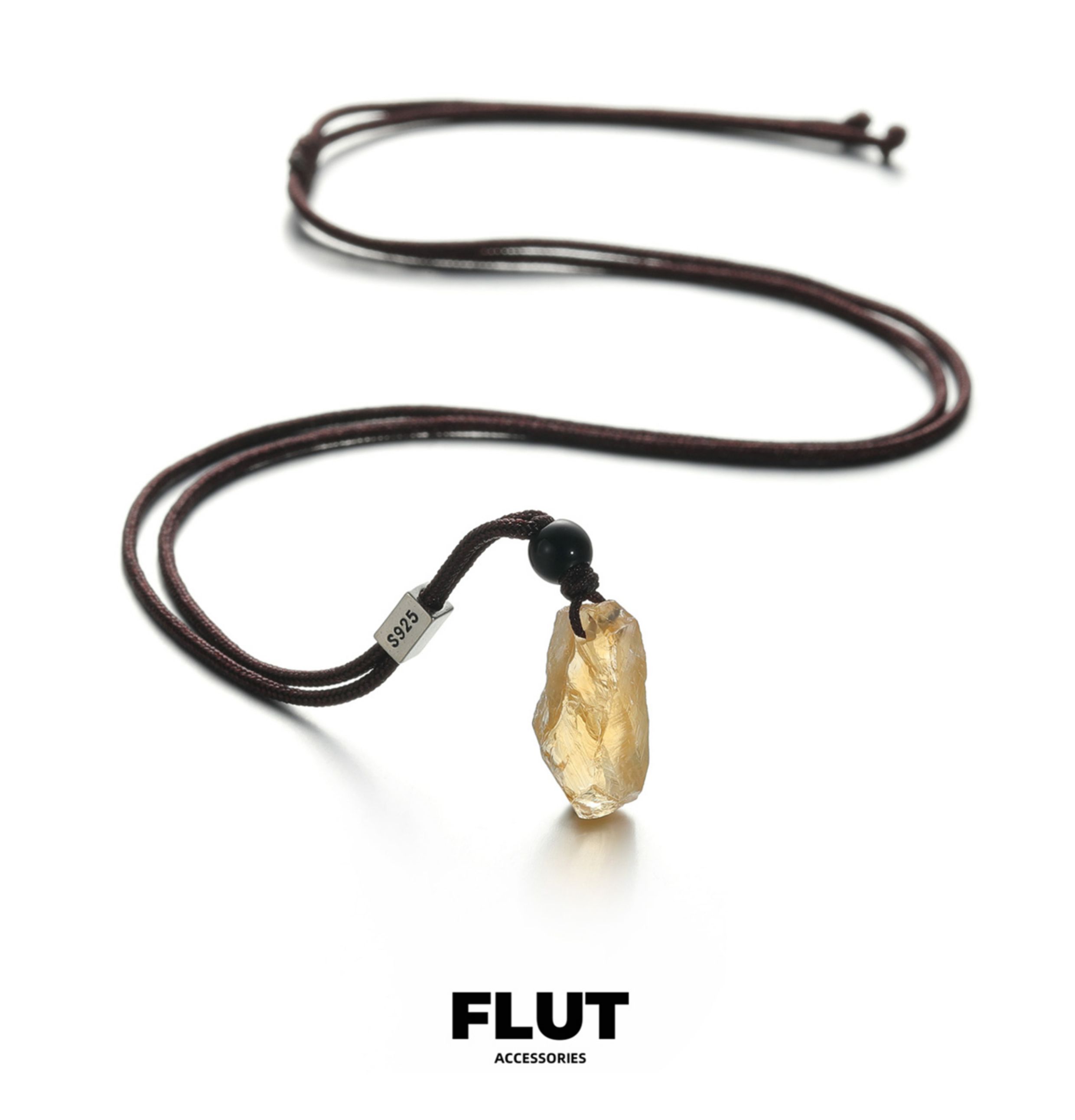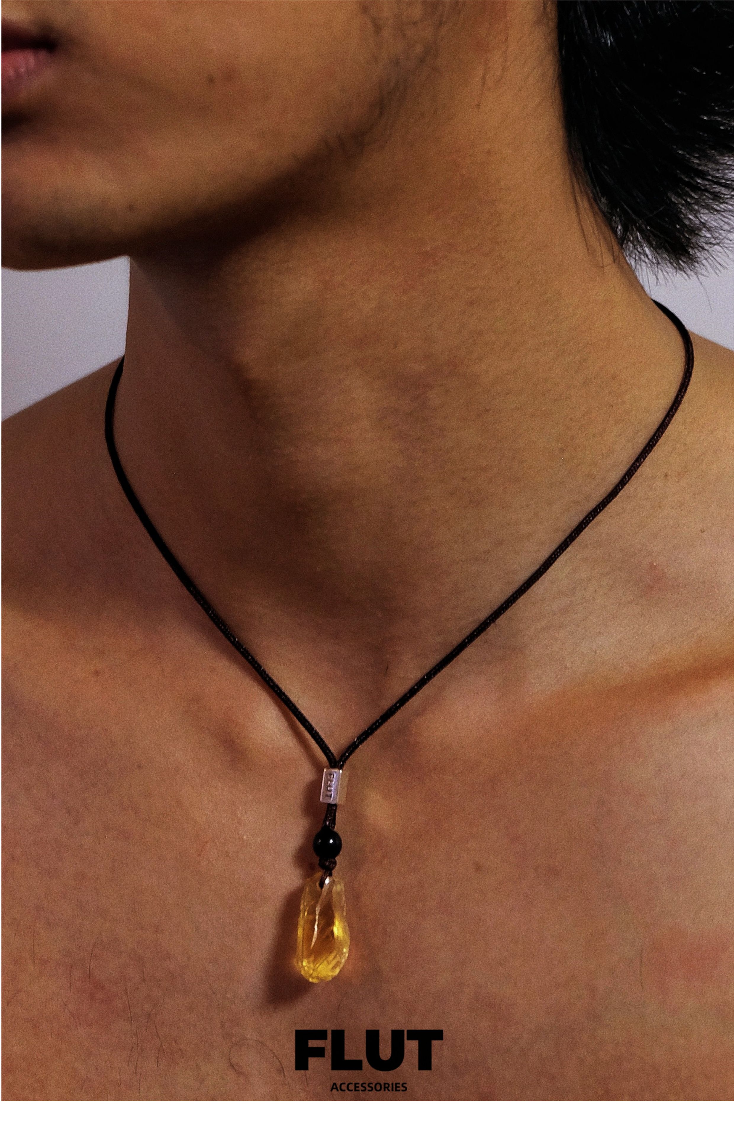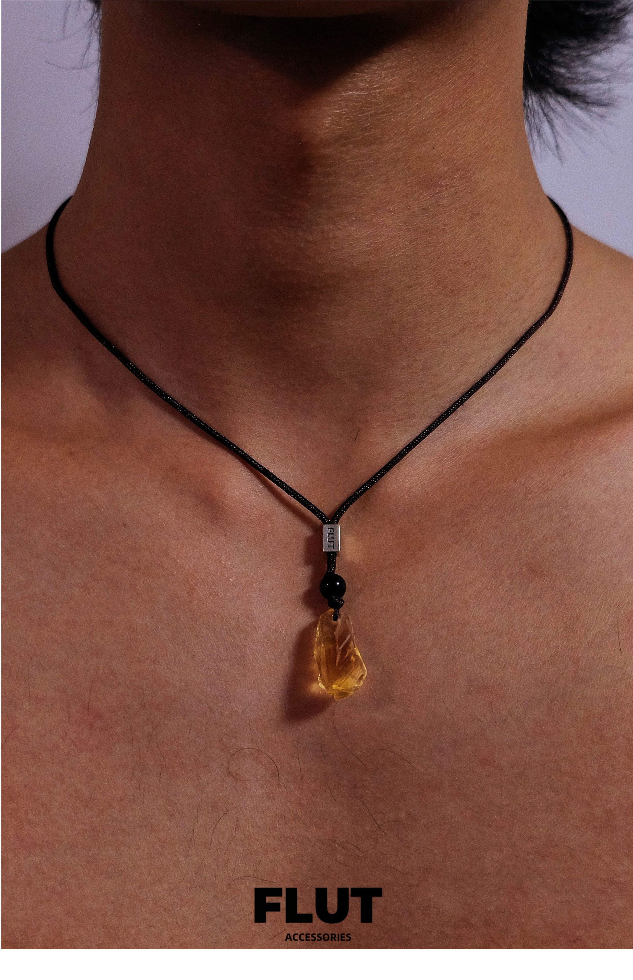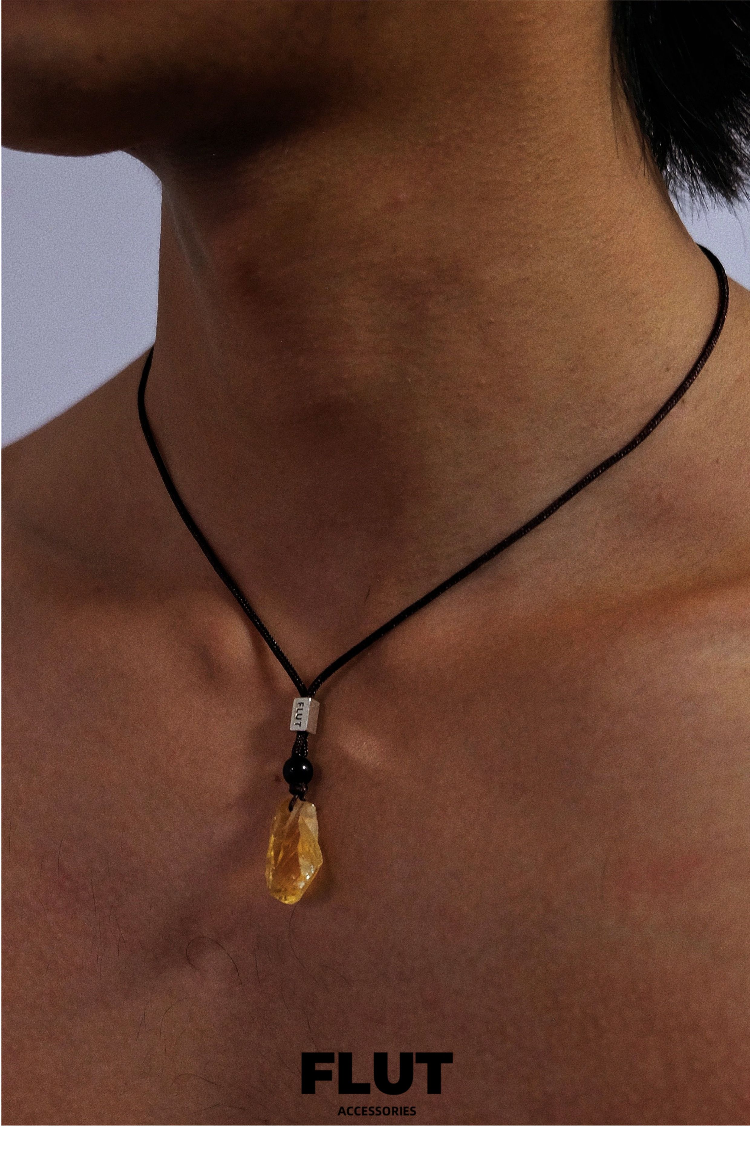 Flut Original Design Citrine Pendant Necklace with Adjustable Braided Cord, Unisex Vintage Sweater Chain