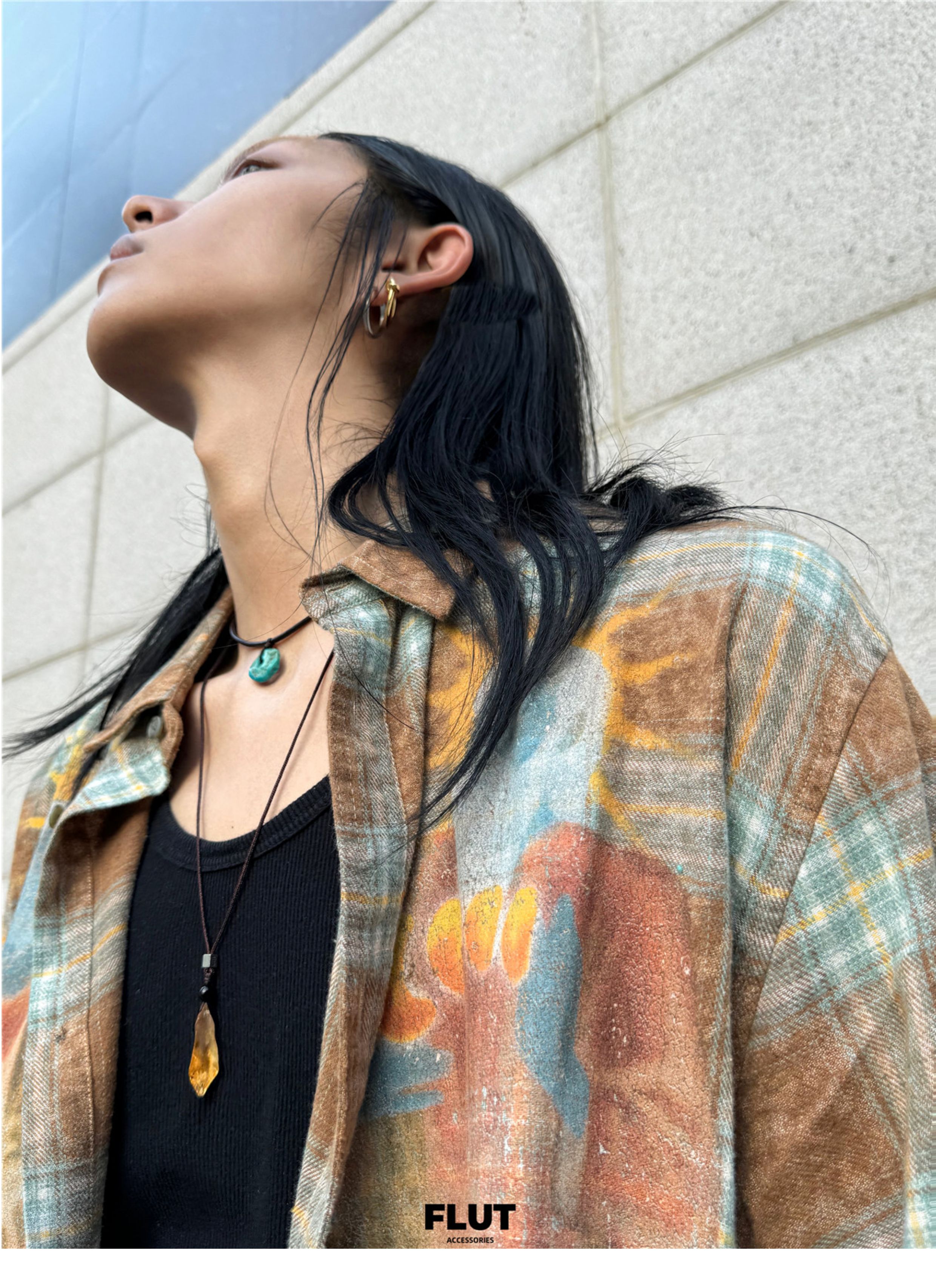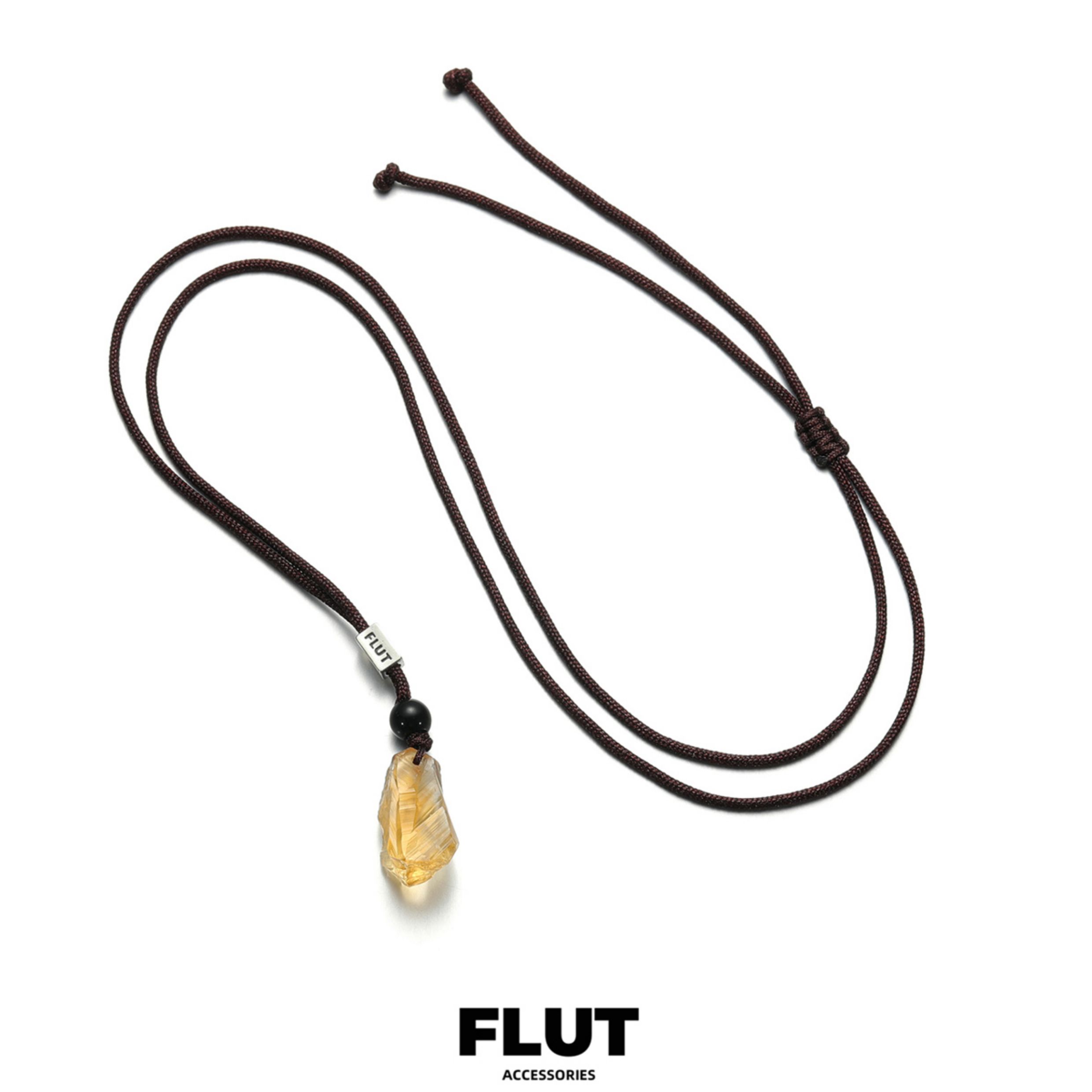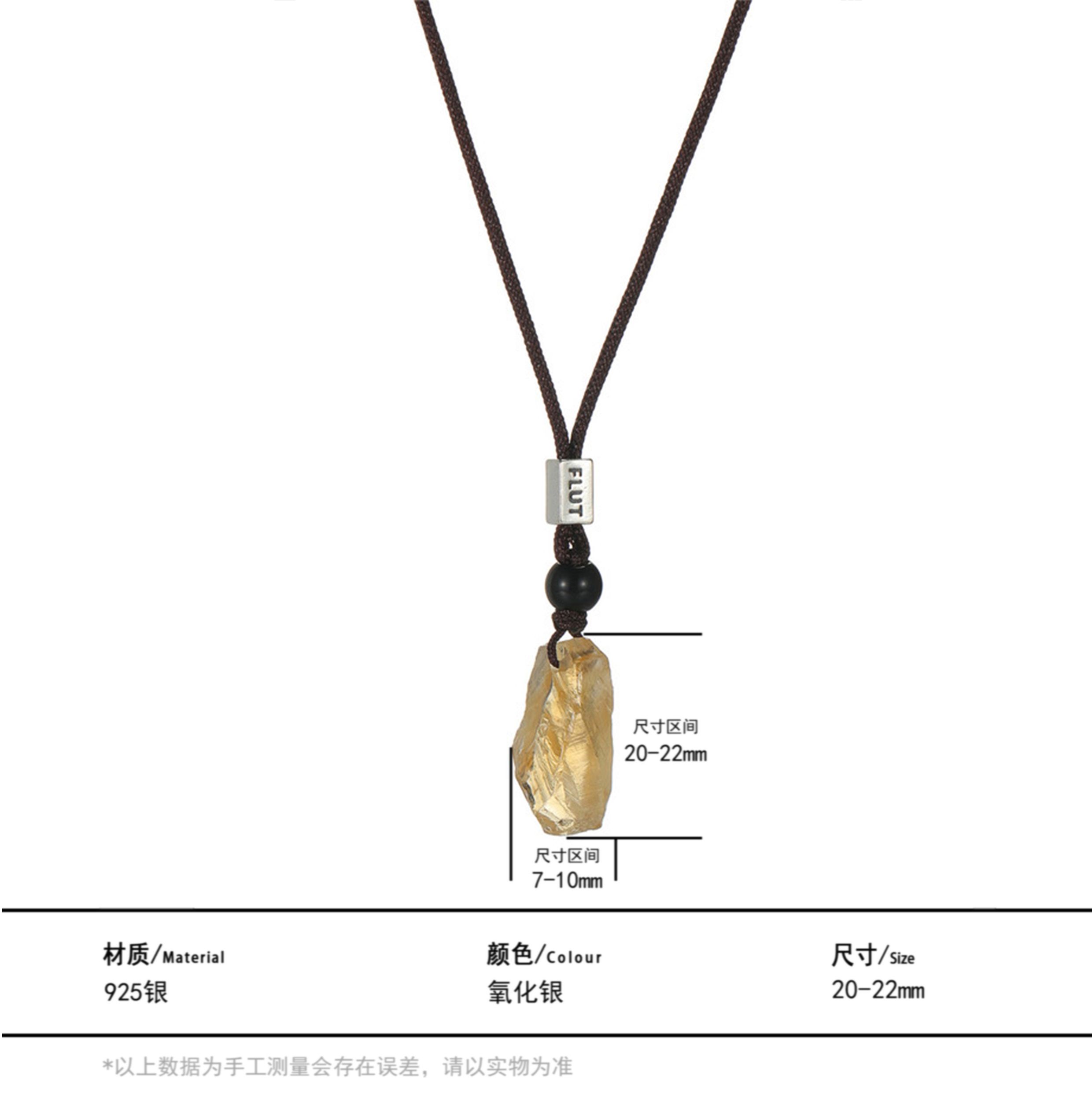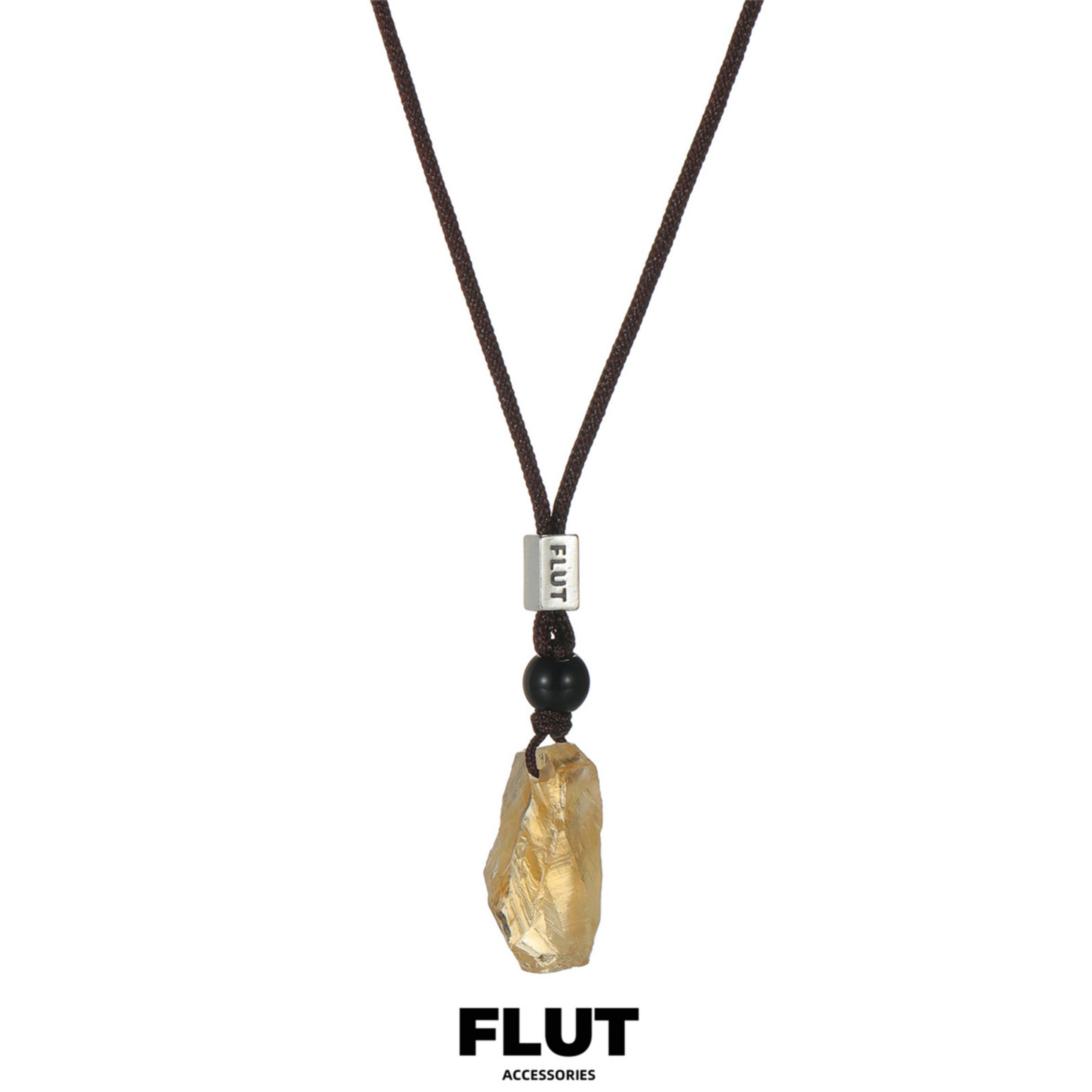 Flut Original Design Citrine Pendant Necklace with Adjustable Braided Cord, Unisex Vintage Sweater Chain
