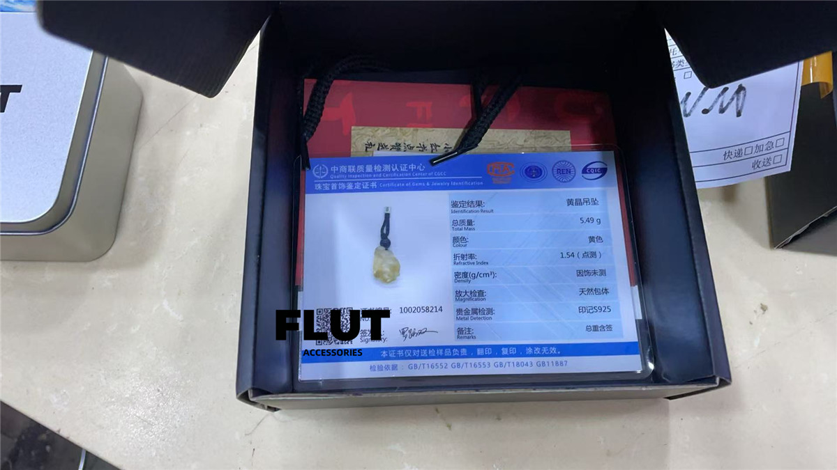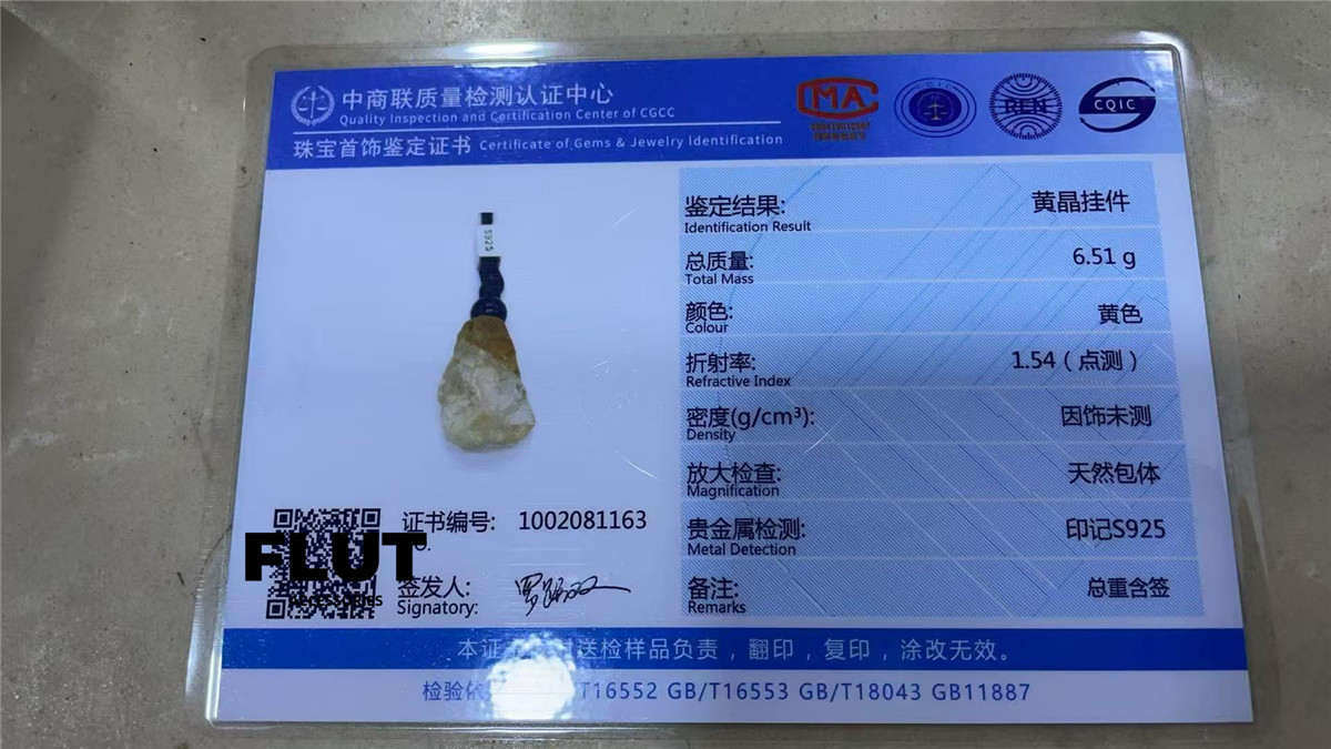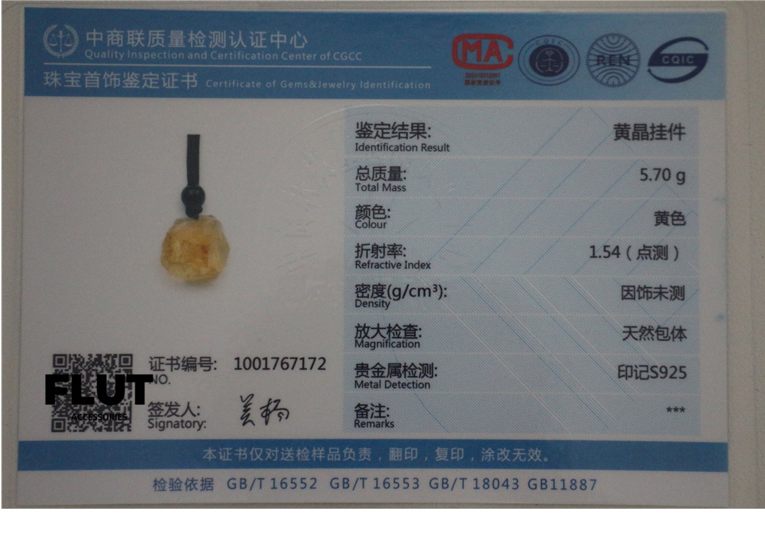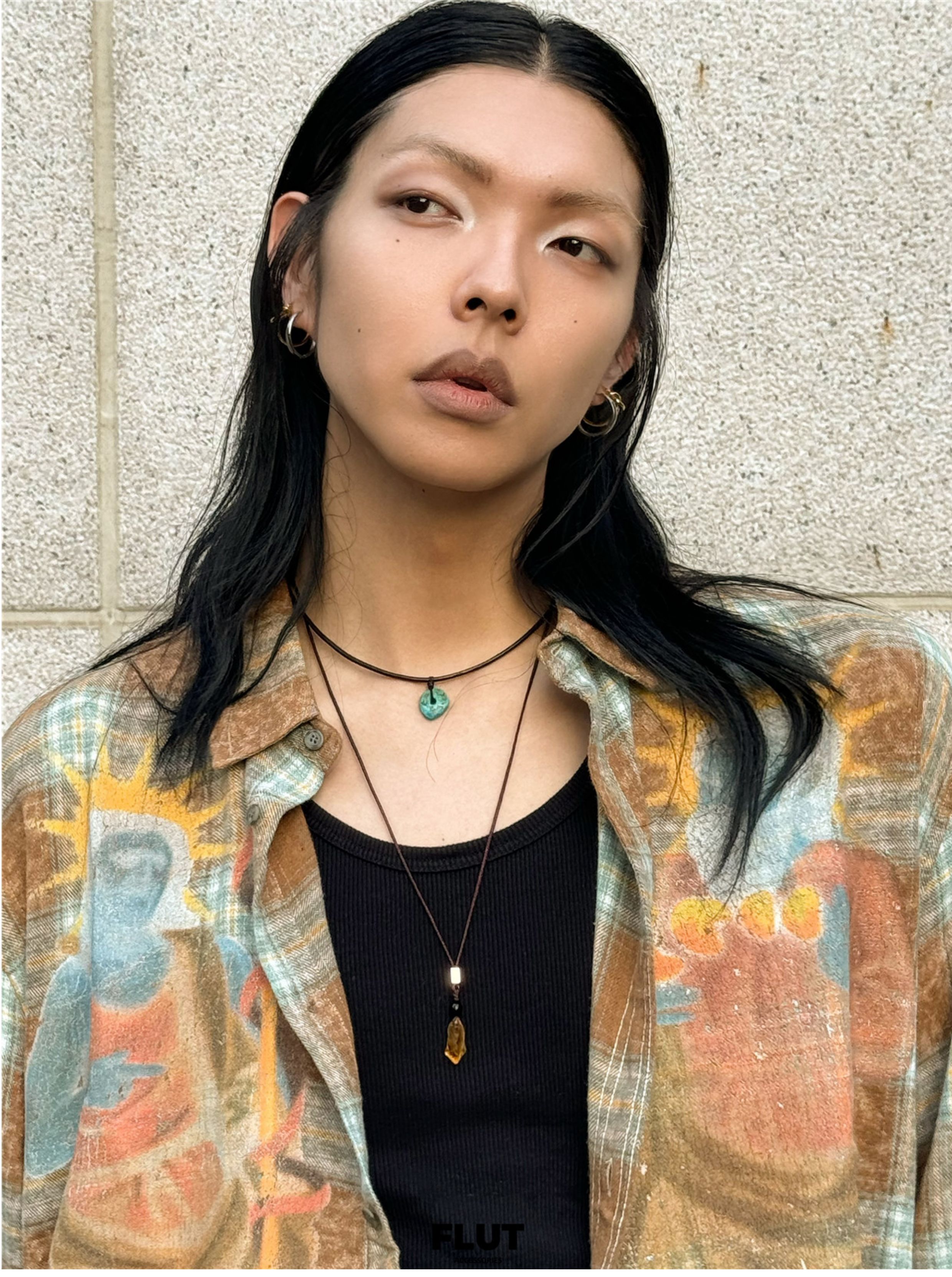 Flut Original Design Citrine Pendant Necklace with Adjustable Braided Cord, Unisex Vintage Sweater Chain