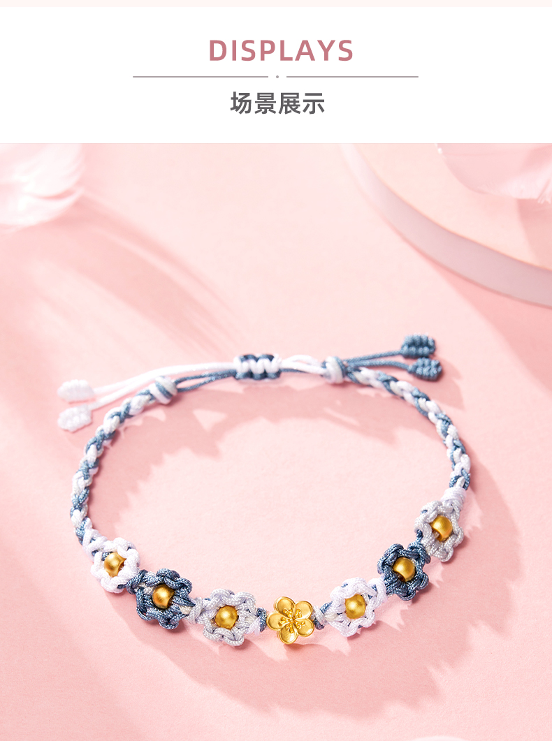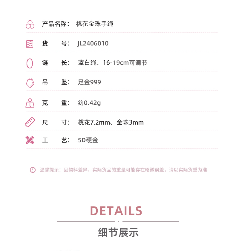 Love&Love Gold Peach Blossom Gold Bead Bracelet Pure Gold 999 Bracelet 5D Hard Gold Jewelry Gift for Girlfriend