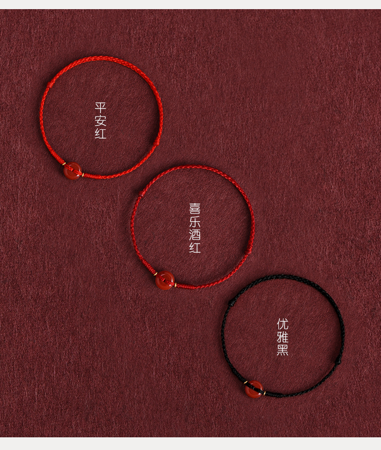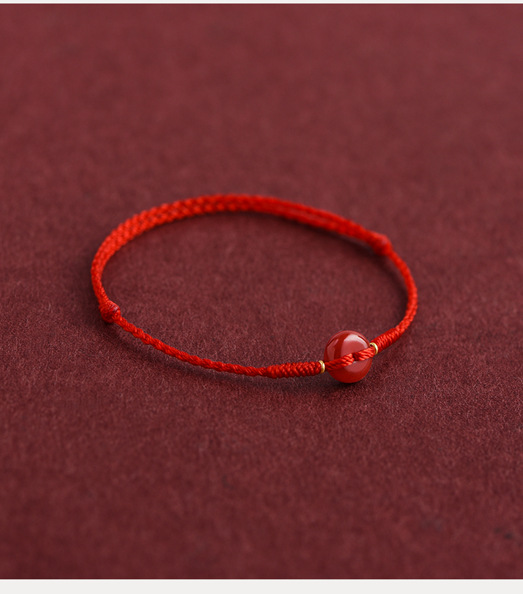 Natural Red Agate Ping An Buckle Red Rope Bracelet Men's and Women's 999 Gold Gold Transfer Beads Extremely Fine Woven Hand Rope