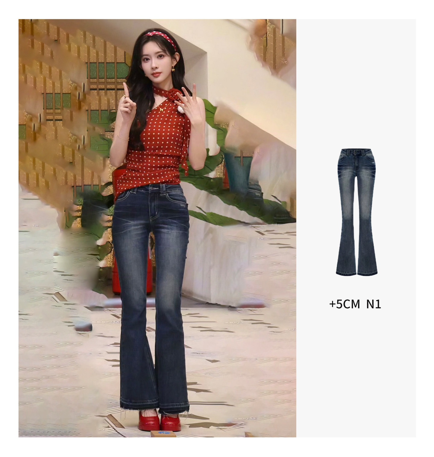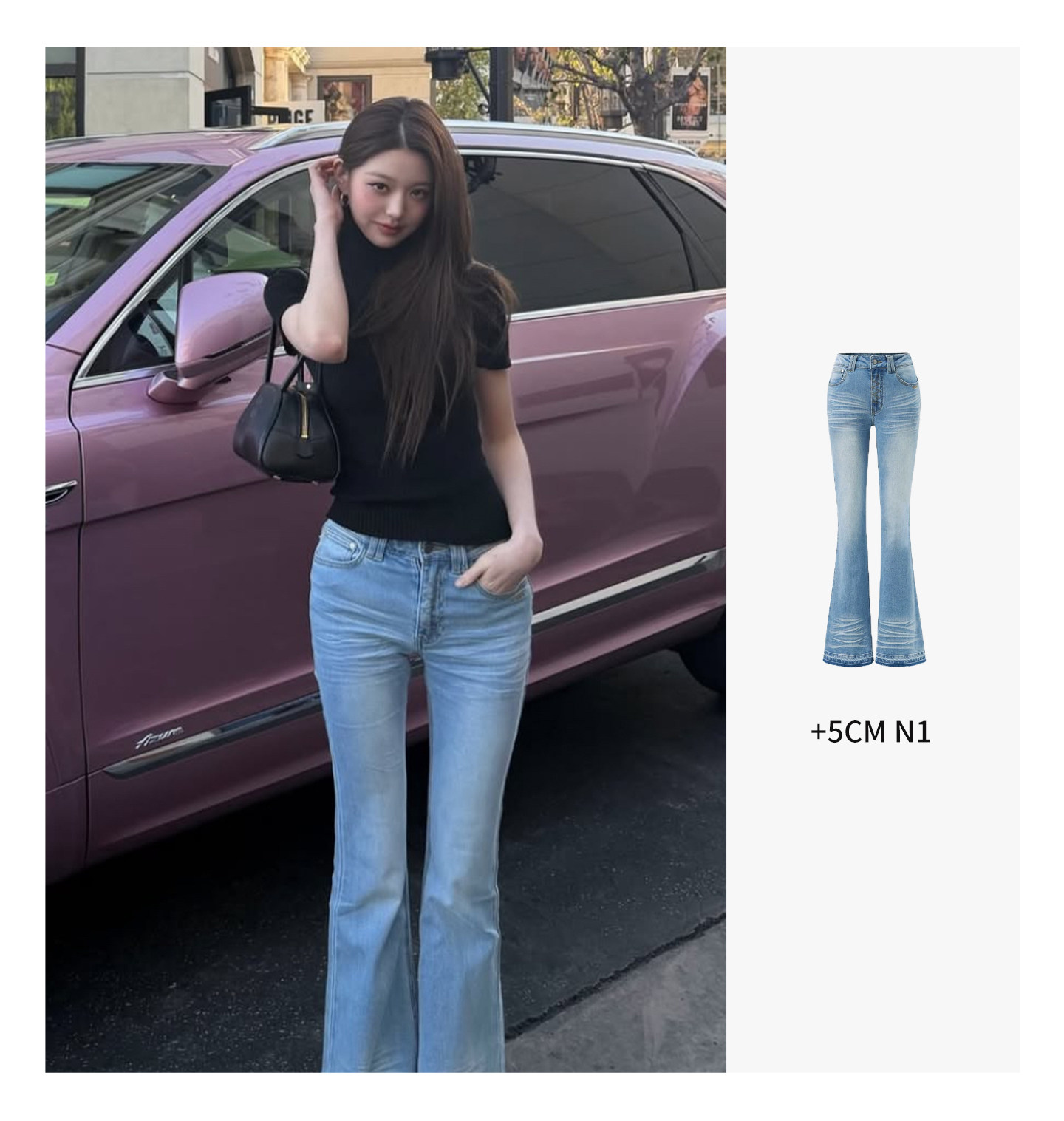 Naws【+5Cm N1】Zhang Yuanying's Same Style Supermodel Pants, Non-Bulging Denim, Washed Tight-Fitting Flared Pants