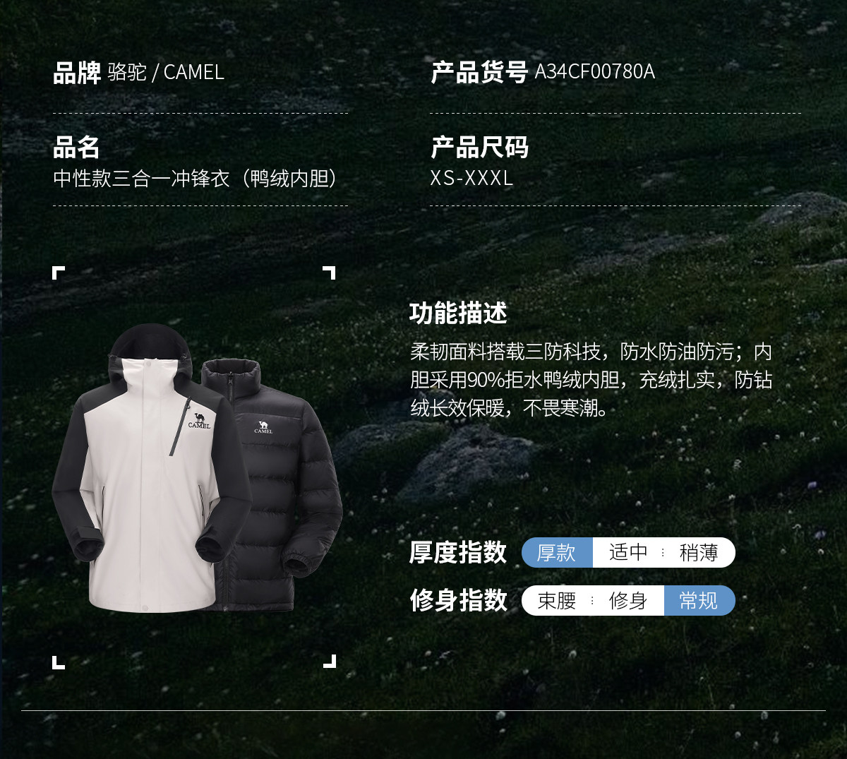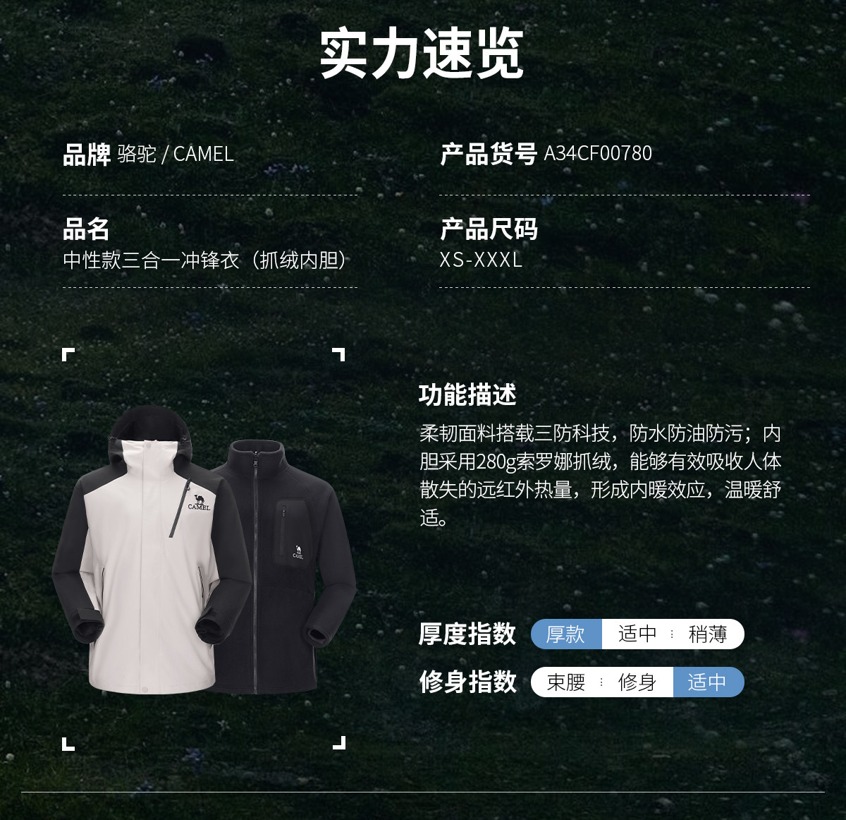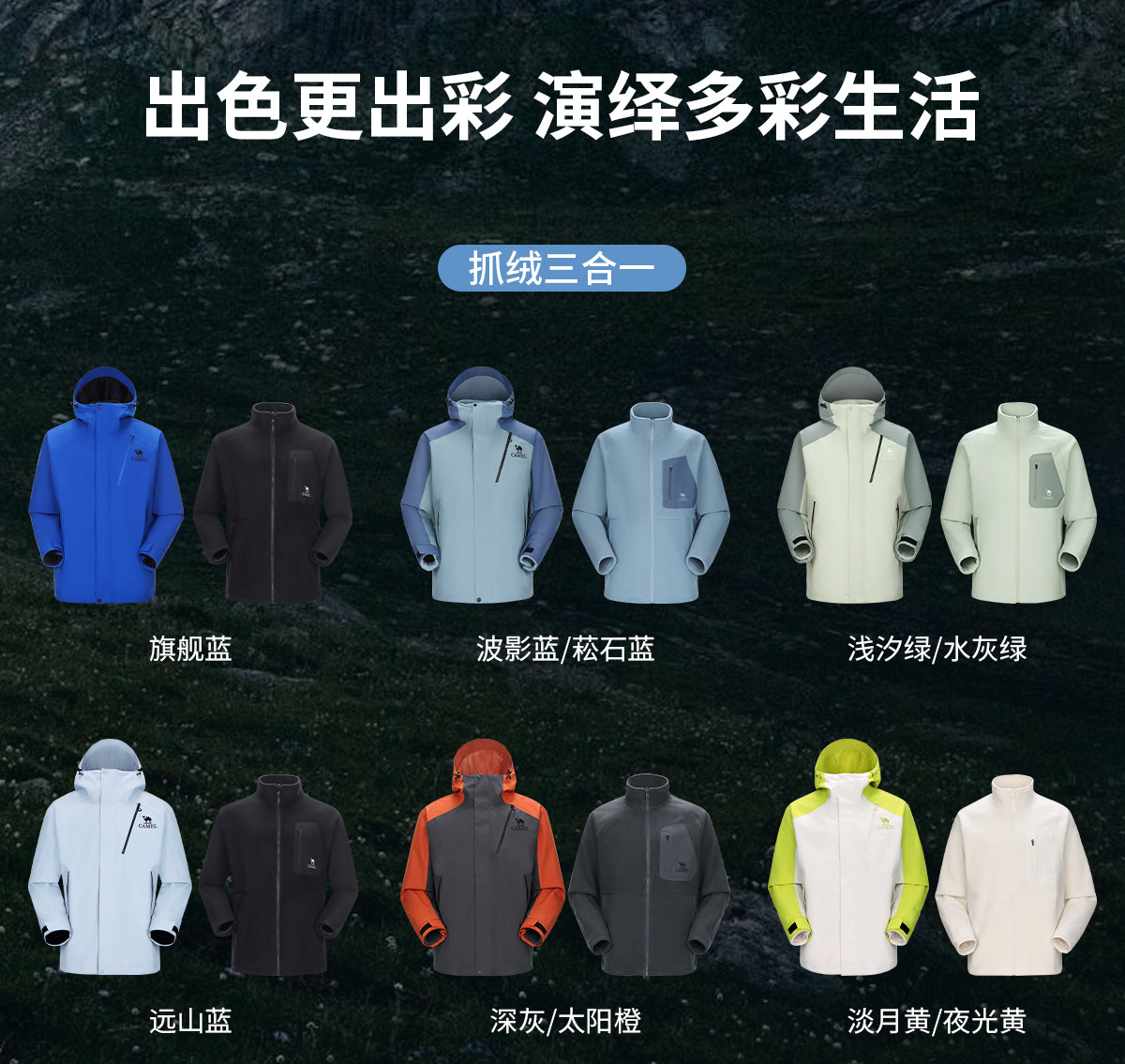 Camel King Kaijia 26 Outdoor Jacket Men's 3-in-1 Windproof Fleece Liner Warm Travel Jacket Women's