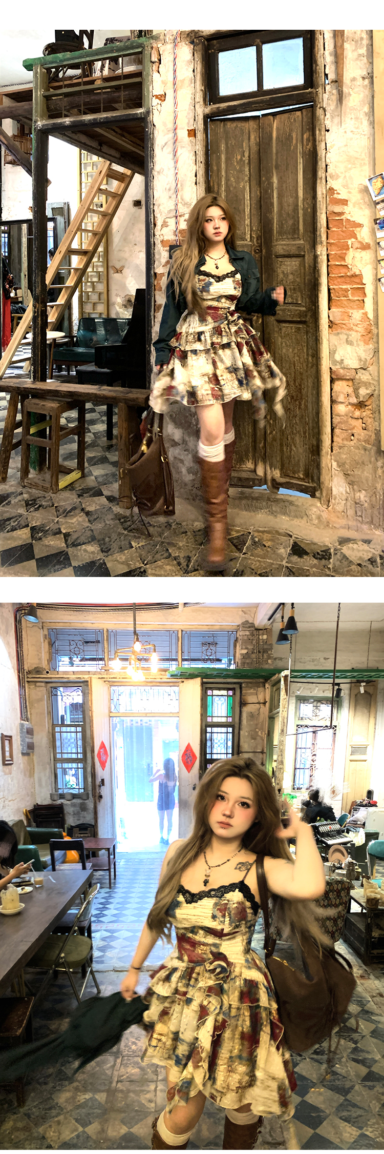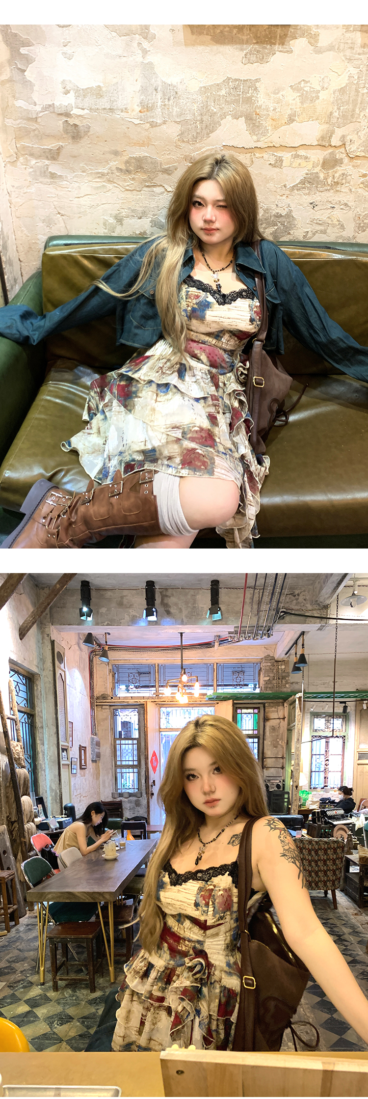 Annie's Lace Patchwork Irregular Strap Dress for Women, 2024 Summer New Style, Plus Size, Niche Dress
