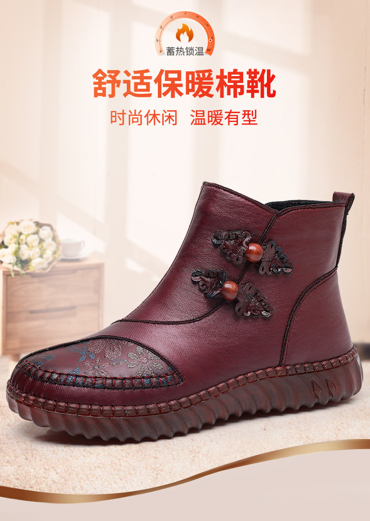 Old Beijing Cloth Shoes for Women, Winter Fleece-Lined, Warm, Non-Slip, Waterproof, Soft-Soled, Elderly Cotton Shoes, New Style for Middle-Aged and Elderly Mothers