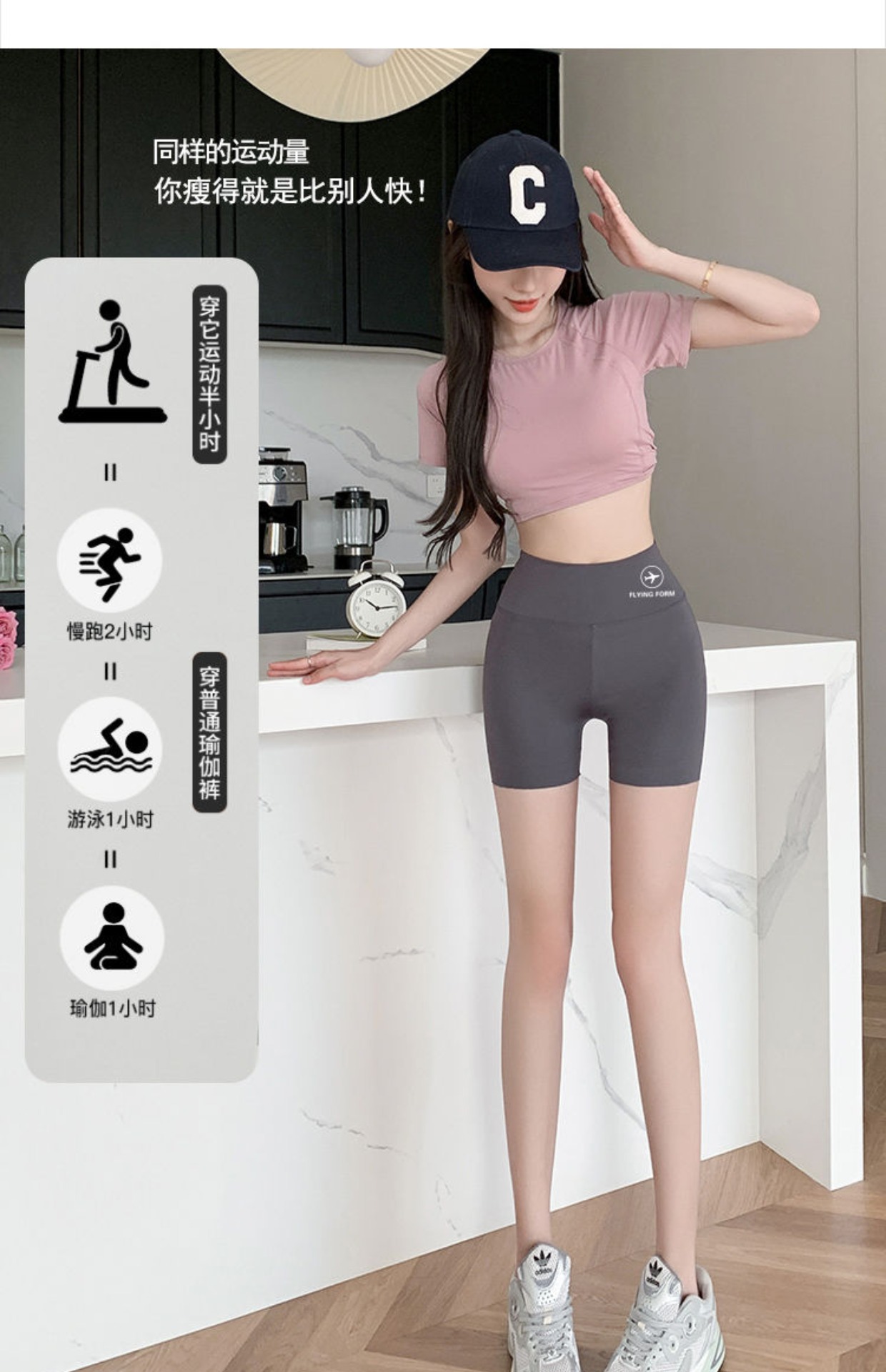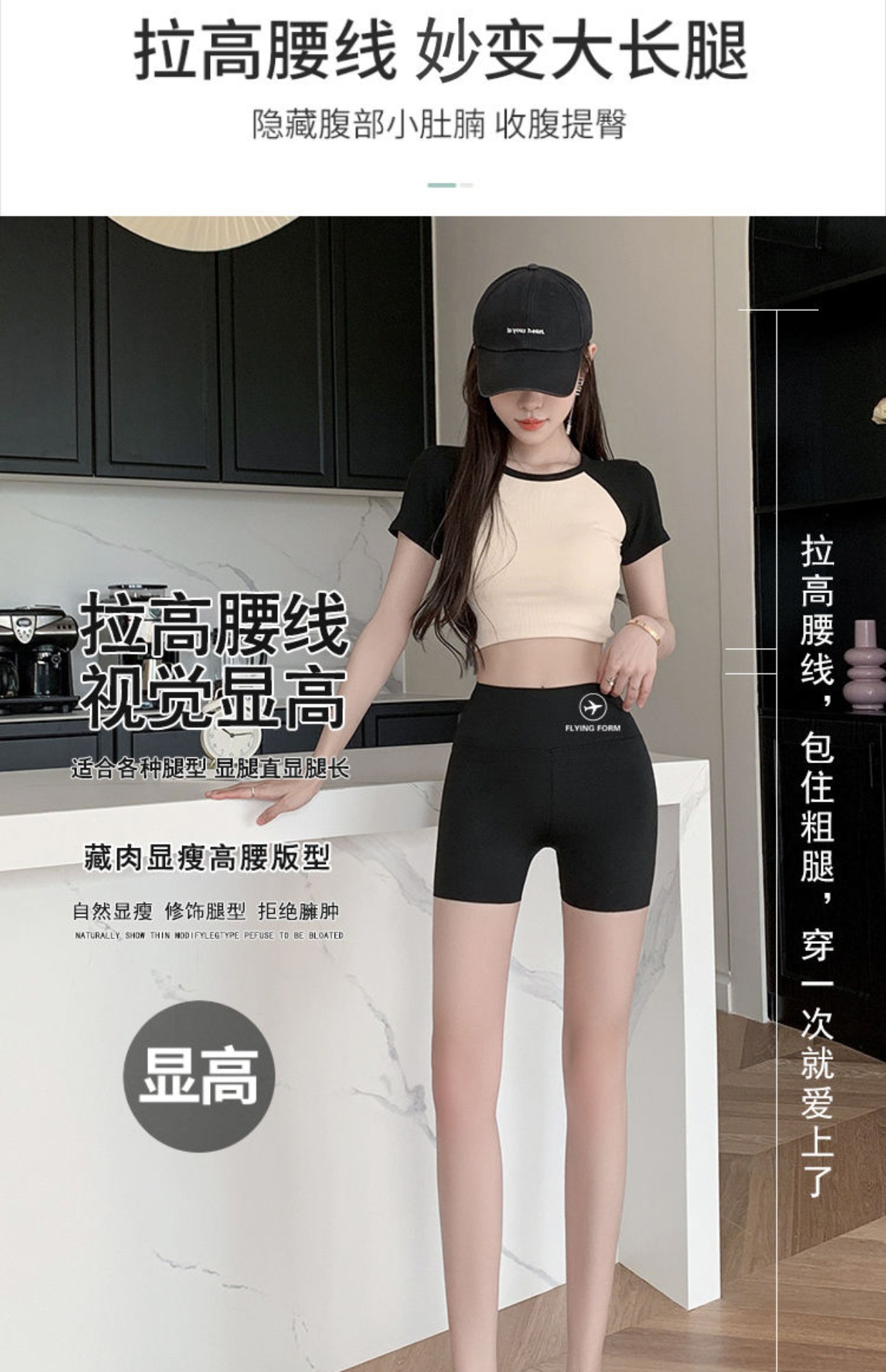 Women's Swim Shorts, Anti-Exposure, Three-Quarter Length, Quick-Drying, Black, Sports, Tummy Control, Belly-Covering