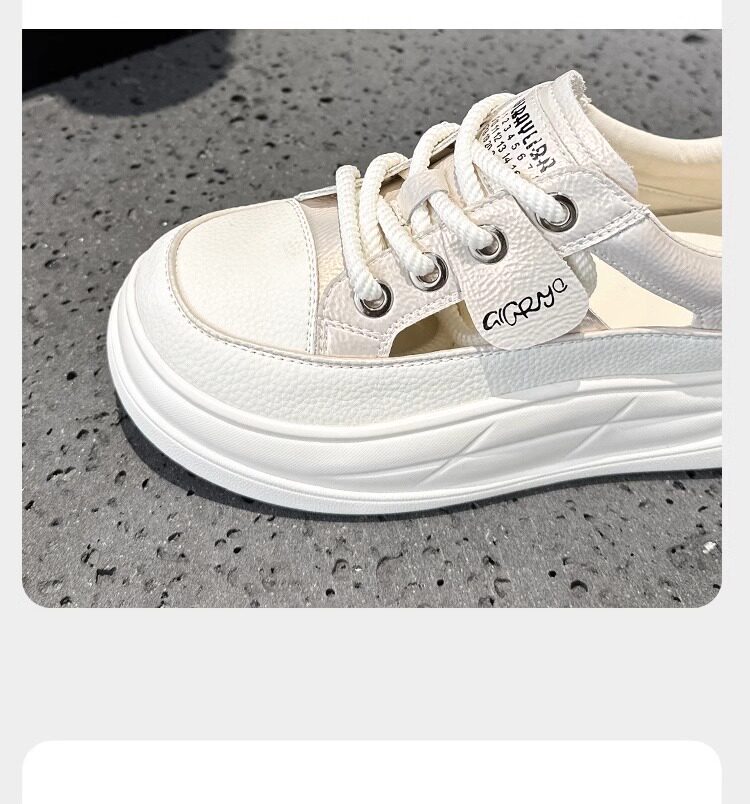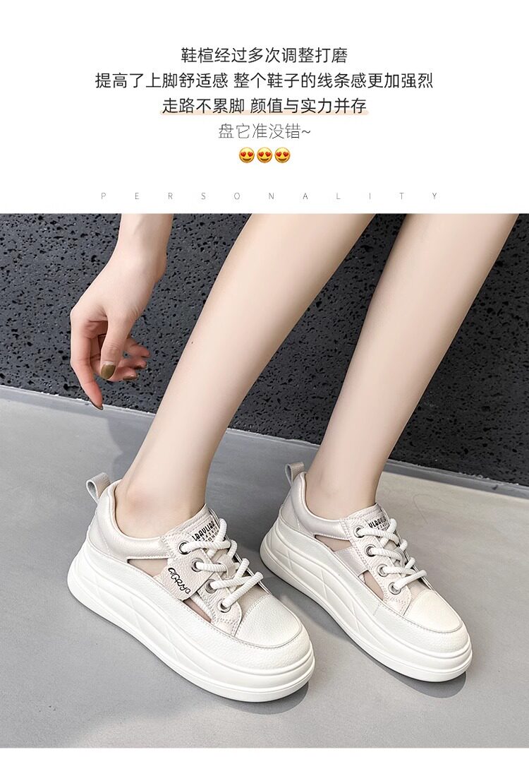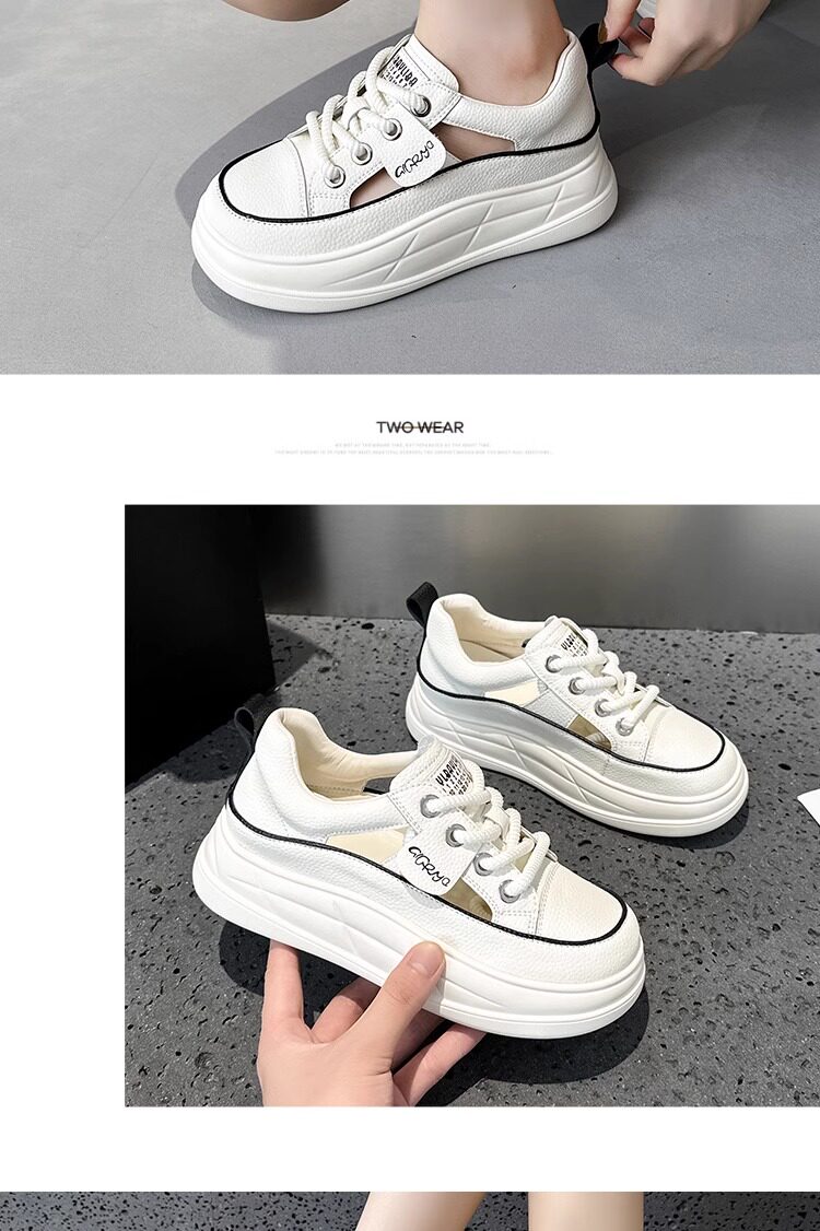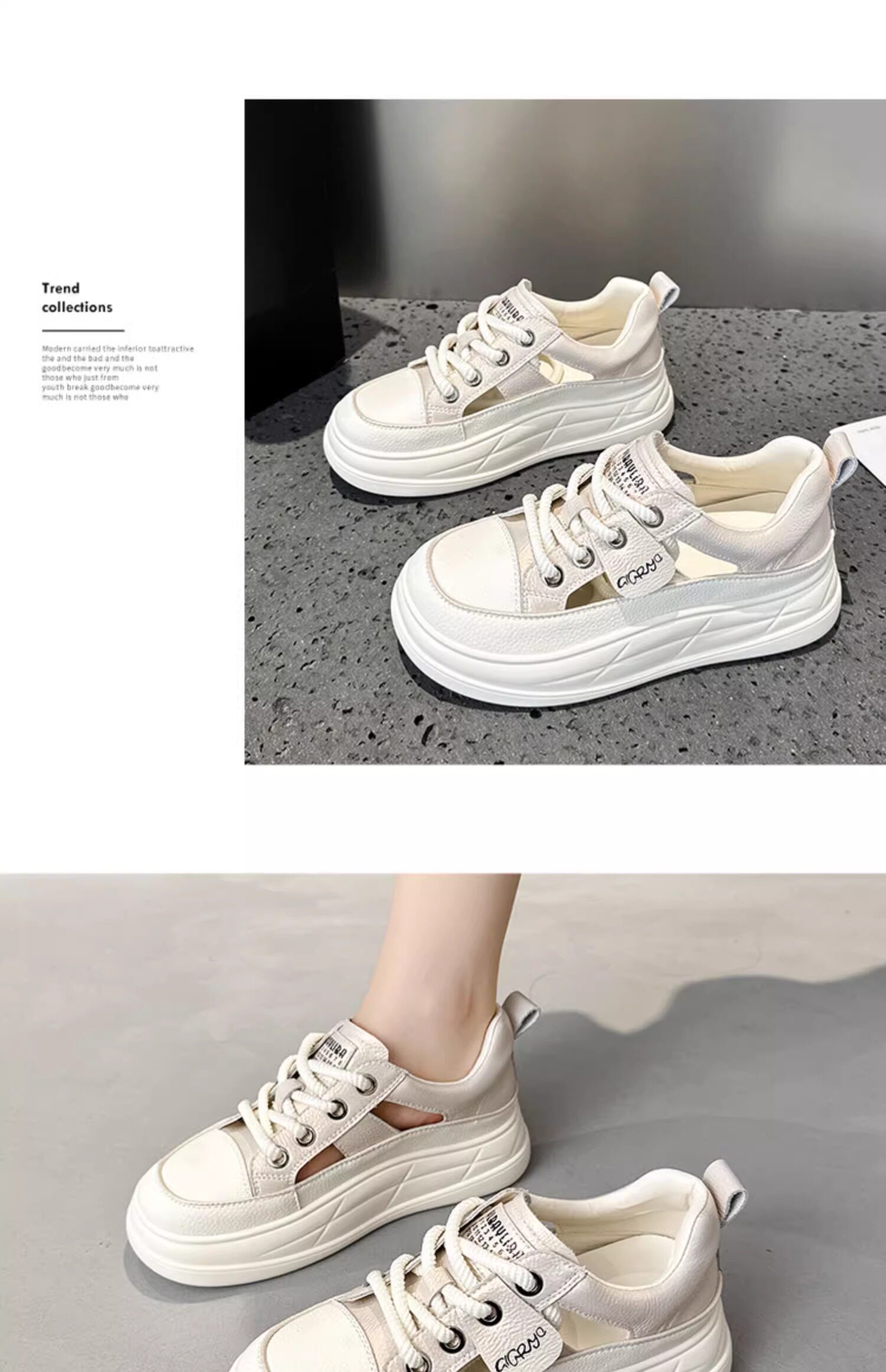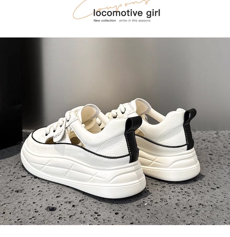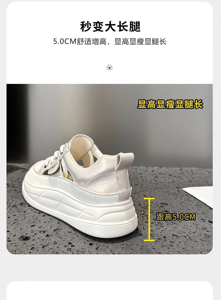 Hong Kong Hollow Breathable White Sneakers for Women 2026 Spring New Genuine Leather Thick-Soled Lightweight Casual Closed-Toe Sports Sandals
