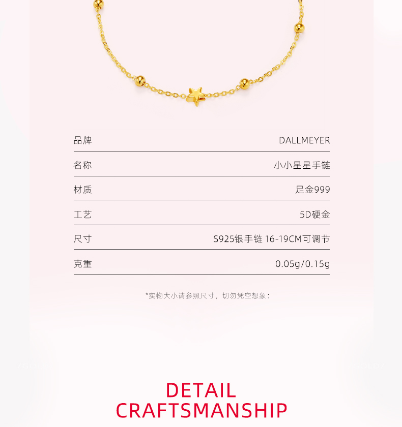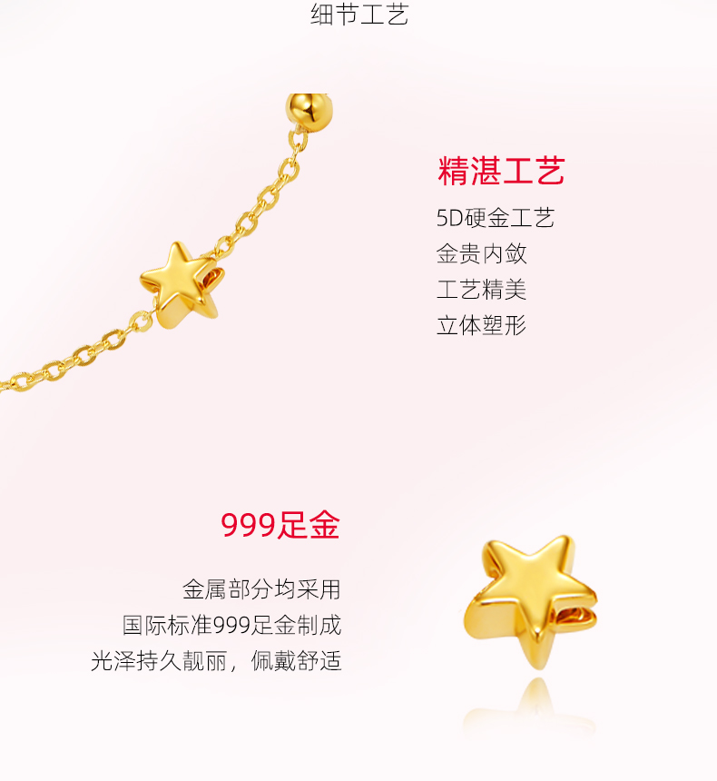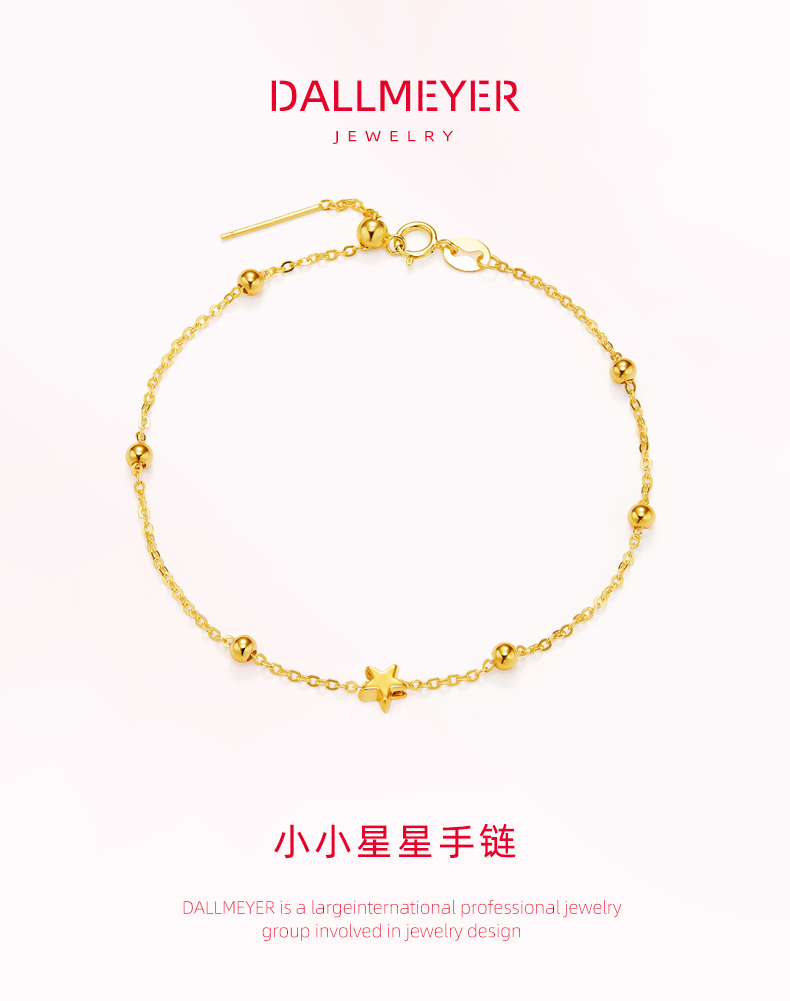 Dallmeyer Gold Five-pointed Star Bracelet Foot Gold 999 Transfer Beads 5D Hard Gold Jewelry Gift for Girlfriend