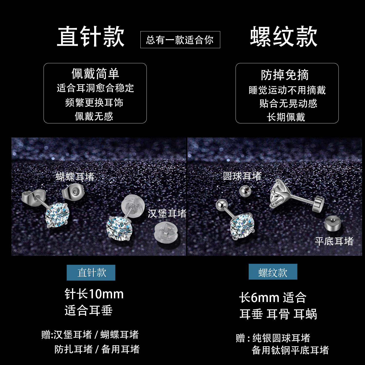 Moissanite Earrings for Women, Sterling Silver, Light Luxury Diamond Ear Studs, Men's 18K Gold-Plated Zircon Earrings, Screw-Back Ear Accessories