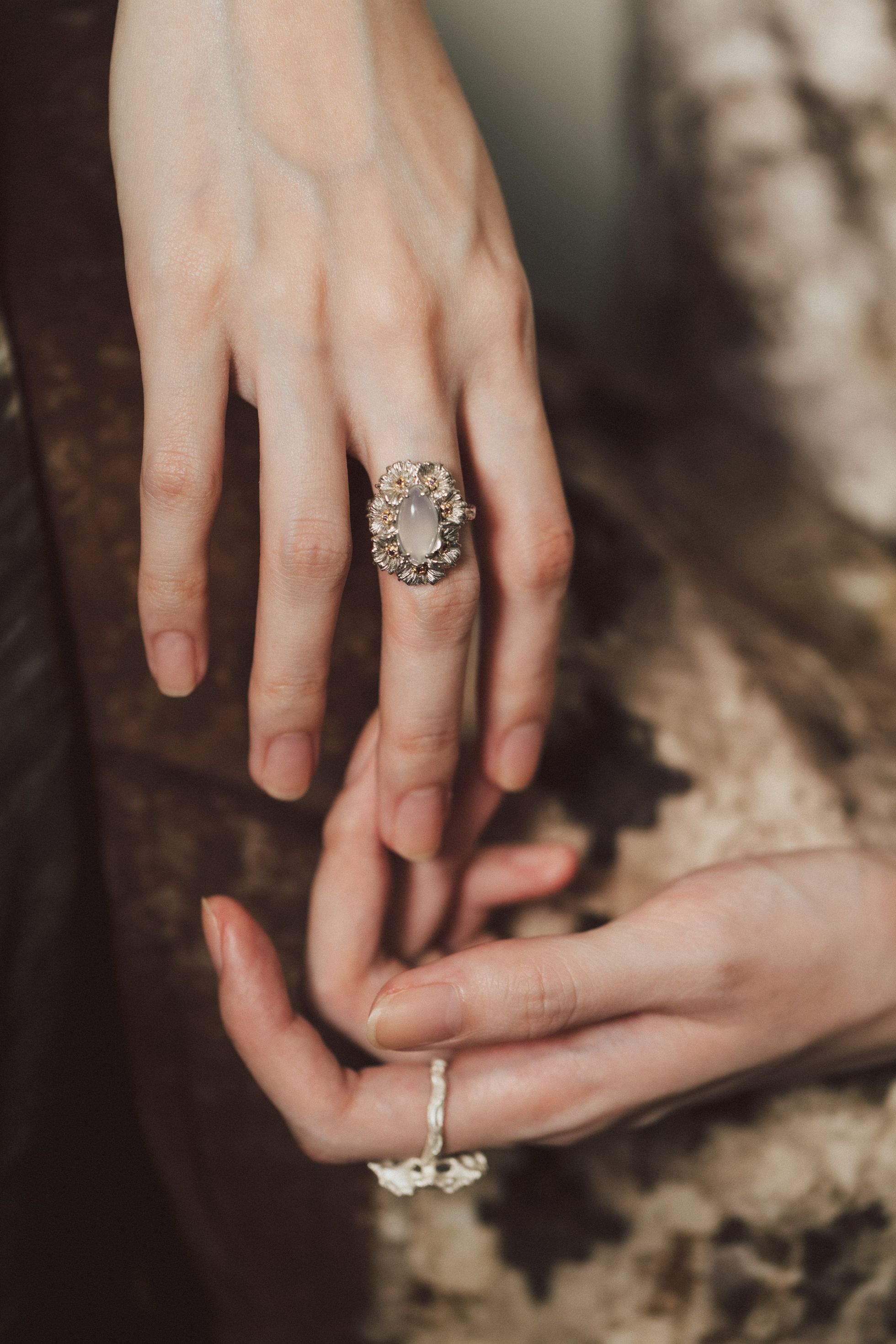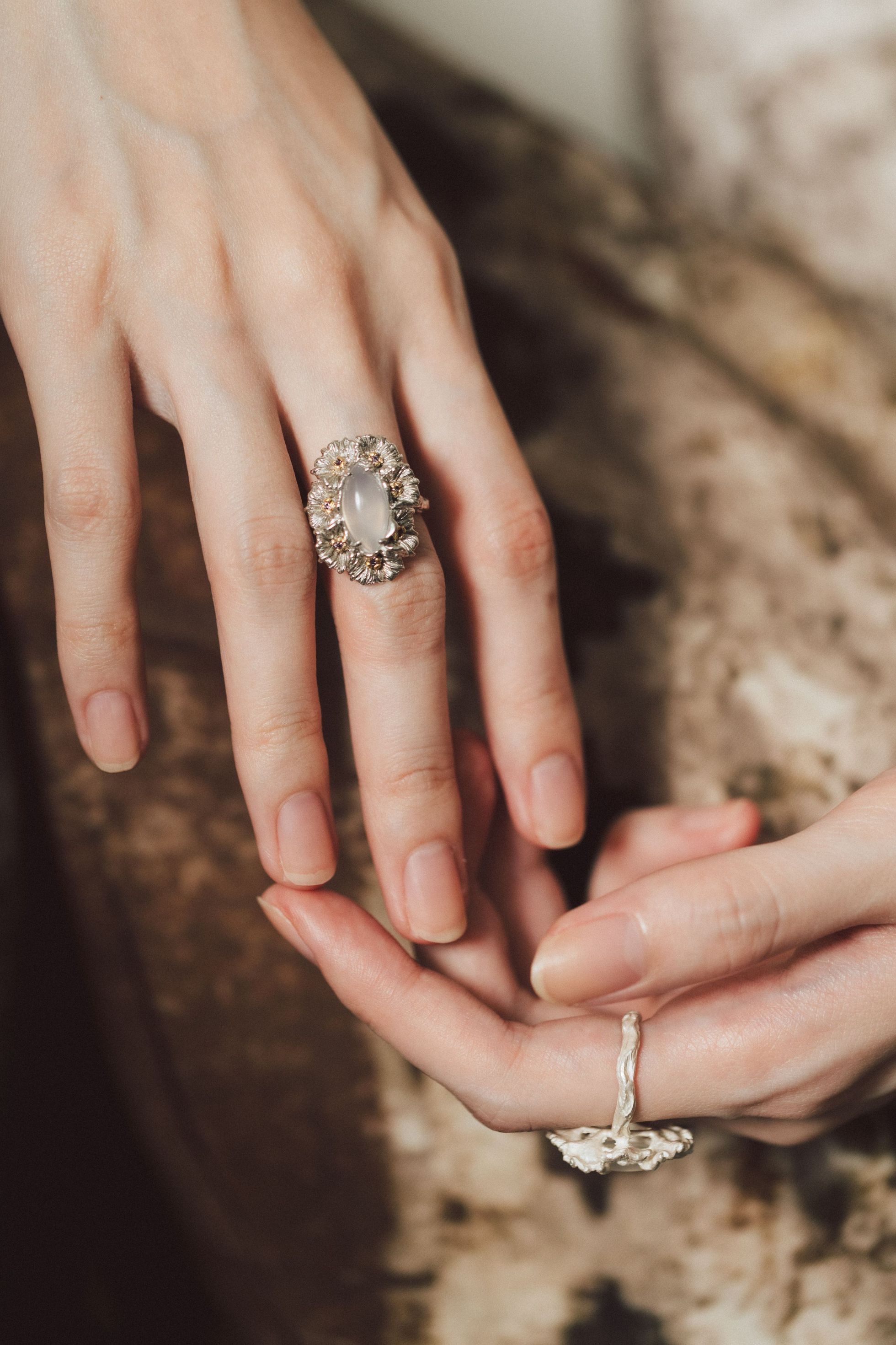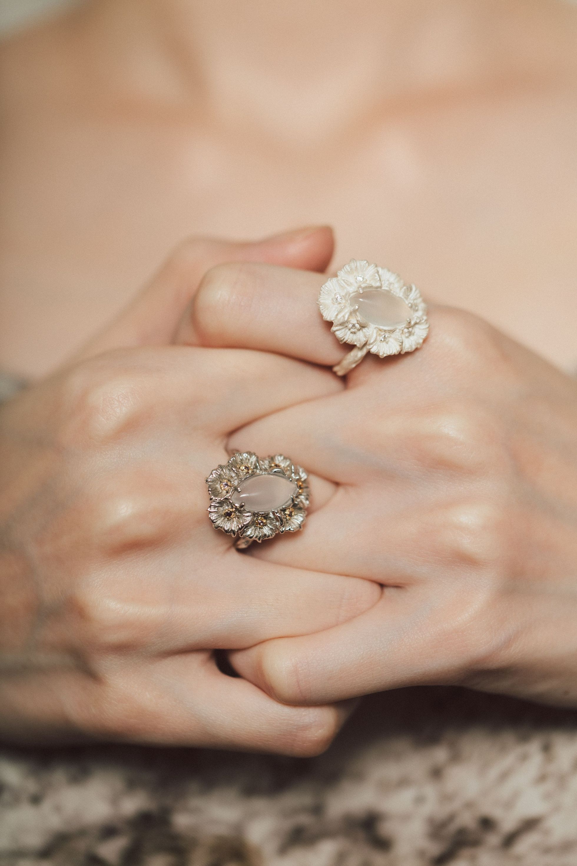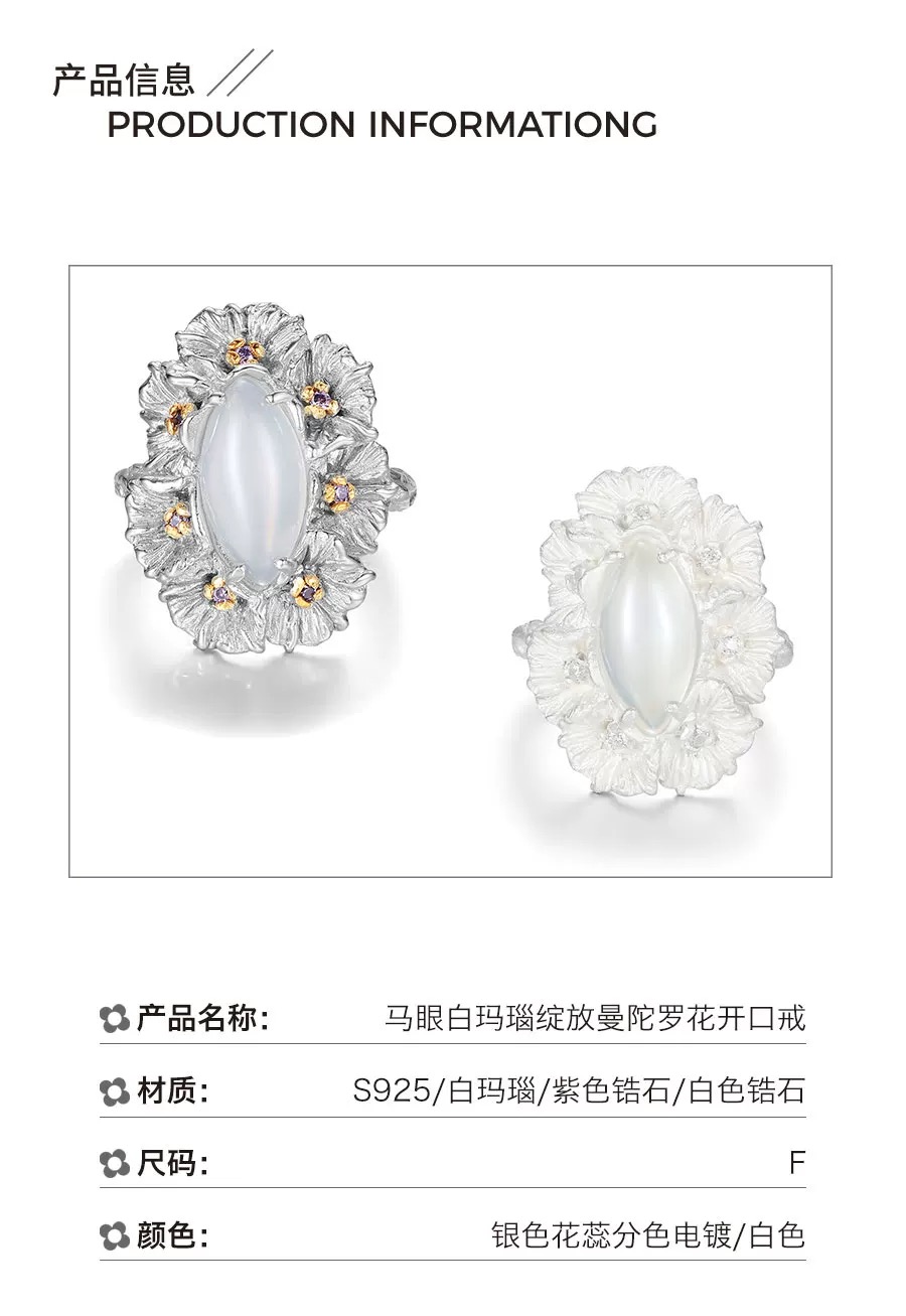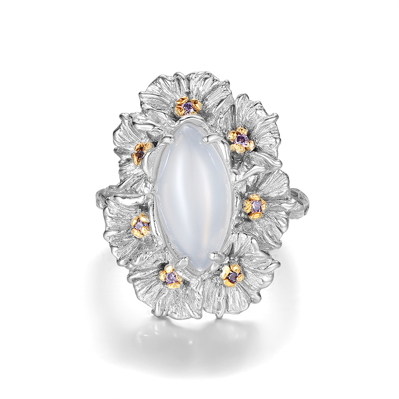 Dare Buyer Store T.Major Horse Eye White Agate Blooming Mandala Flower Open Ring Original Vintage Style