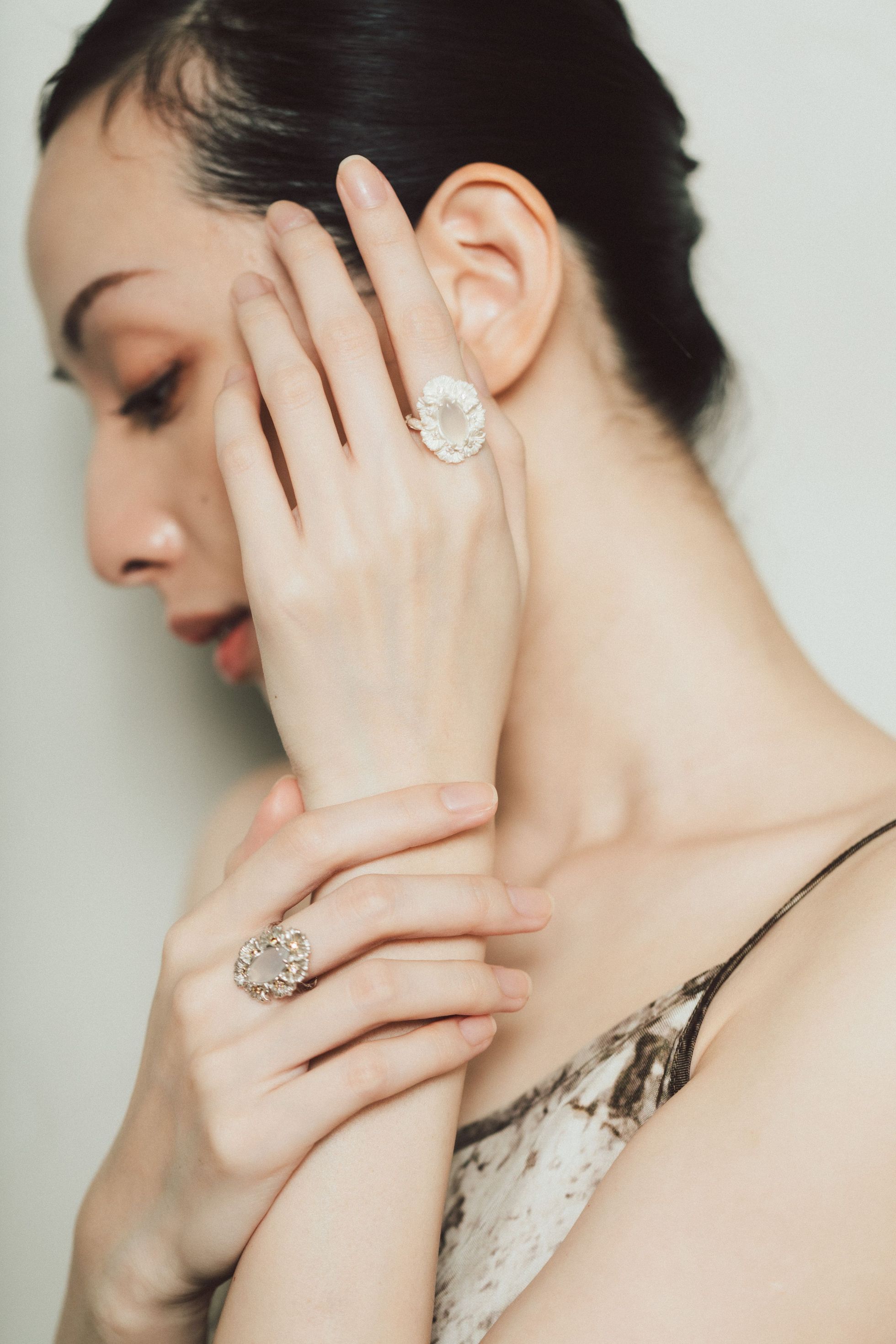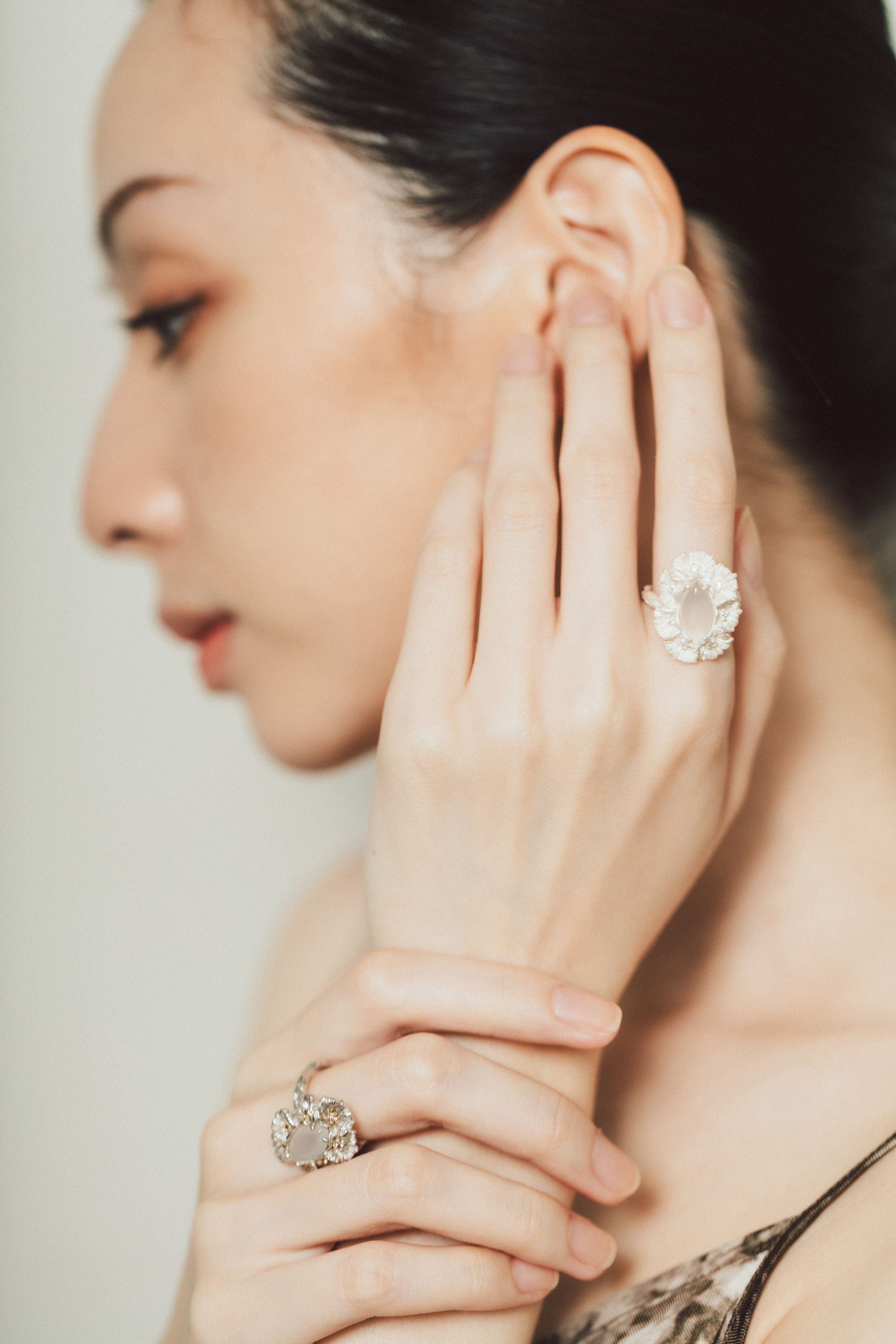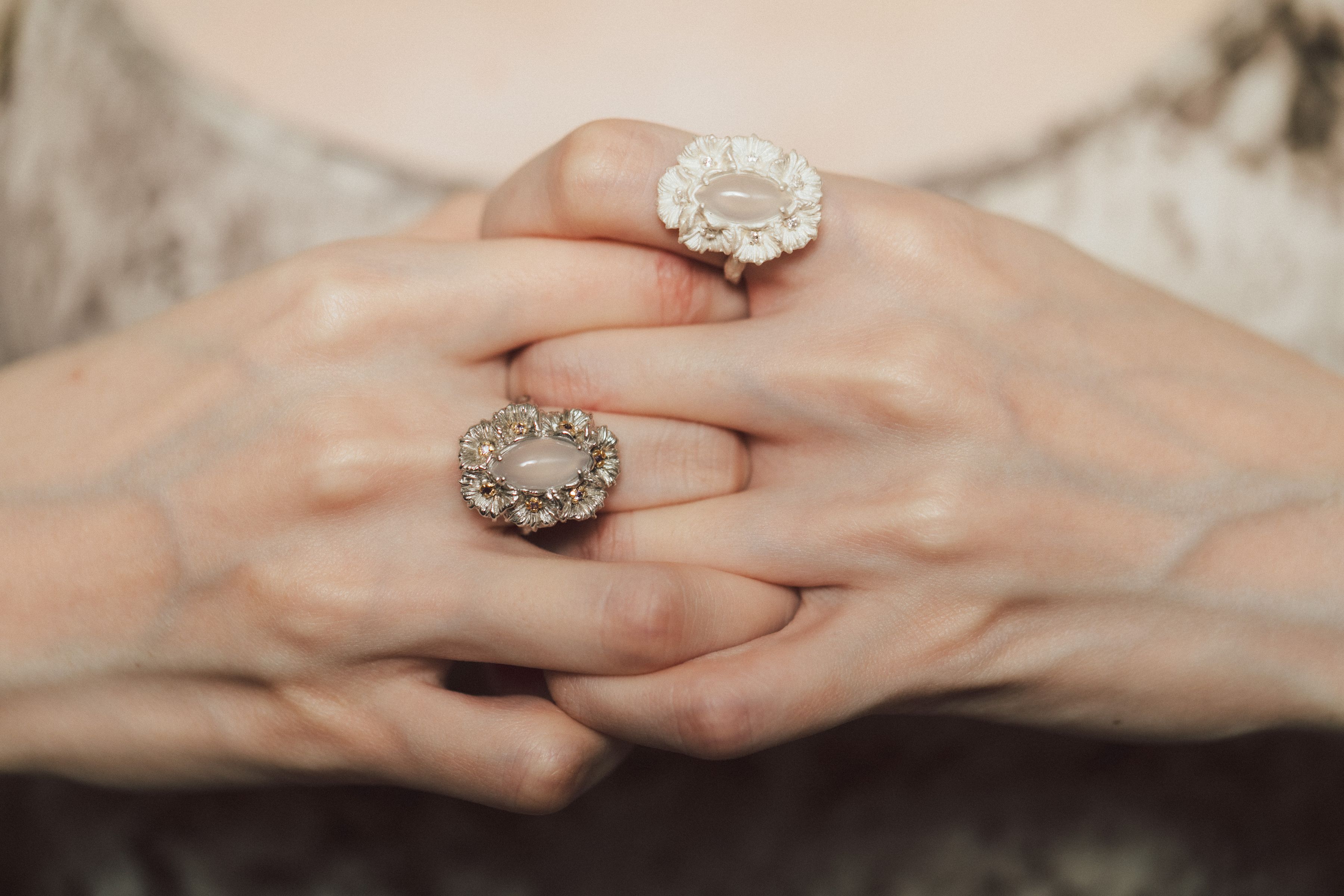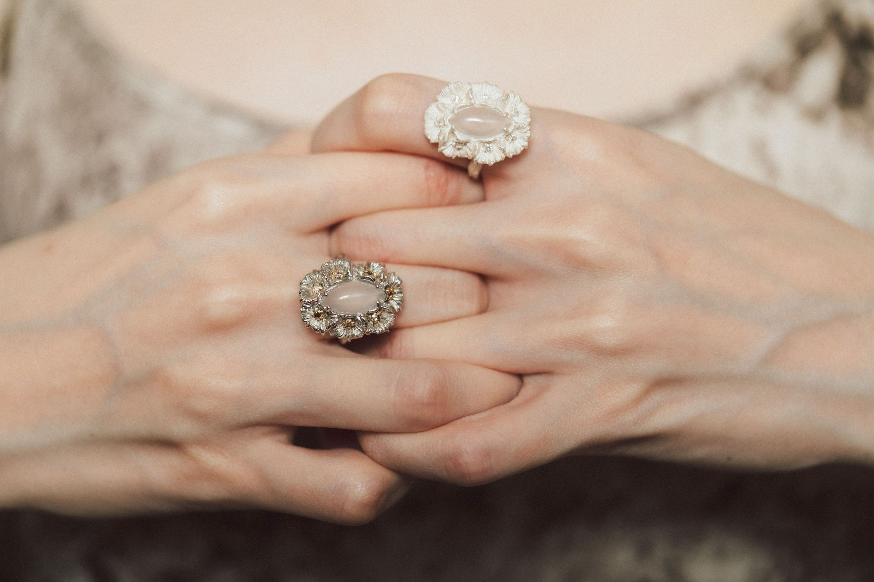 Dare Buyer Store T.Major Horse Eye White Agate Blooming Mandala Flower Open Ring Original Vintage Style