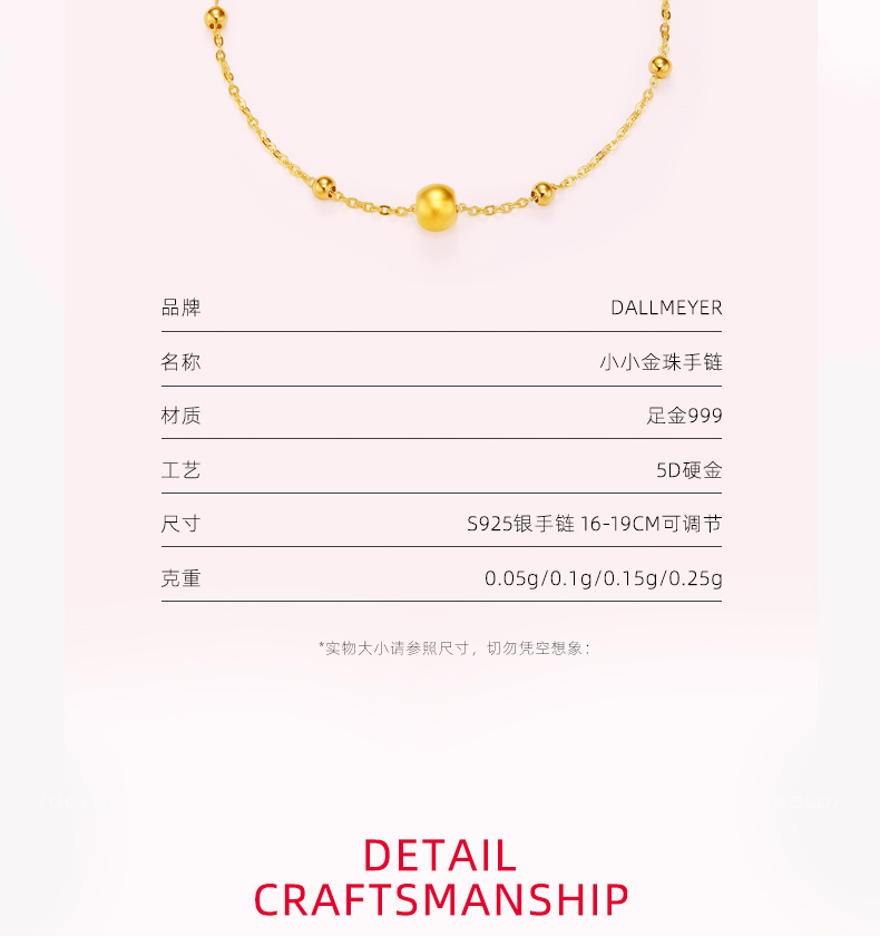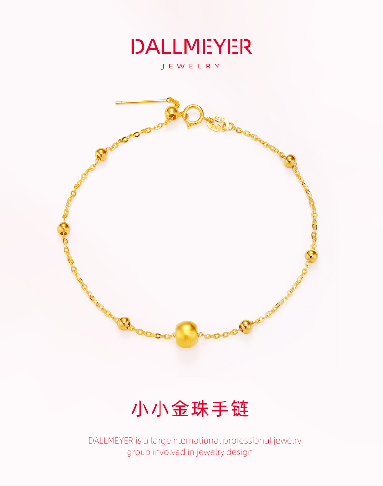 Dallmeyer Small Gold Bead Bracelet Gold Foot Gold 999 Transfer Beads 5D Hard Gold Jewelry Gift for Girlfriend