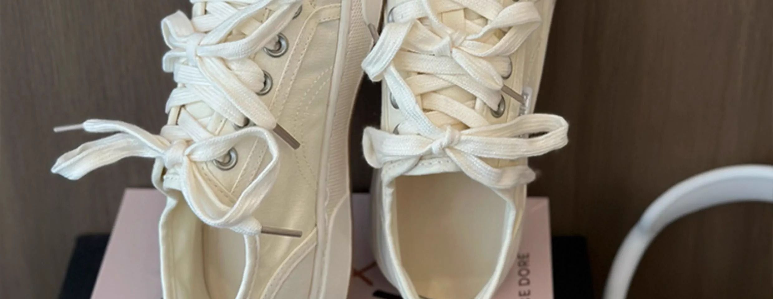 Hong Kong Thick-Soled Large-Toe Thin Canvas Shoes for Women 2025 Spring and Autum Sports and Casual Shoes Double Laces Small White Shoes Sneakers