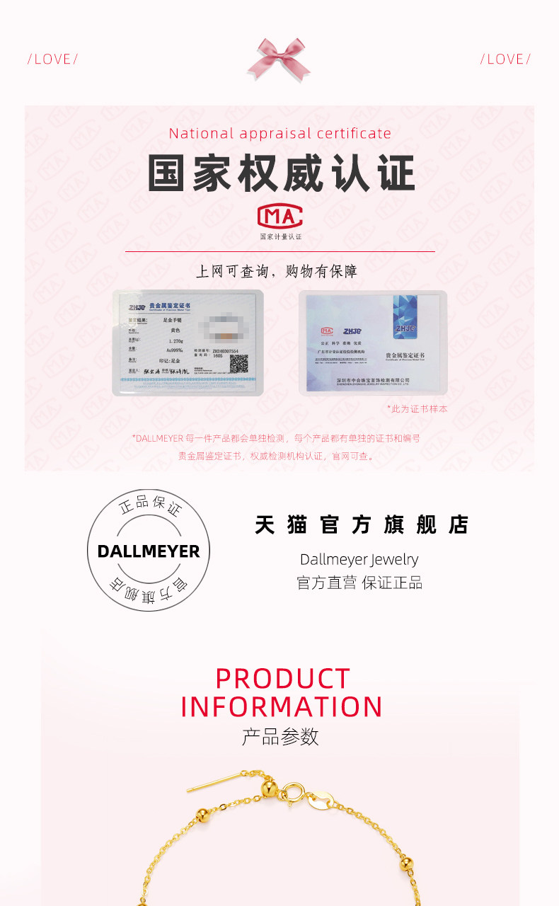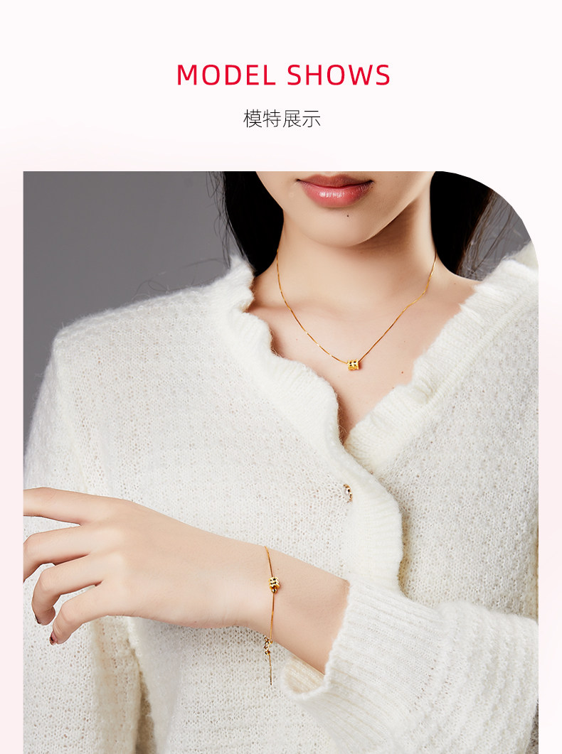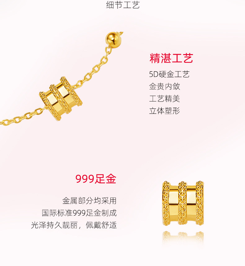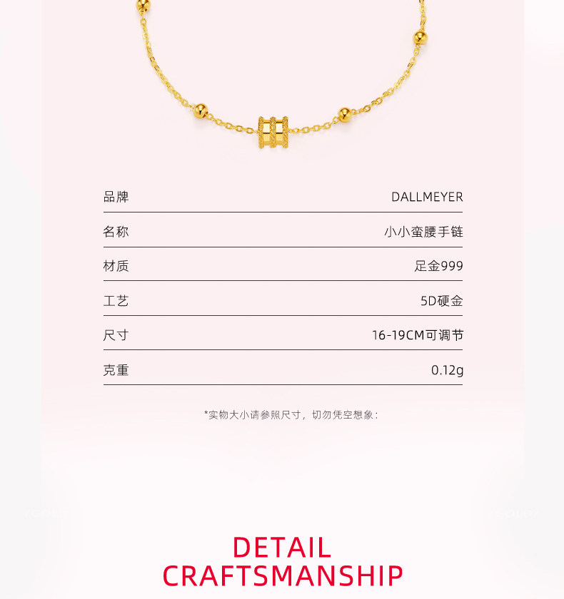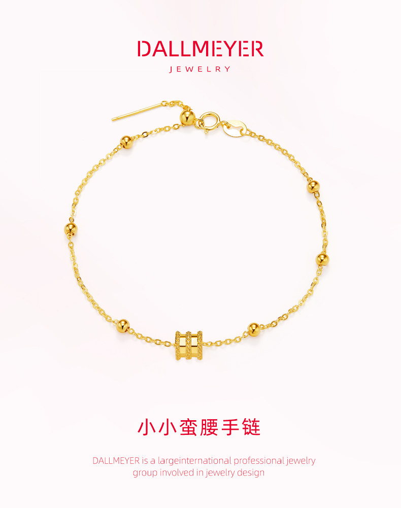 Dallmeyer Gold Waist-Shaped Bracelet for Women, Pure Gold 999, Fortune Beads, 5D Hard Gold Jewelry, Gift for Girlfriend
