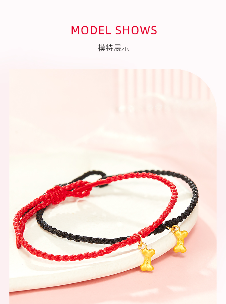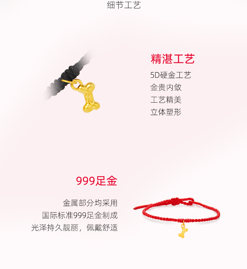 Dallmeyer Gold Small Bone Bracelet Pure Gold 999 Bracelet 5D Hard Gold Jewelry Couple Style Gift for Chinese Valentine's Day