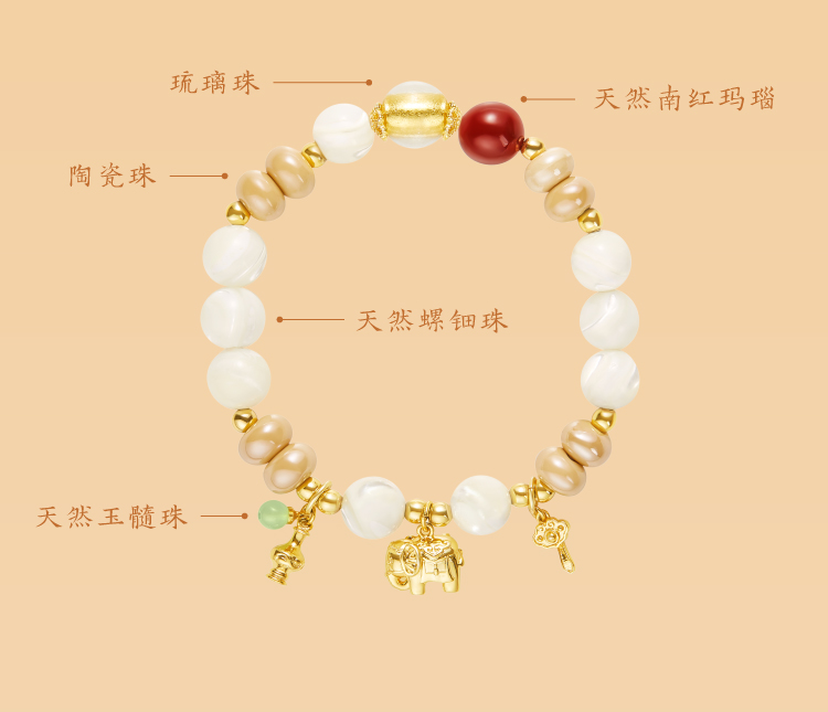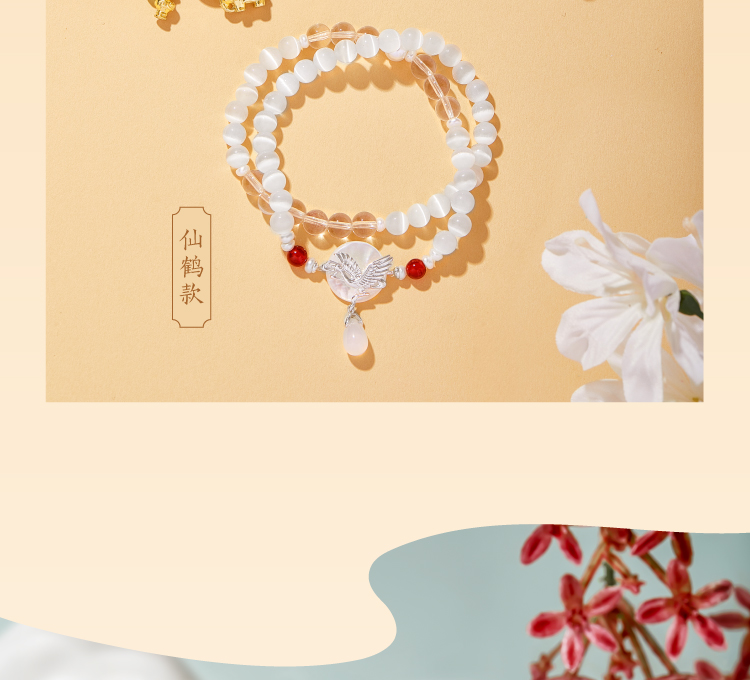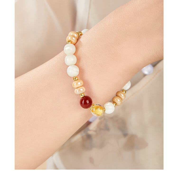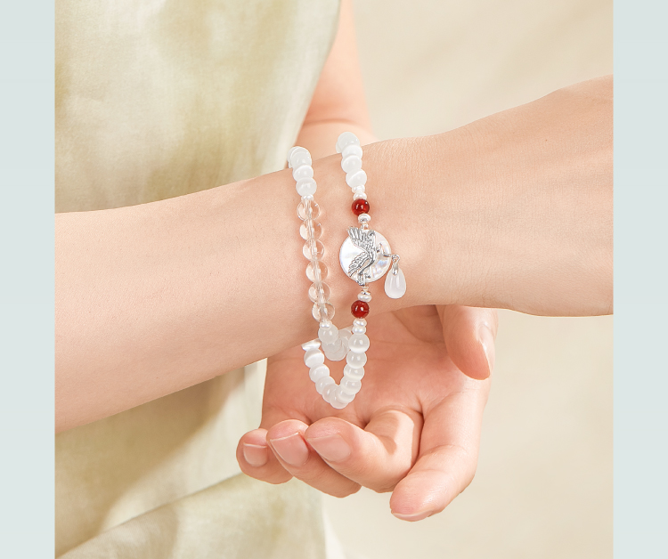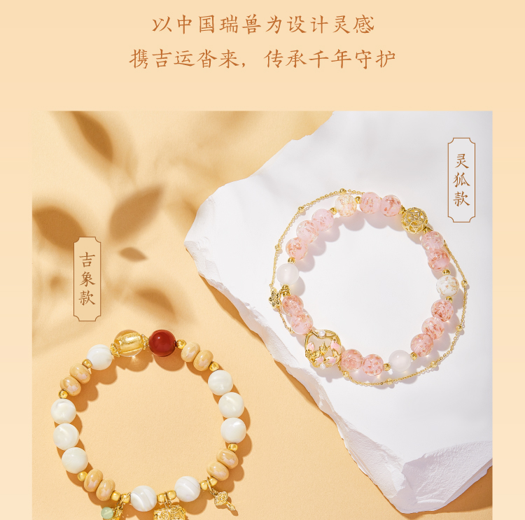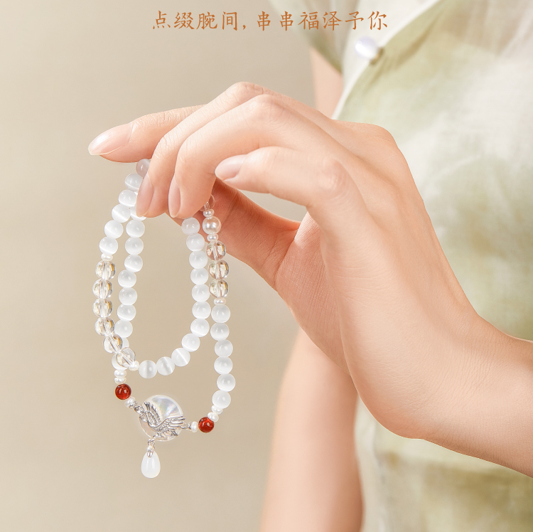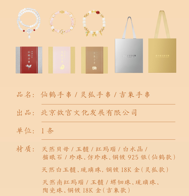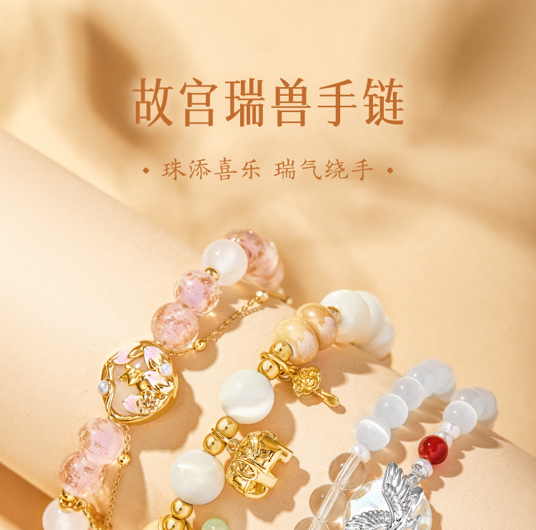 Forbidden City Taobao|Sacred Beast Crane Fox Beaded Bracelet Crystal Red Agate Pearl Glass Beads Bracelet Birthday Gift