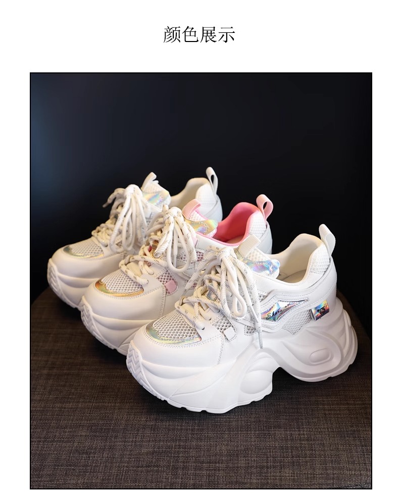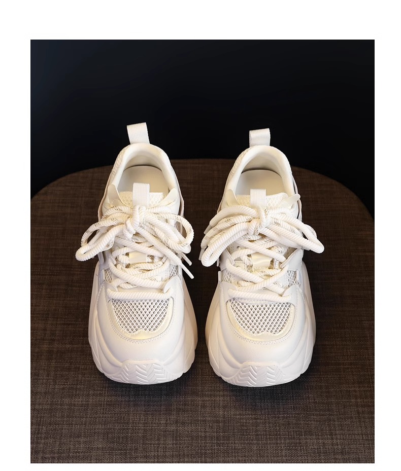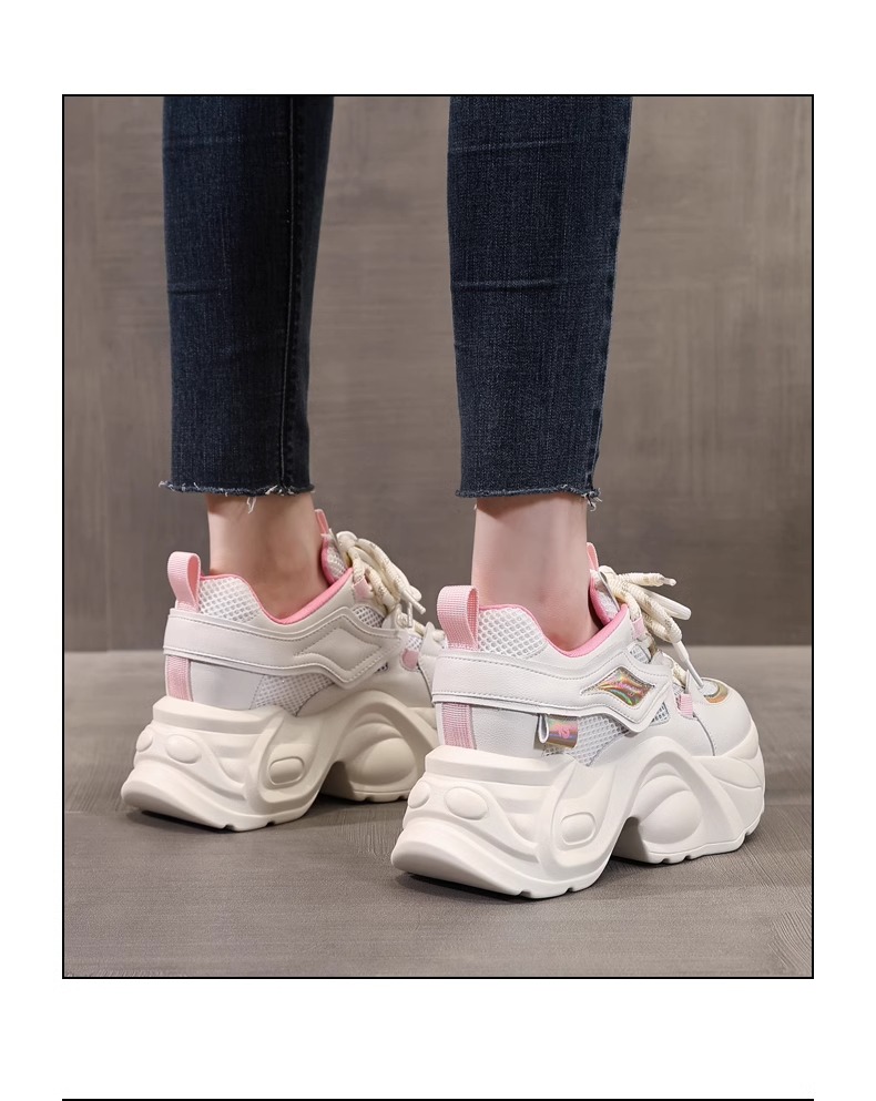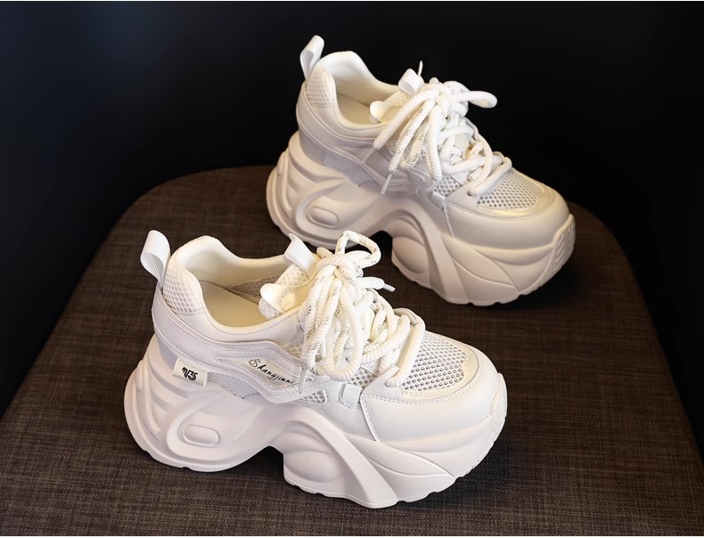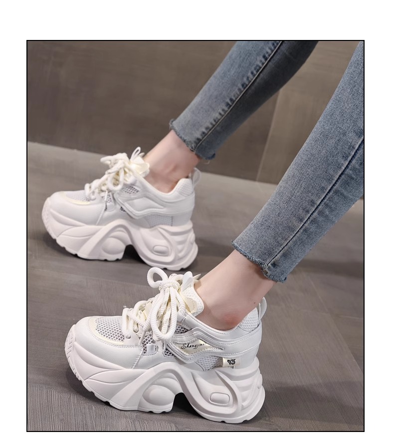 Hong Kong Thick-Soled Height-Increasing Daddy Shoes for Women 2025 Spring Mesh Breathable Small Versatile Lace-Up Thin White Shoes
