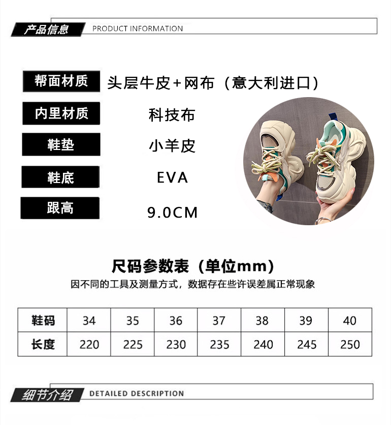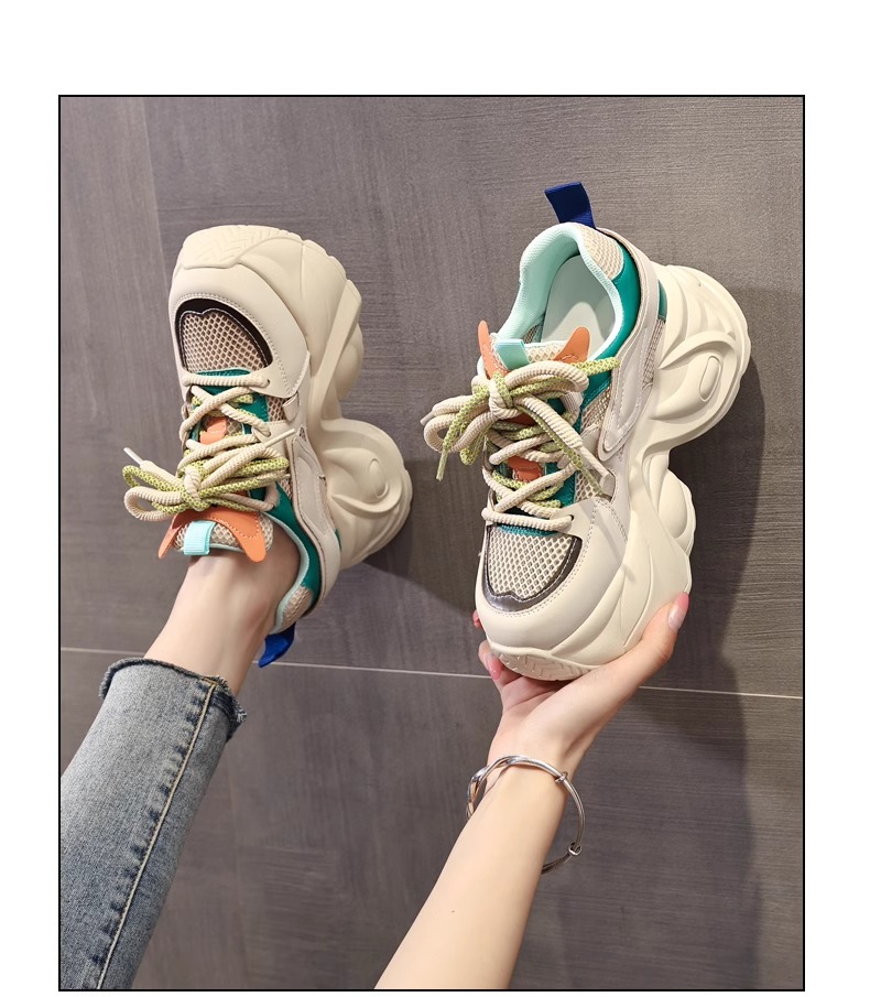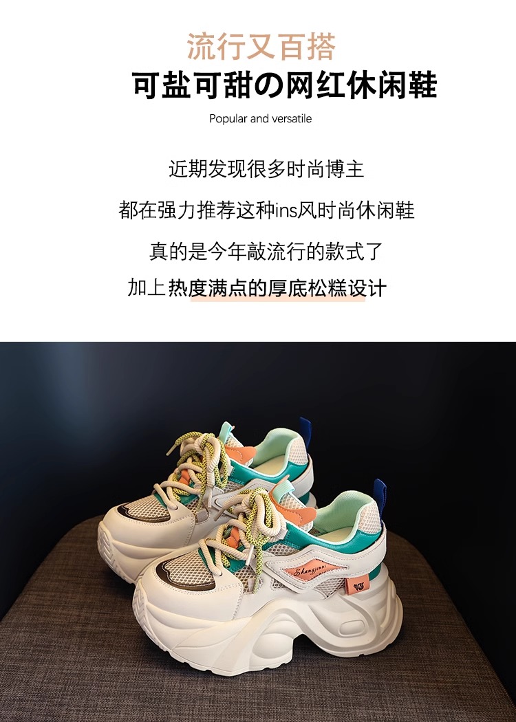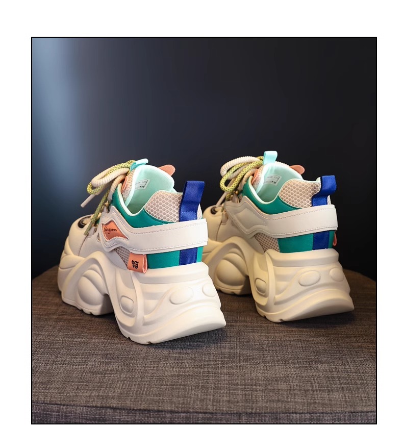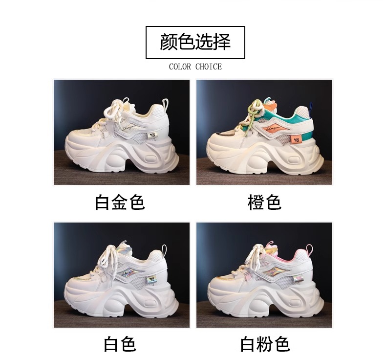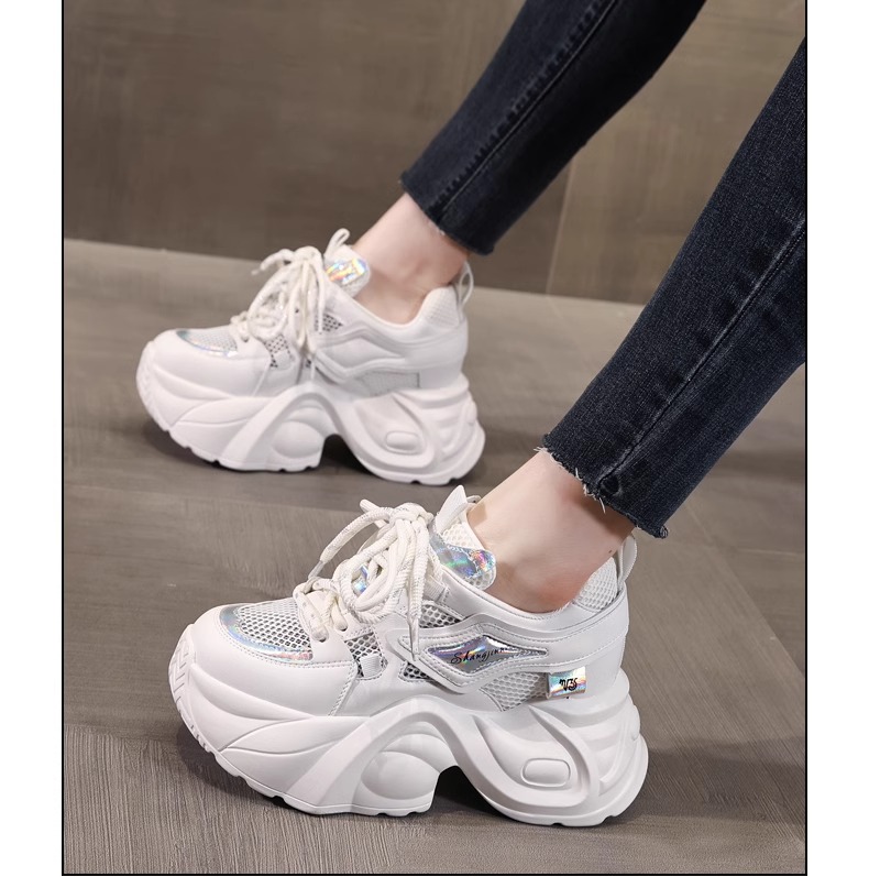 Hong Kong Thick-Soled Height-Increasing Daddy Shoes for Women 2025 Spring Mesh Breathable Small Versatile Lace-Up Thin White Shoes