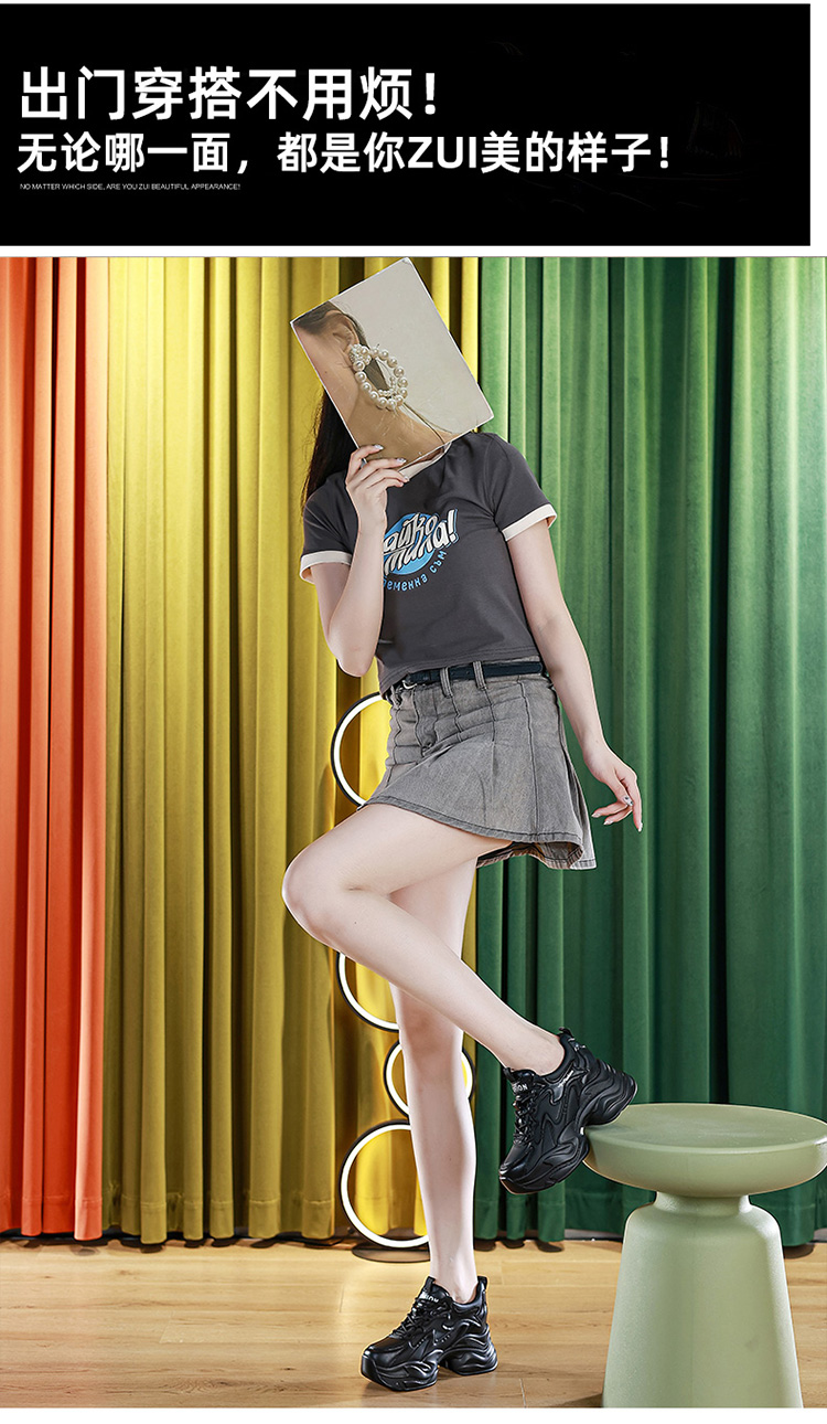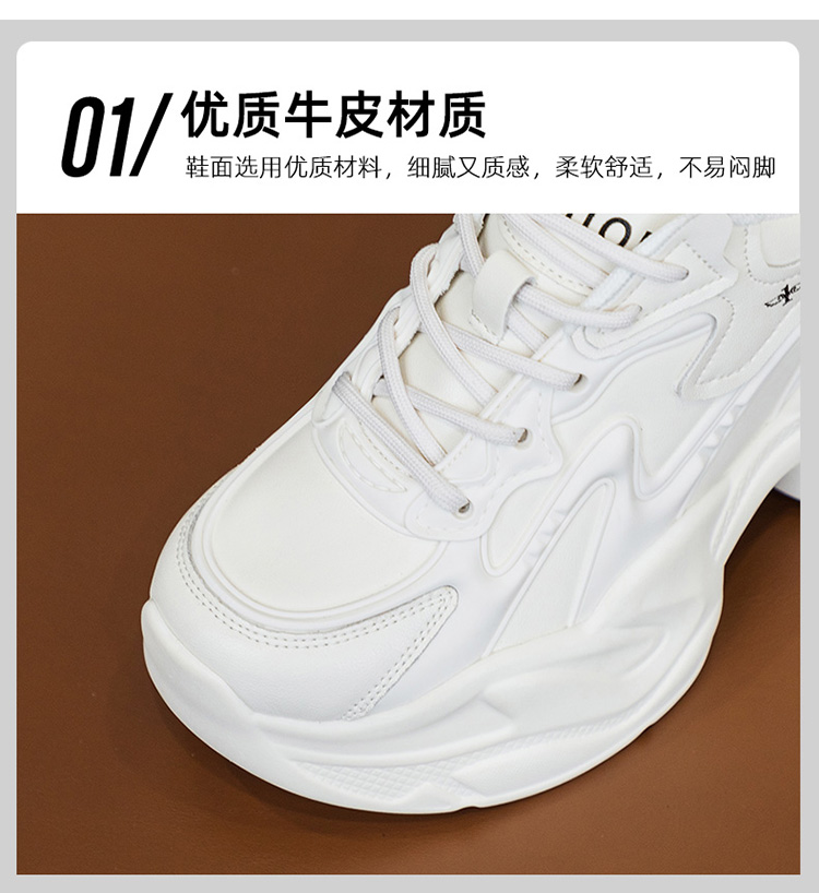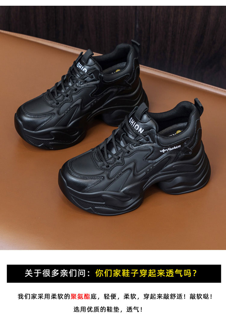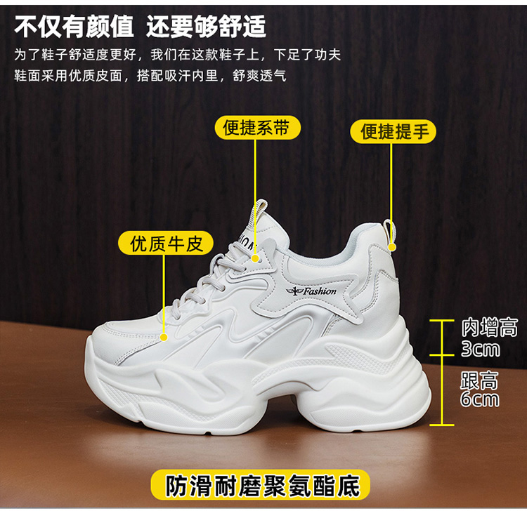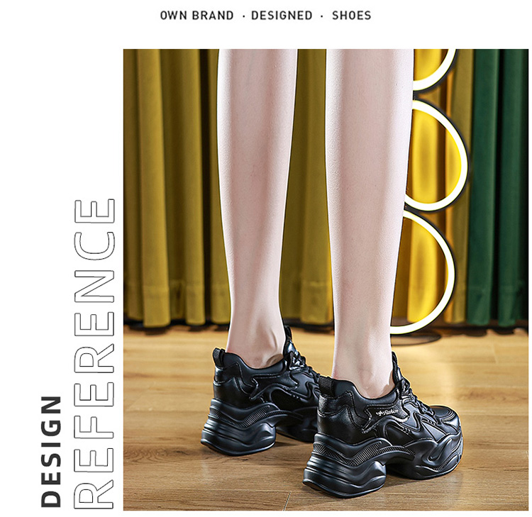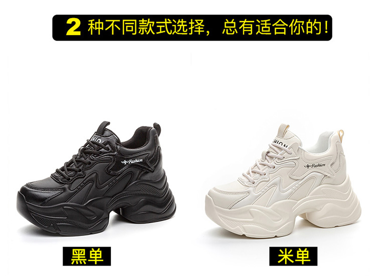 【Jiang Yan's Style】Xirui Genuine Leather Height-Increasing 9cm Plush-Lined Warm Women's Shoes New Thick-Soled Casual Dad Shoes
