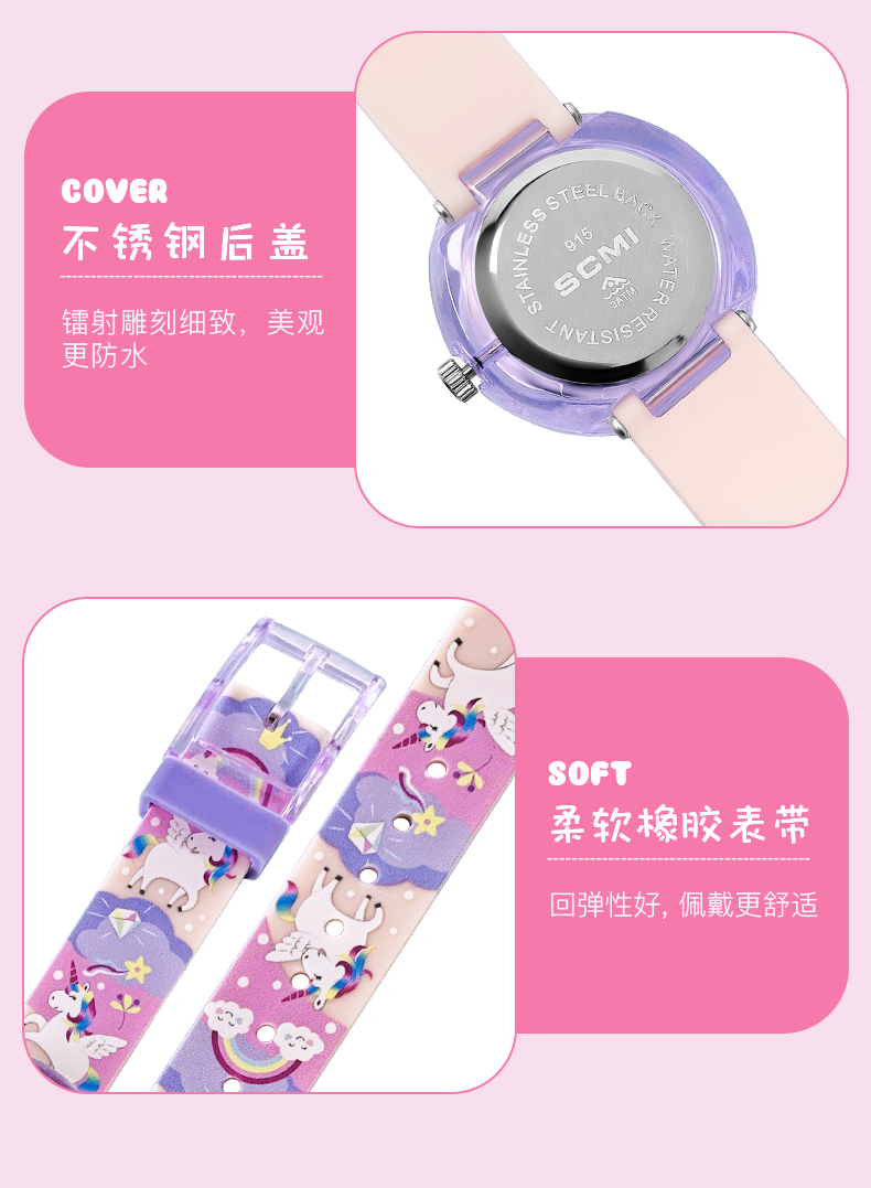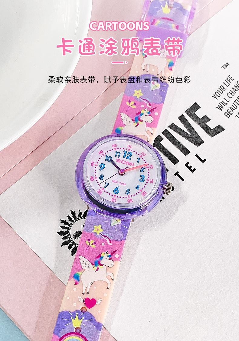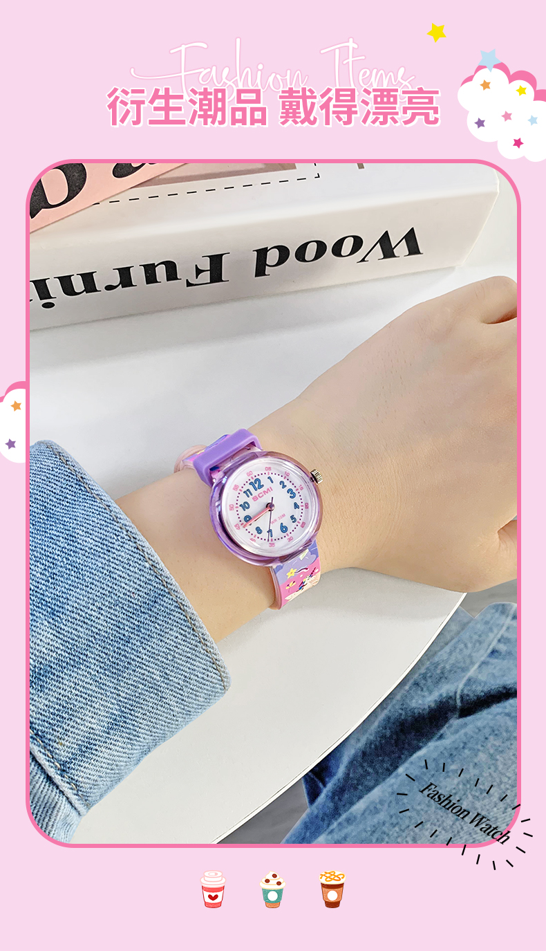 2025 New Children's Watch for Girls, Elementary School Students, Waterproof, Girls Only, Time-Only Display, Purple Quartz Electronic Watch