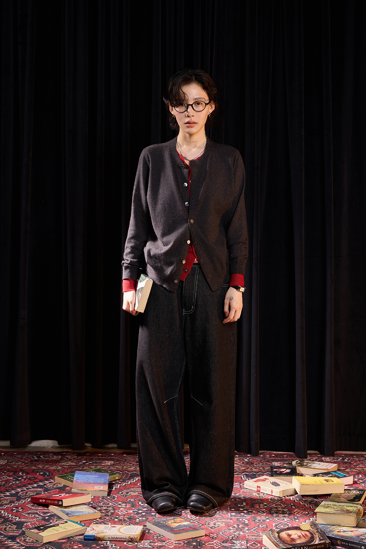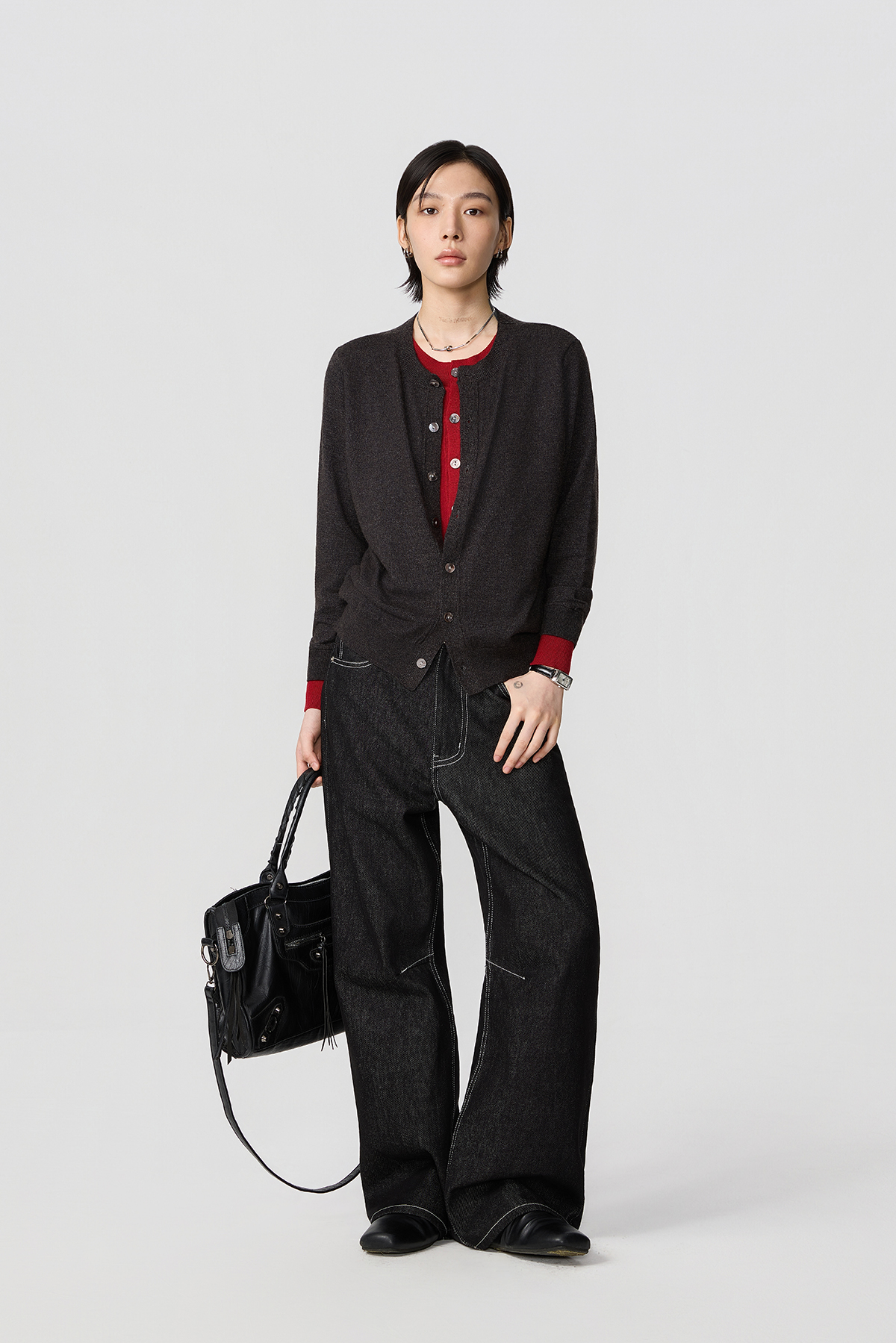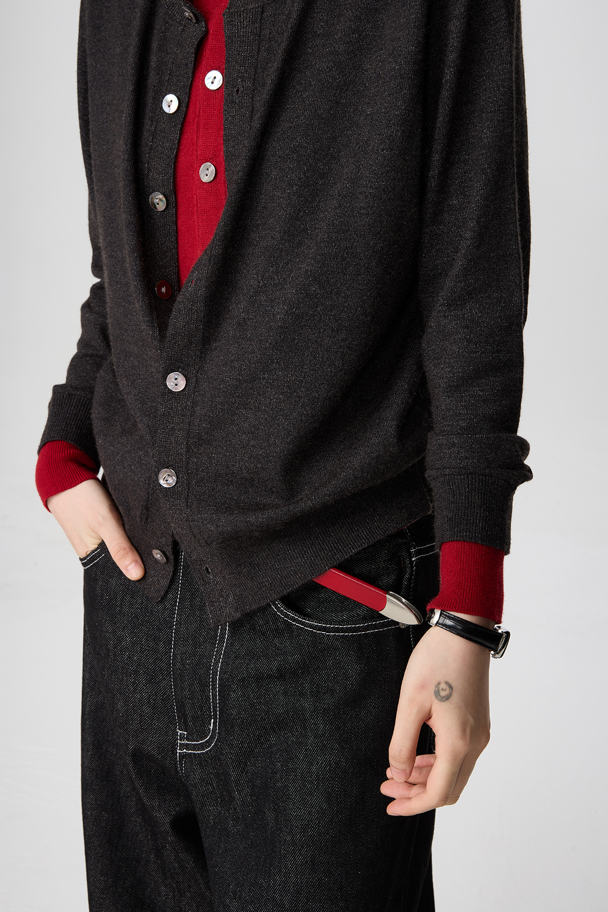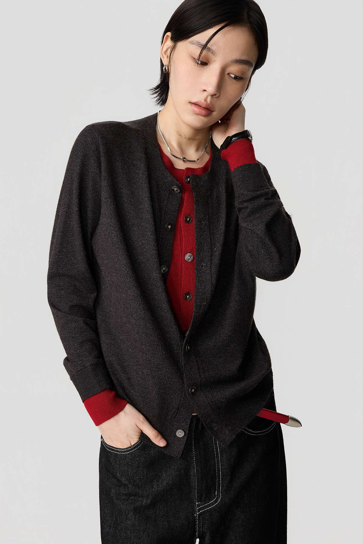 Sameuoo Free-Spirited Culture Fake Two-Piece Gray Sweater Cardigan for Women, Unisex Knitwear Jacket for Autumn and Winter