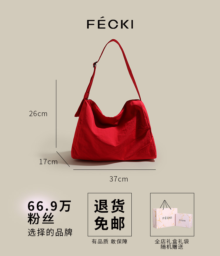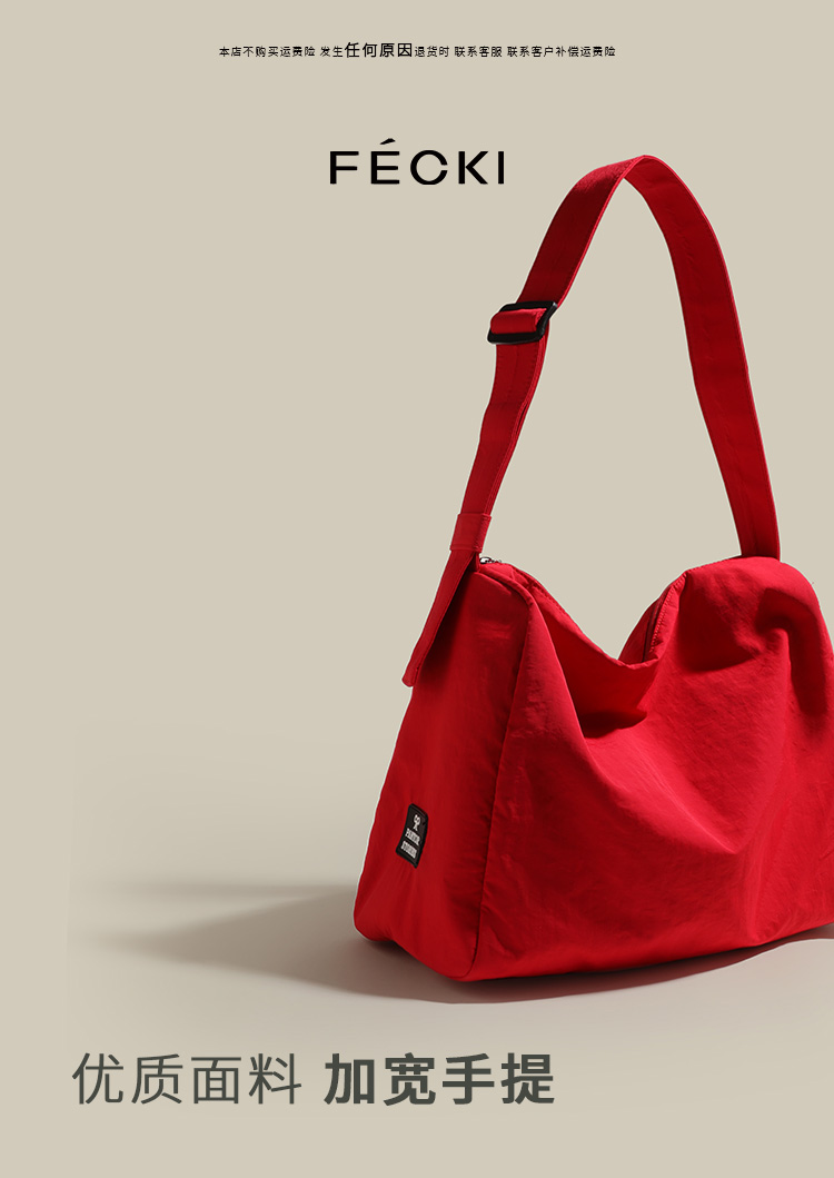 Fecki Korean Style ins Red Canvas Bag for Women, Large Capacity Student Crossbody Bag, Versatile Commuter Tote Bag