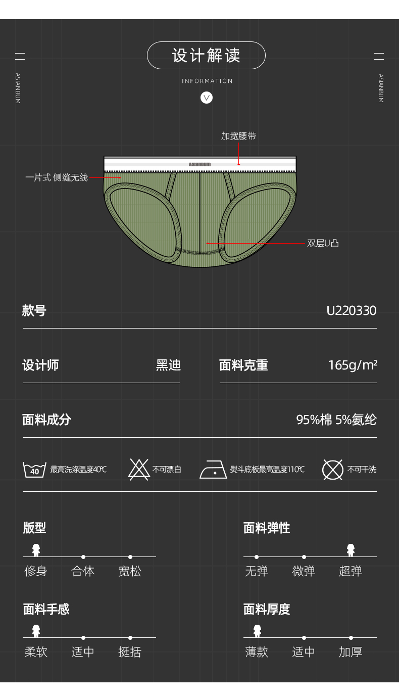 Casual Style X Textured Fabric 50-Count Combed Ribbed Cotton Low-Waist Men's Briefs Double-Layer Pouch