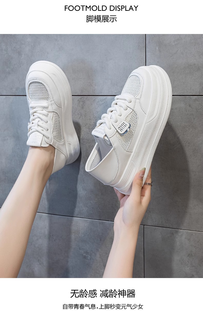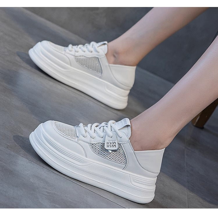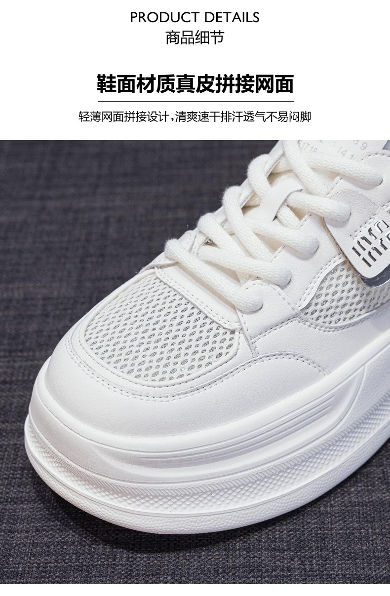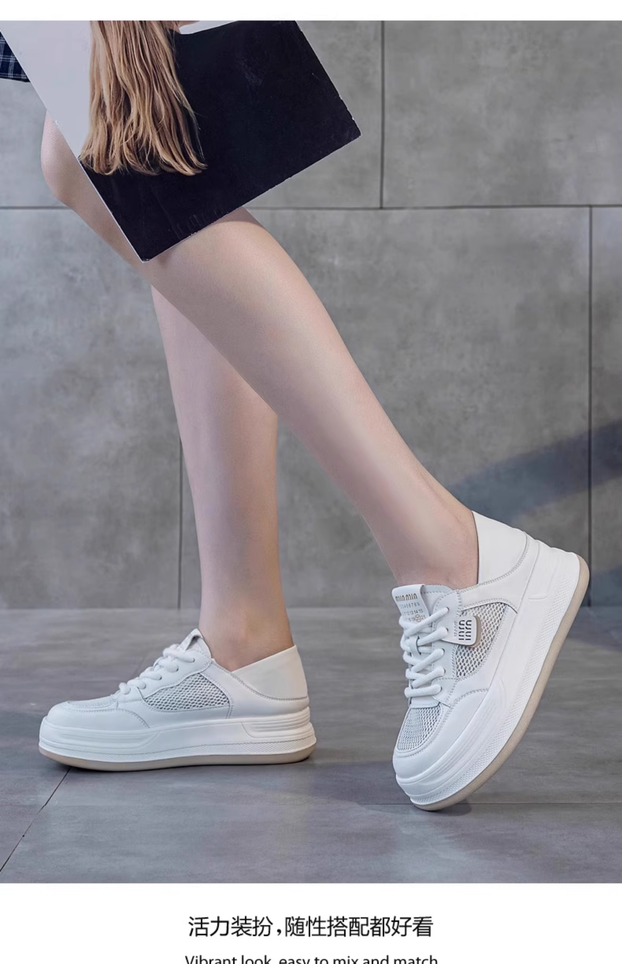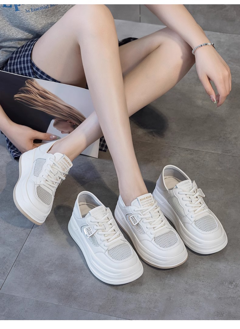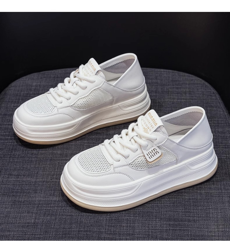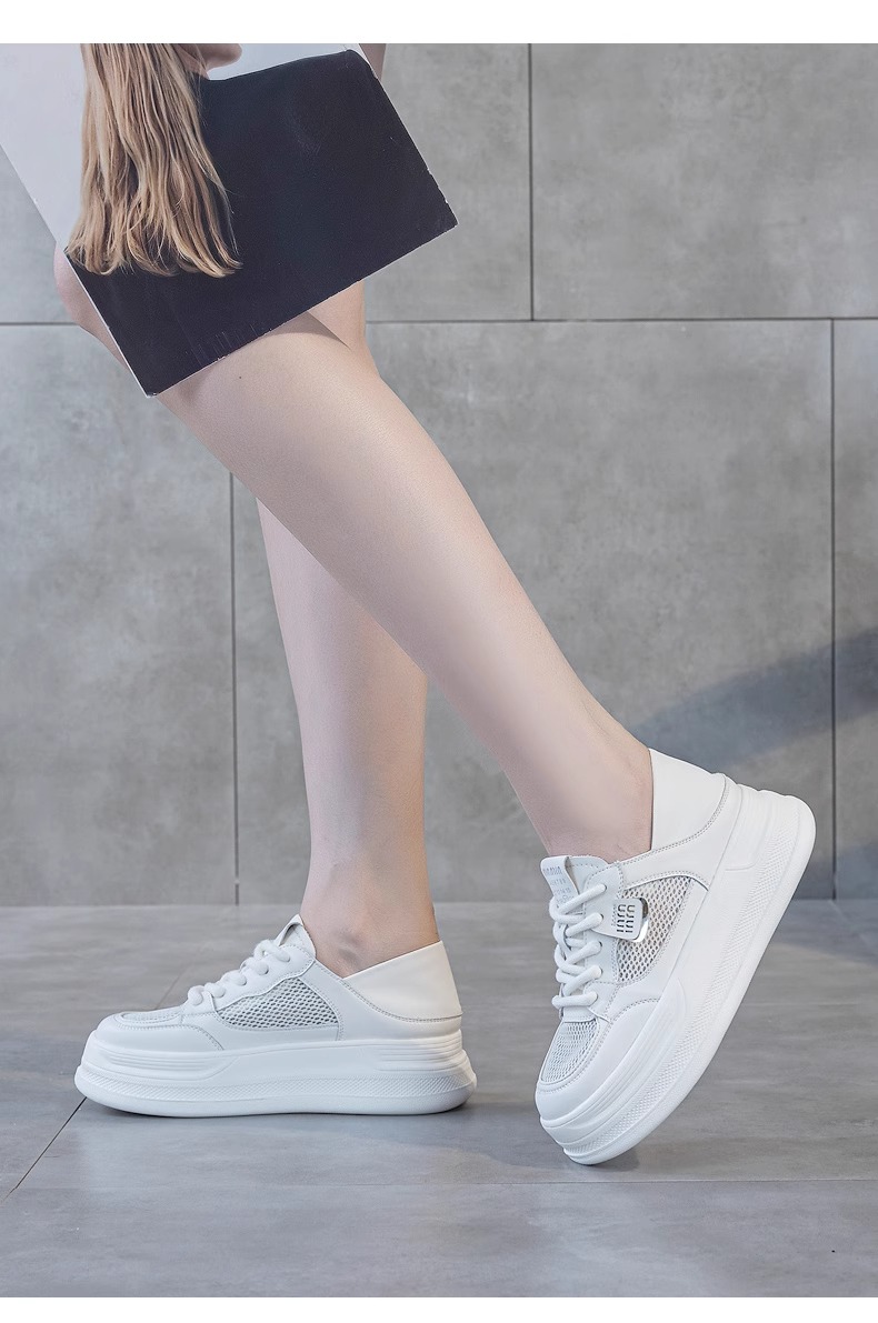 Hong Kong Niche Design Thick-Soled Height-Increasing Genuine Leather White Sneakers for Women 2025 Summer New Casual Sneakers with Breathable Mesh