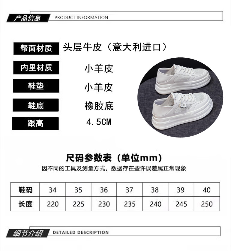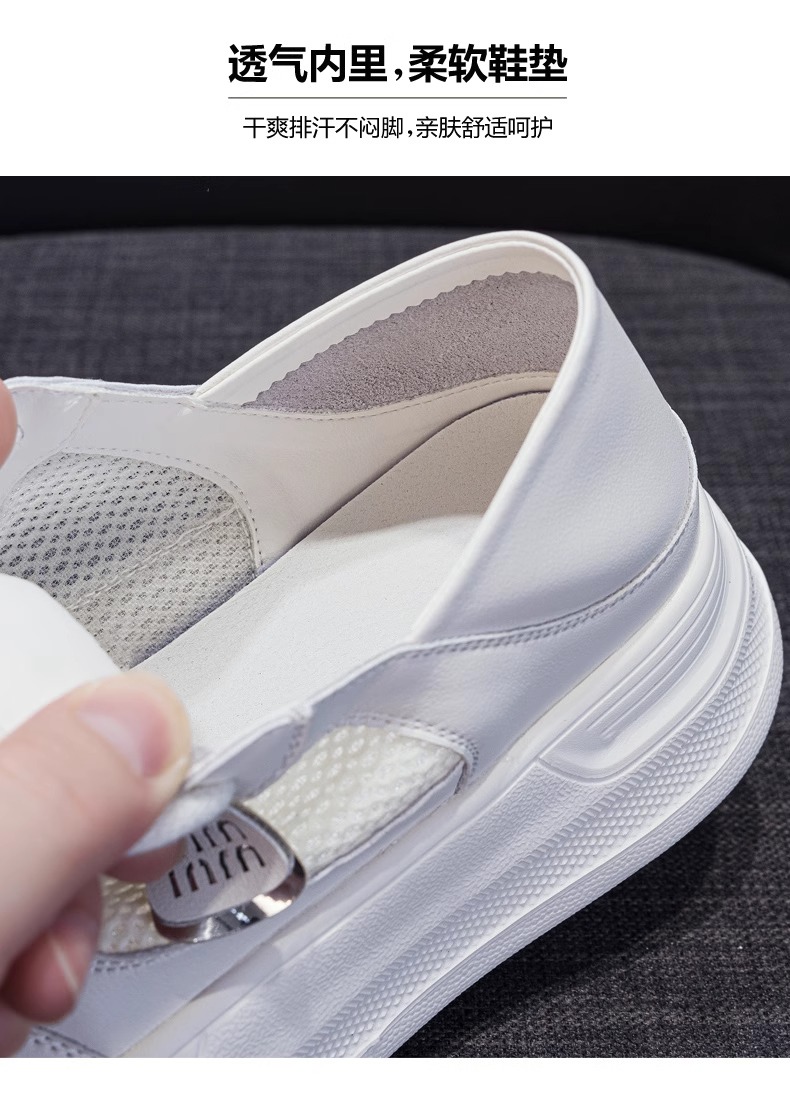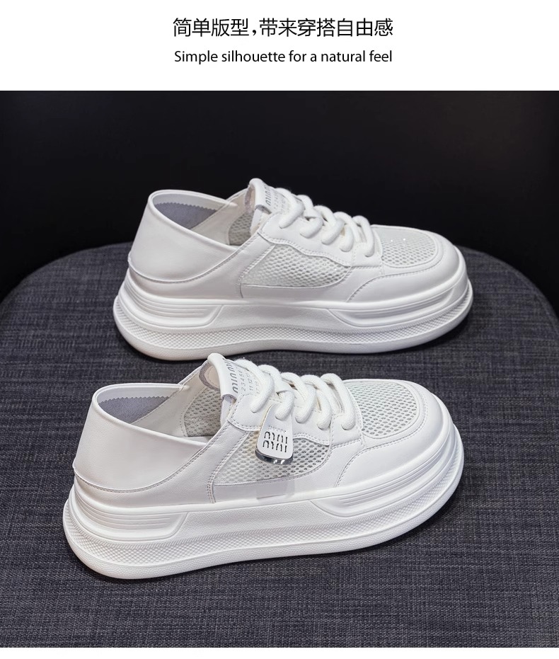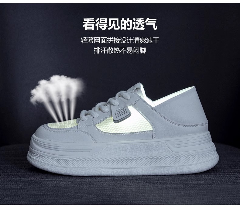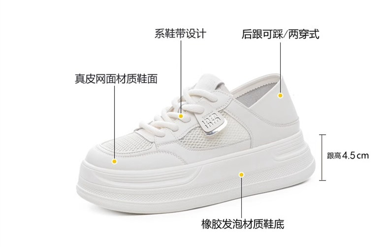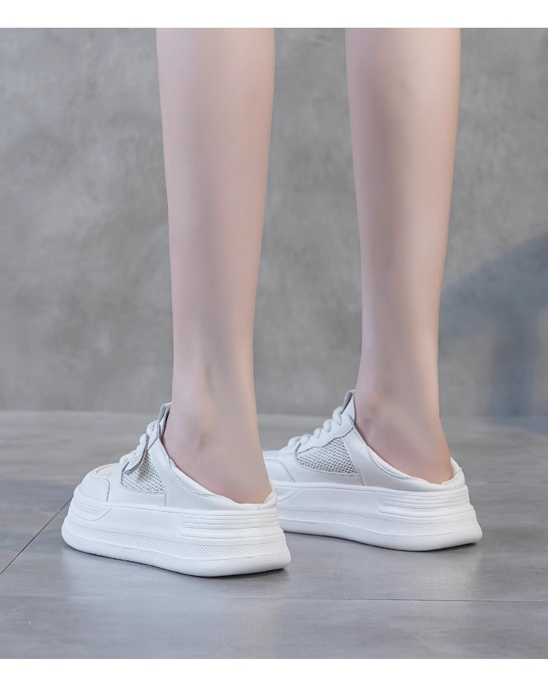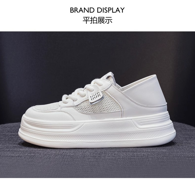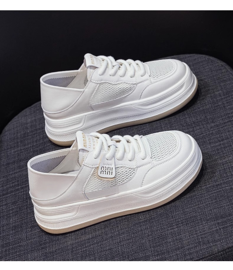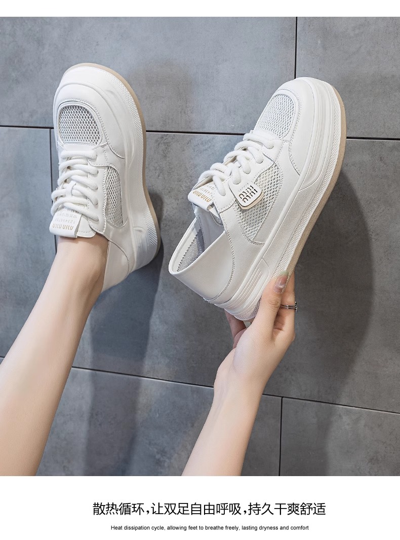 Hong Kong Niche Design Thick-Soled Height-Increasing Genuine Leather White Sneakers for Women 2025 Summer New Casual Sneakers with Breathable Mesh